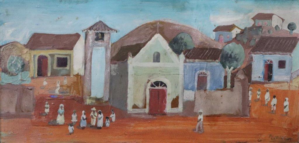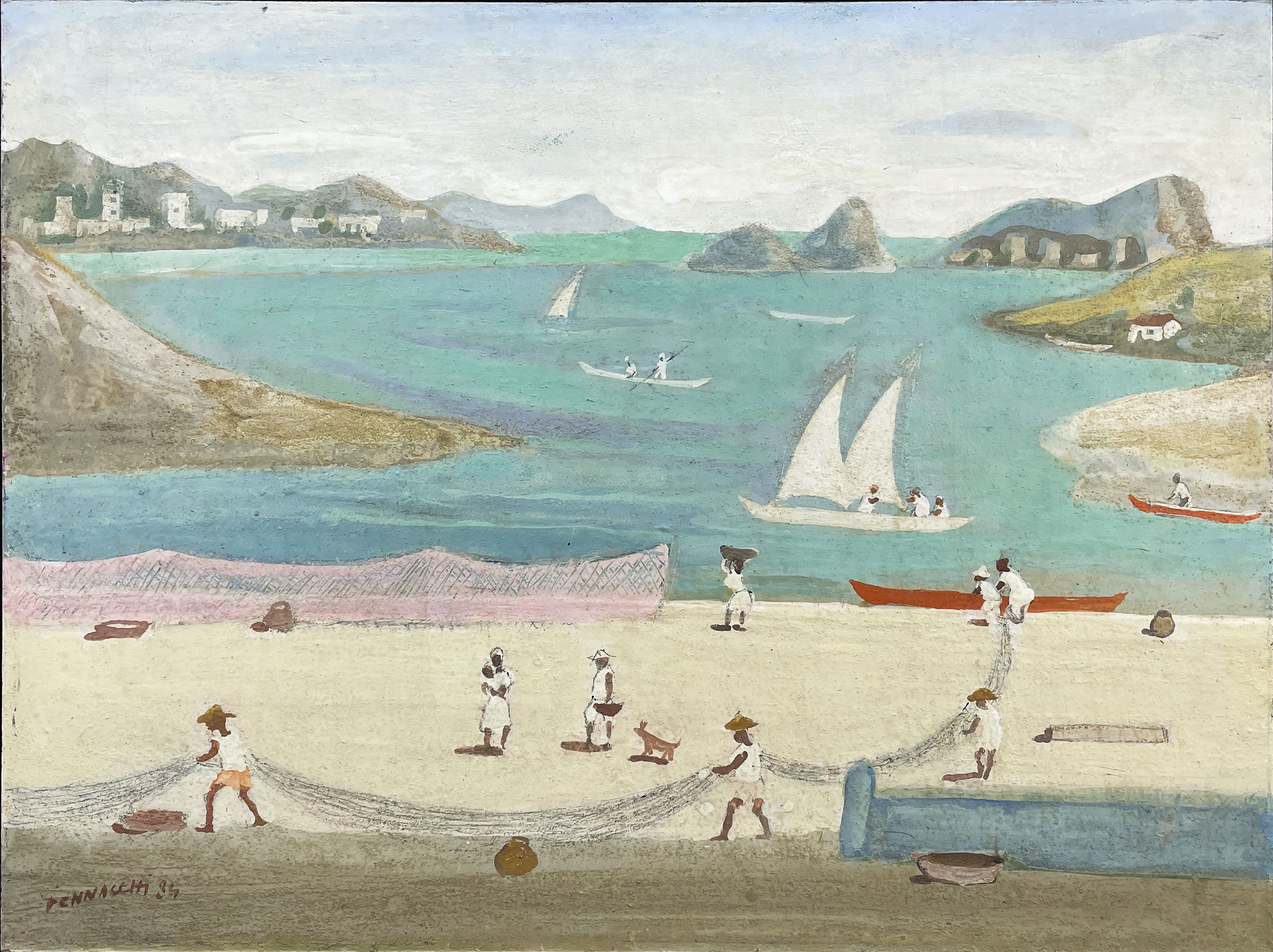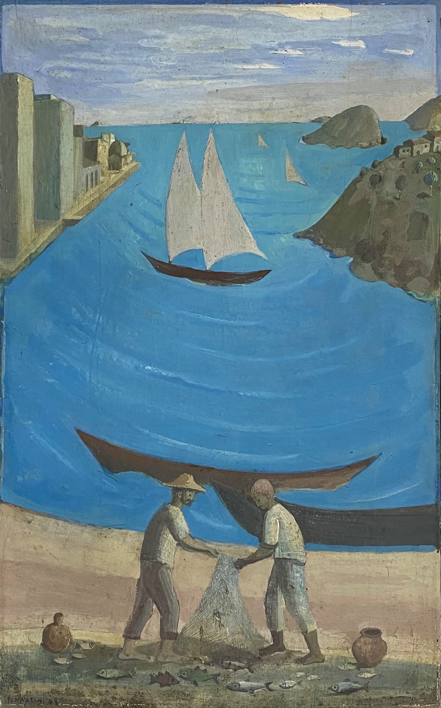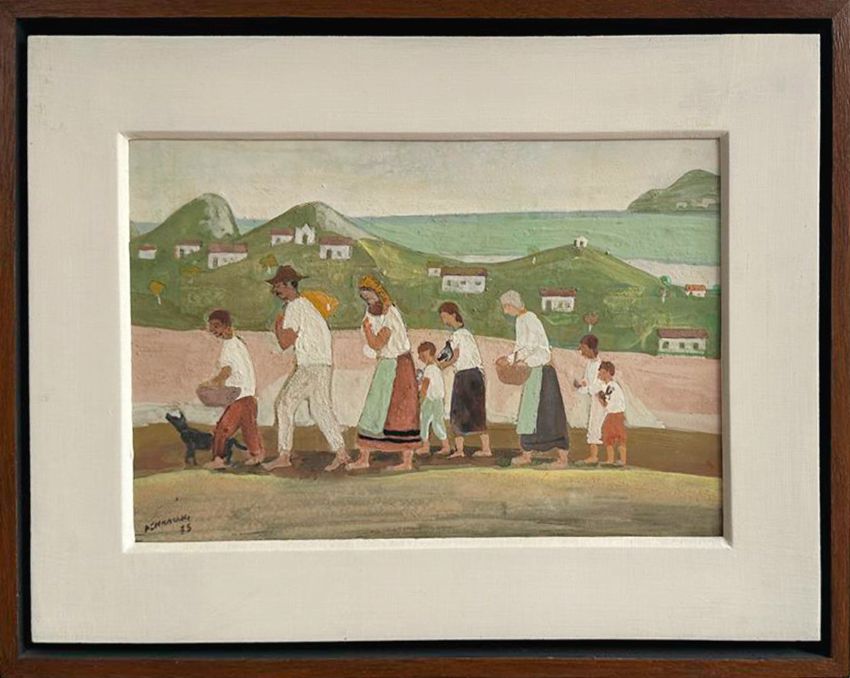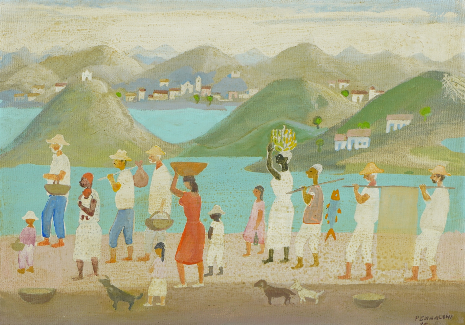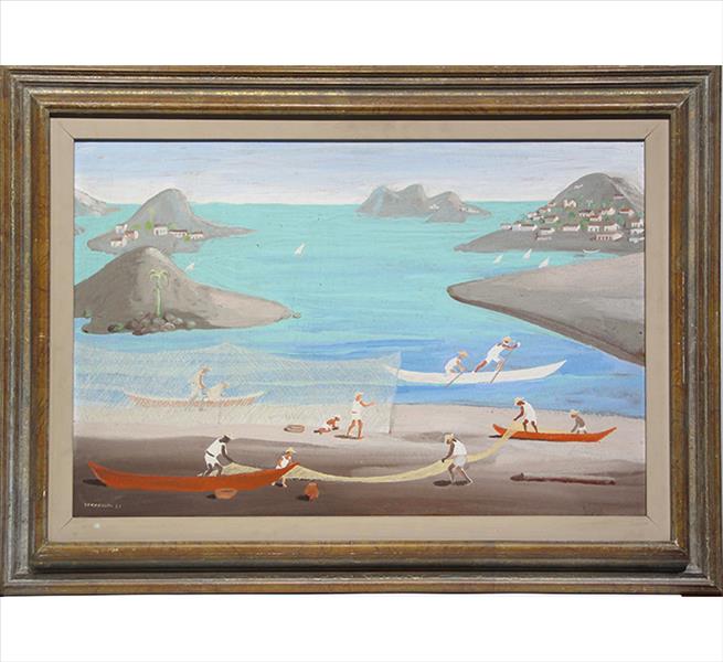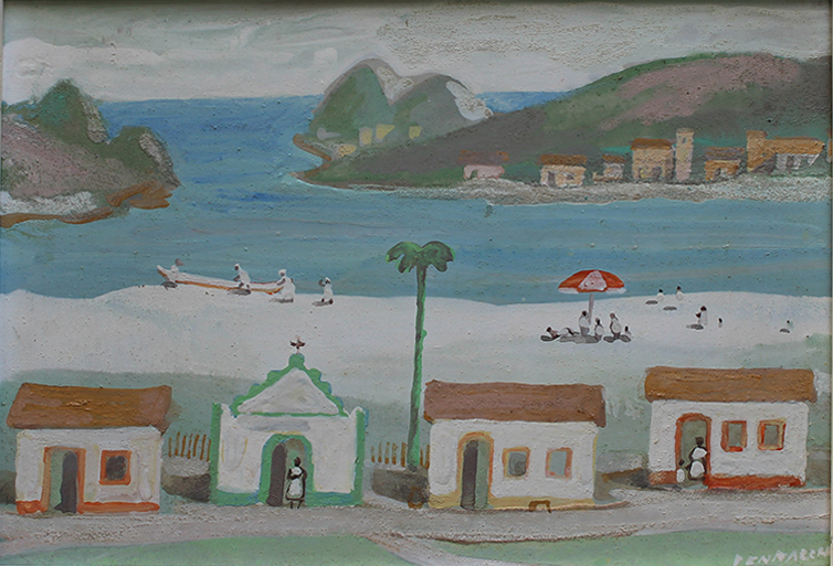 Fulvio Pennacchi - Vila de pescadores. Óleo sobre eucatex, 50x70 cm, 1980, A.C.I.E. e V. Com moldura