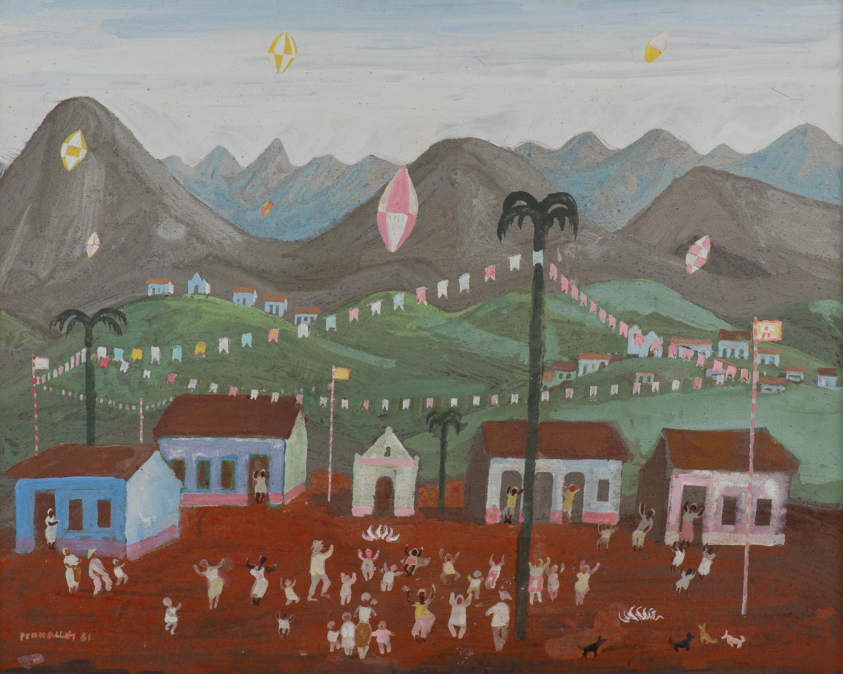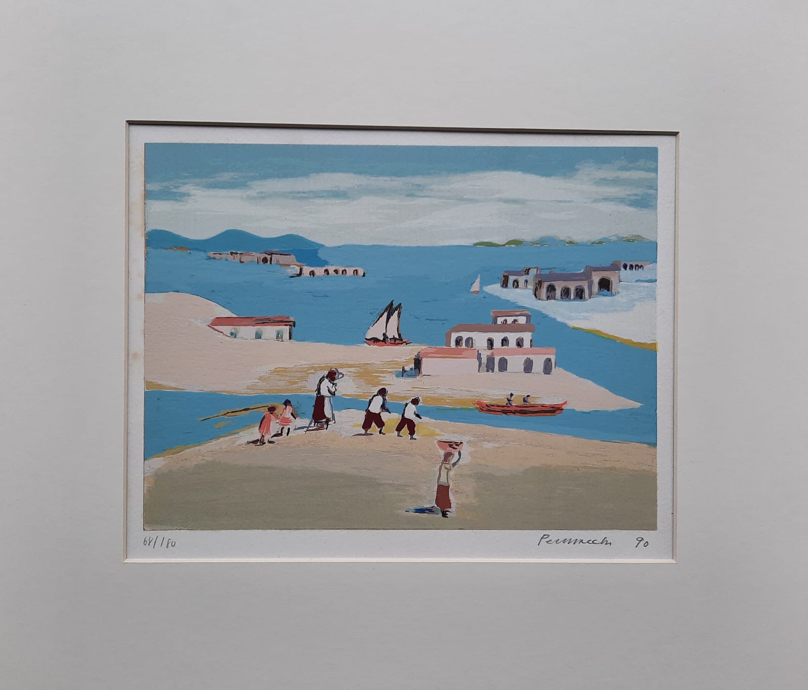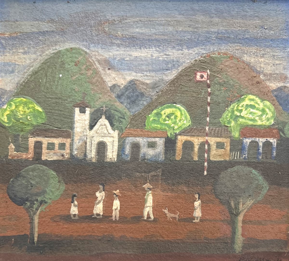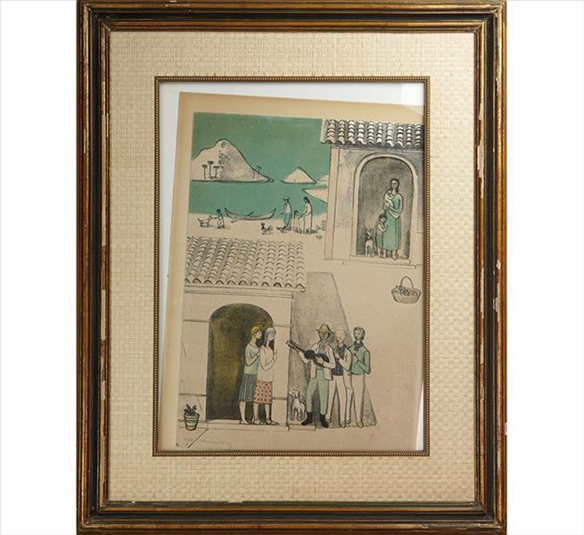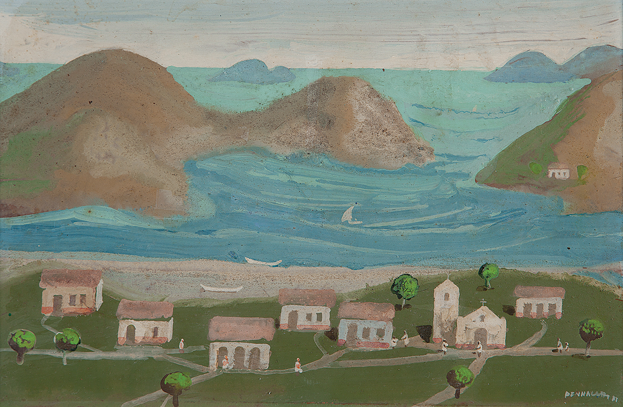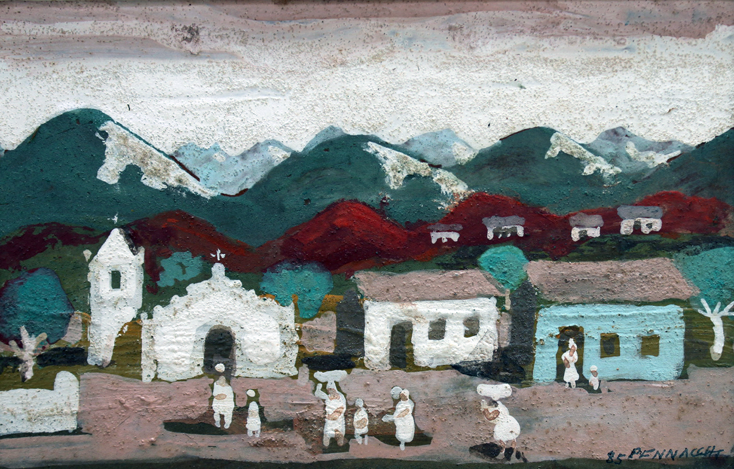 Fulvio Pennacchi - Vila de pescadores. Óleo sobre eucatex, 50x70 cm, 1980, A.C.I.E. e V. Com moldura