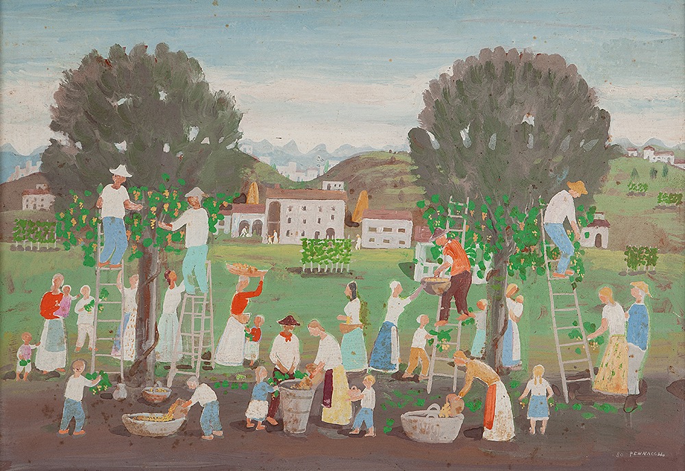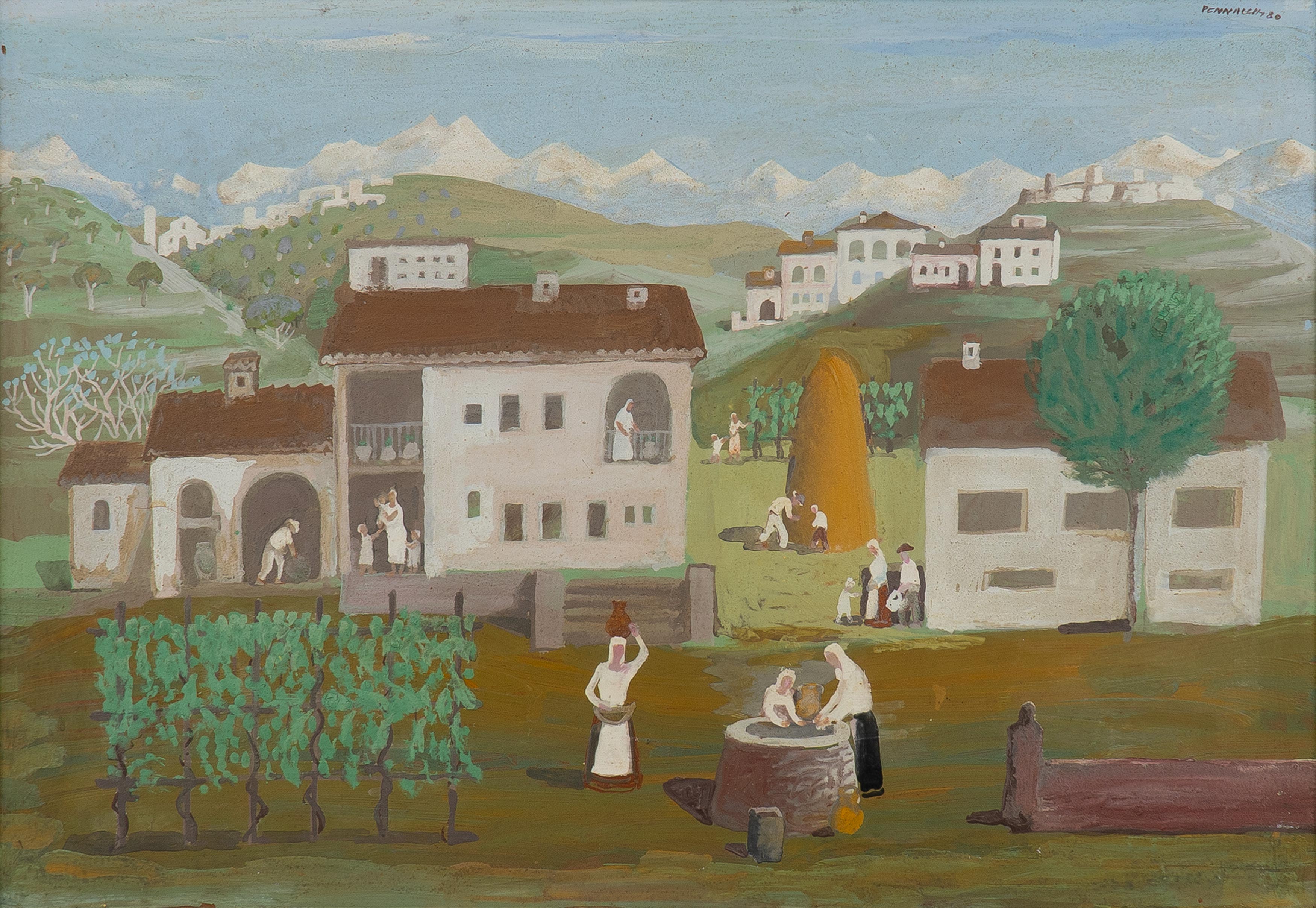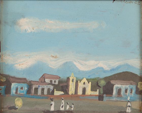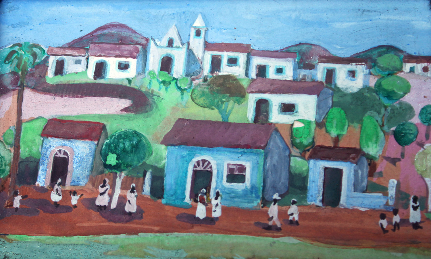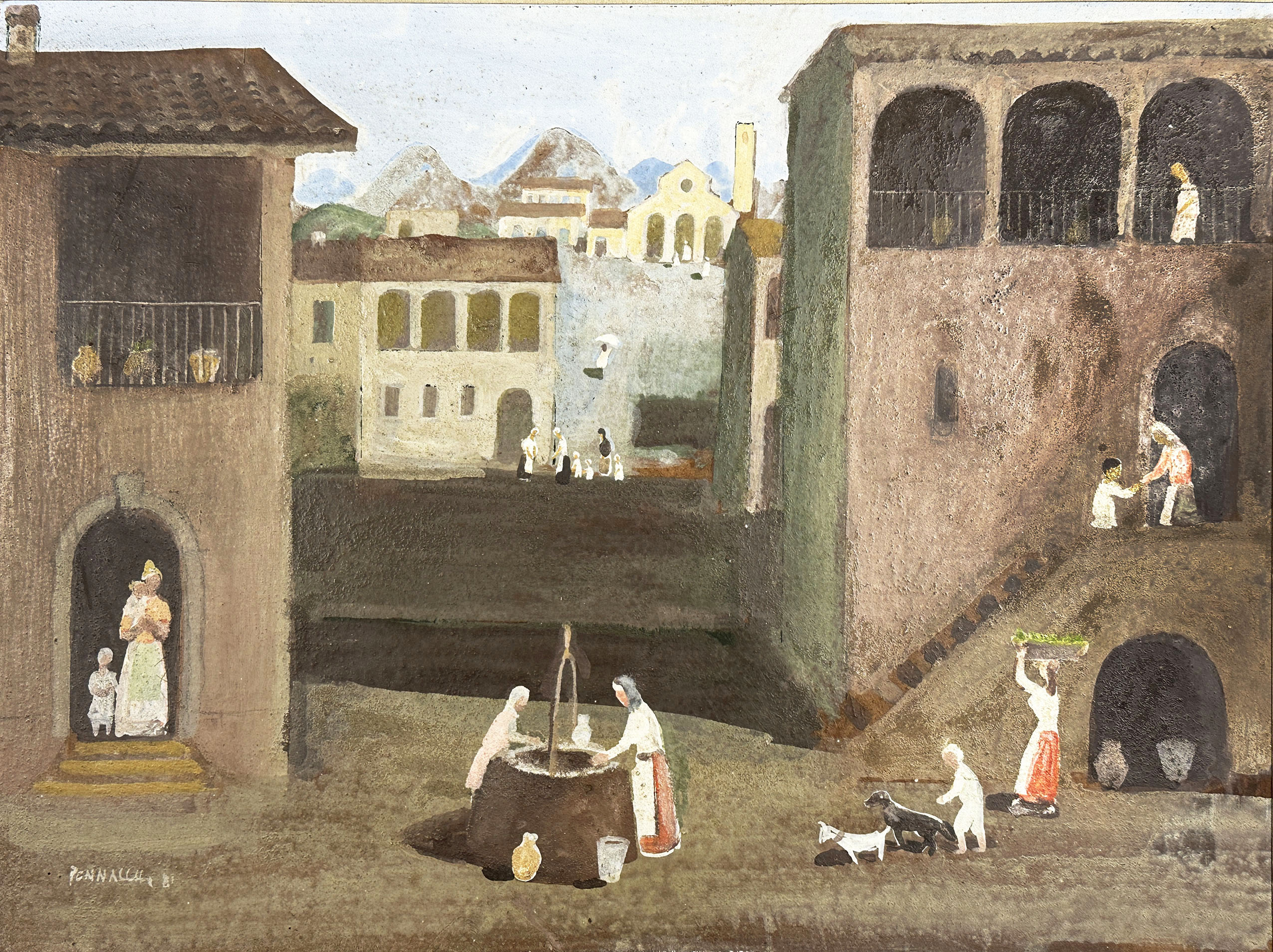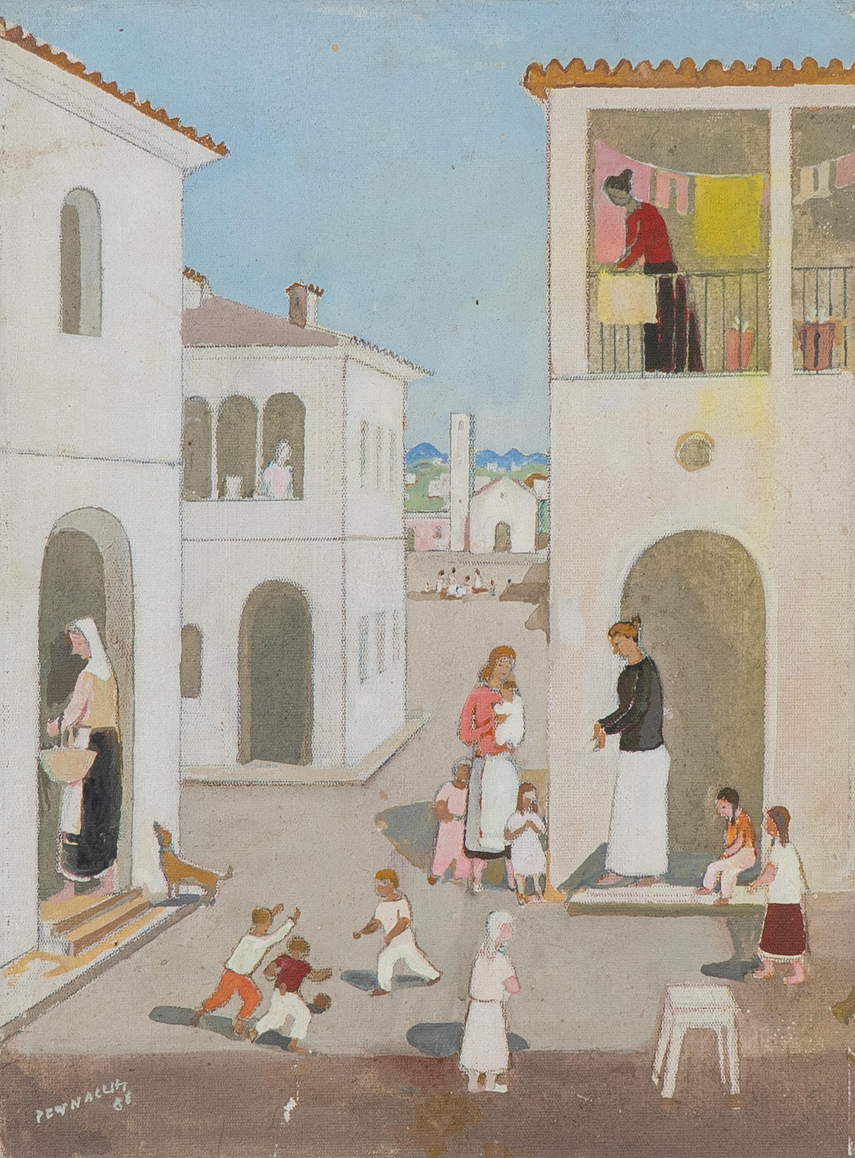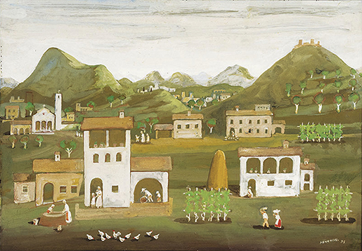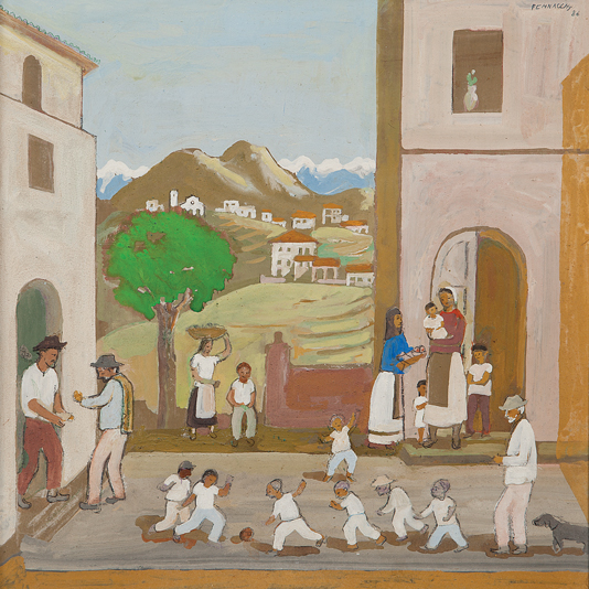 Fulvio Pennacchi - Vila de pescadores. Óleo sobre eucatex, 50x70 cm, 1980, A.C.I.E. e V. Com moldura