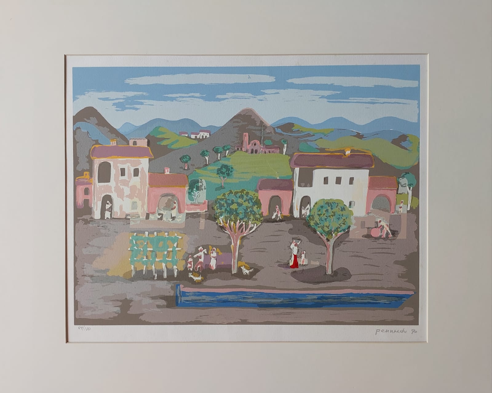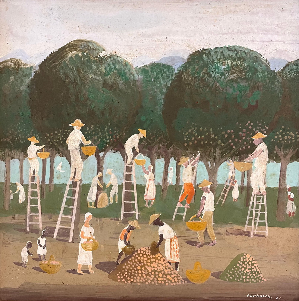 Fúlvio Pennacchi - Fazenda Toscana, 1980 - Acrílica sobre placa, assinado e datado superior direito. - 45 x 65 cm.