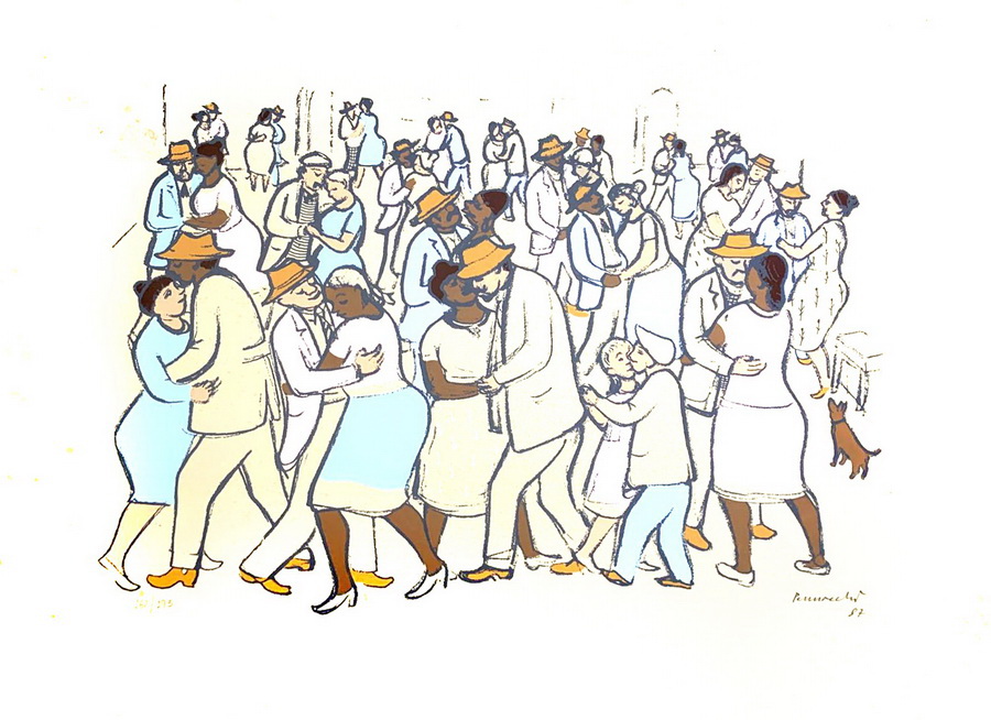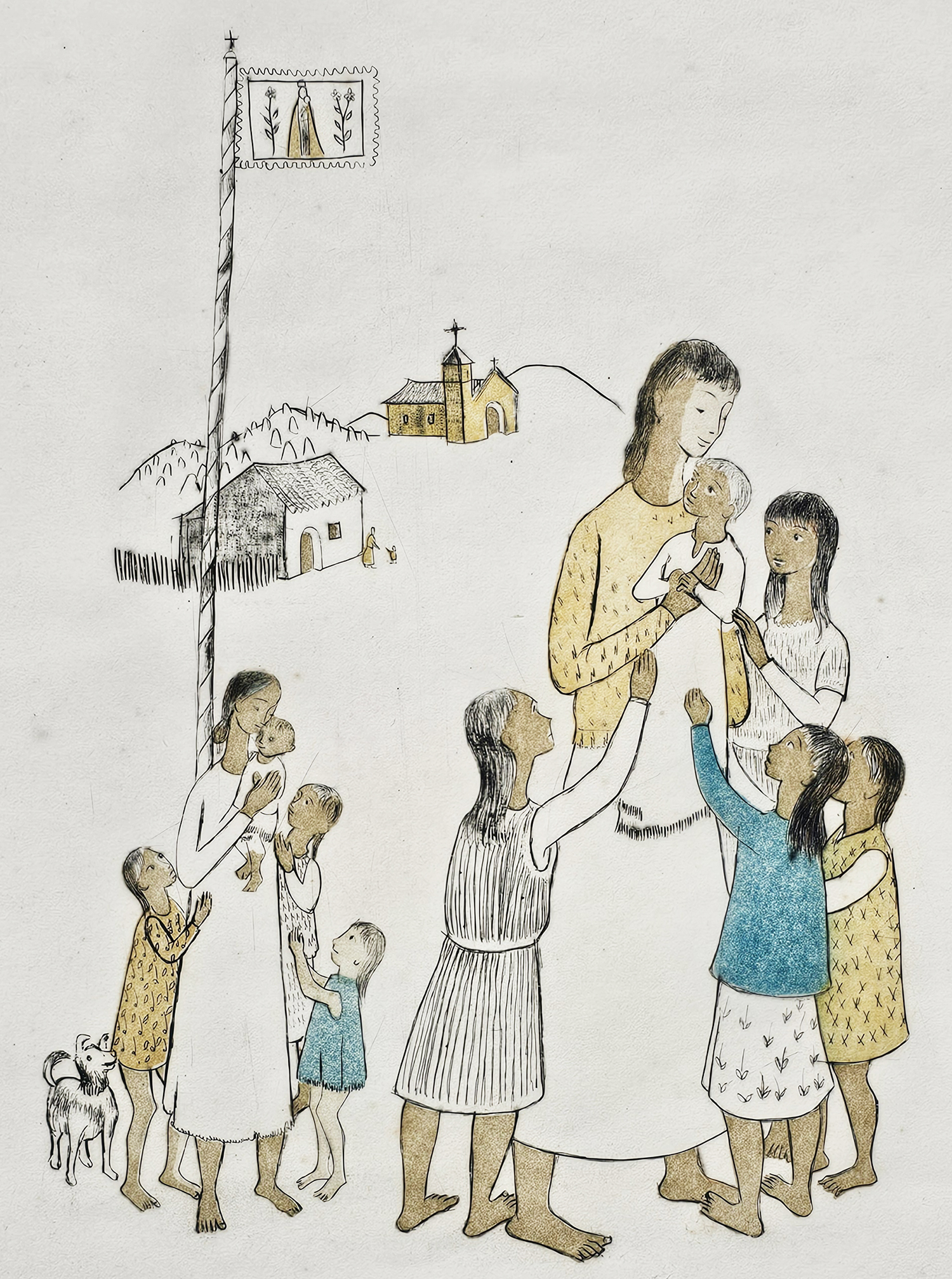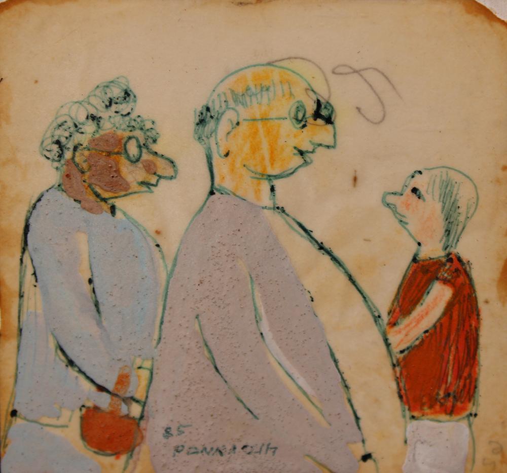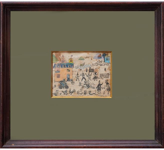 Fulvio Pennacchi - Família. Guache e giz de cera sobre papel, 29x21 cm, 1971, A.C.I.D. Com moldura