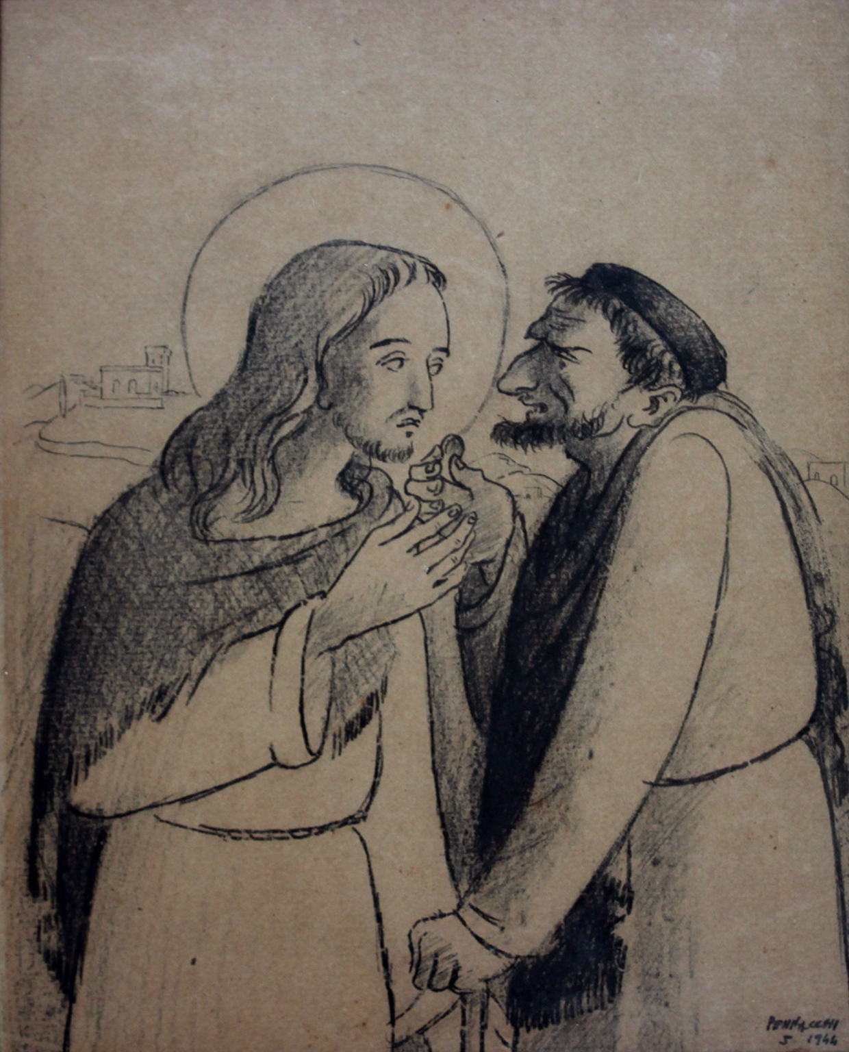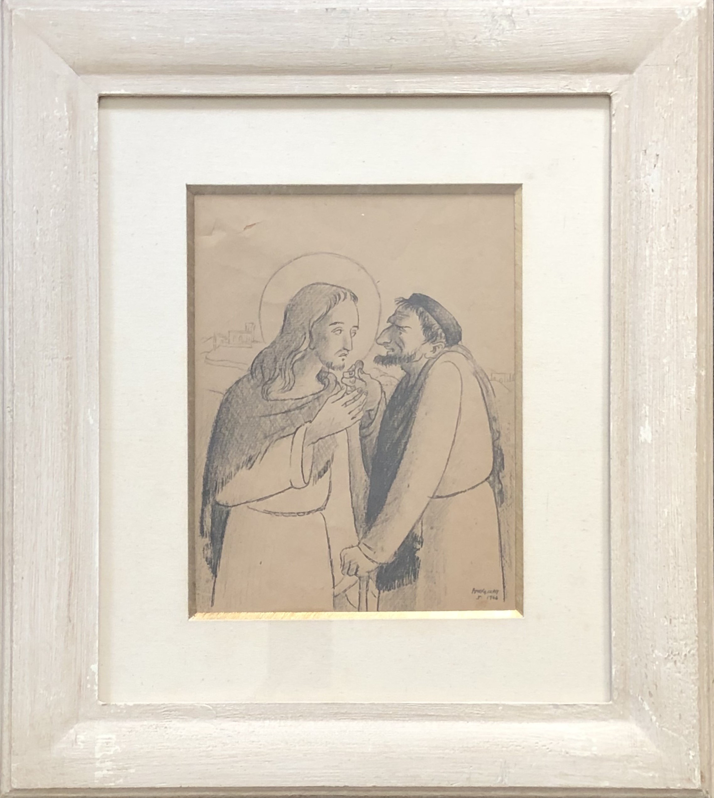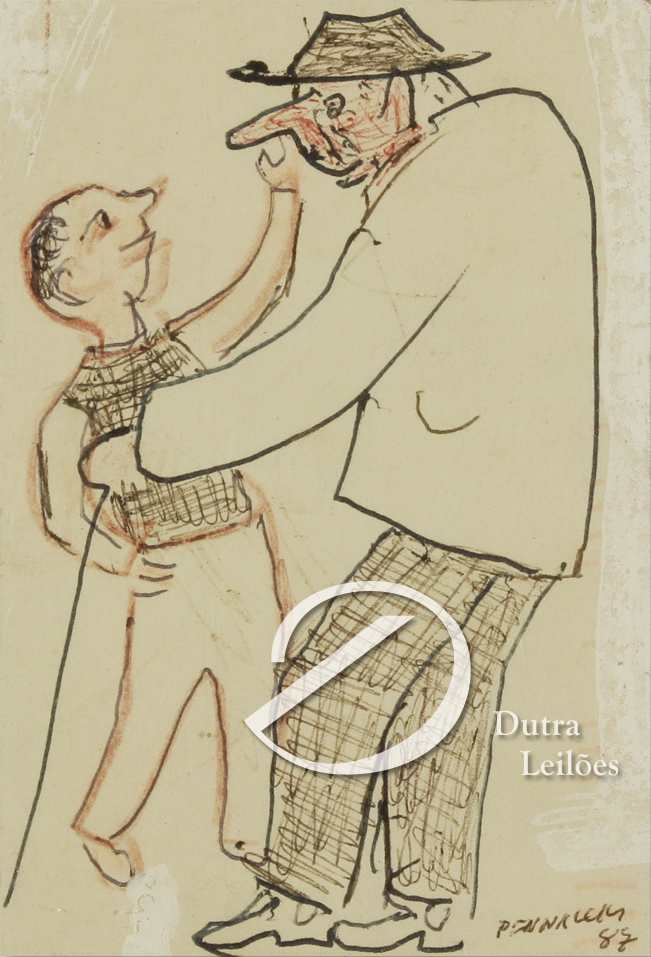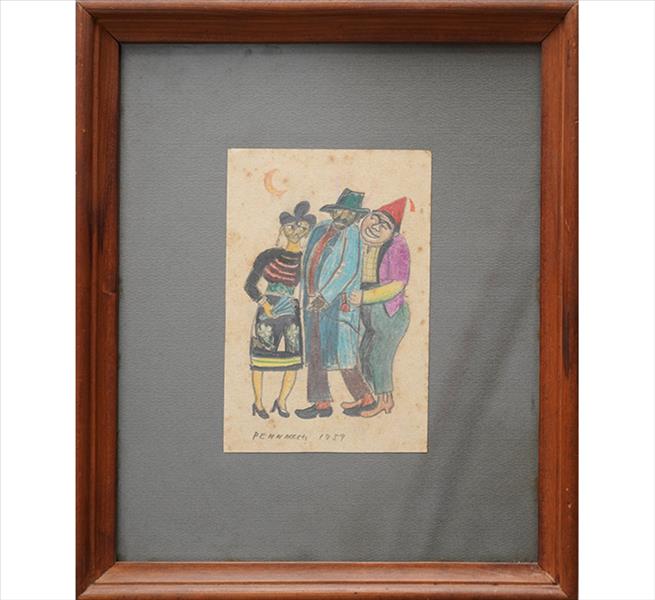 FULVIO PENNACCHI, Figuras, Desenho à Grafite, Crayon e Lápis de Cor sobre Papel, ACIE, 15 x 10cm (m.i). Datado 1959 (com vestígios de fungos)