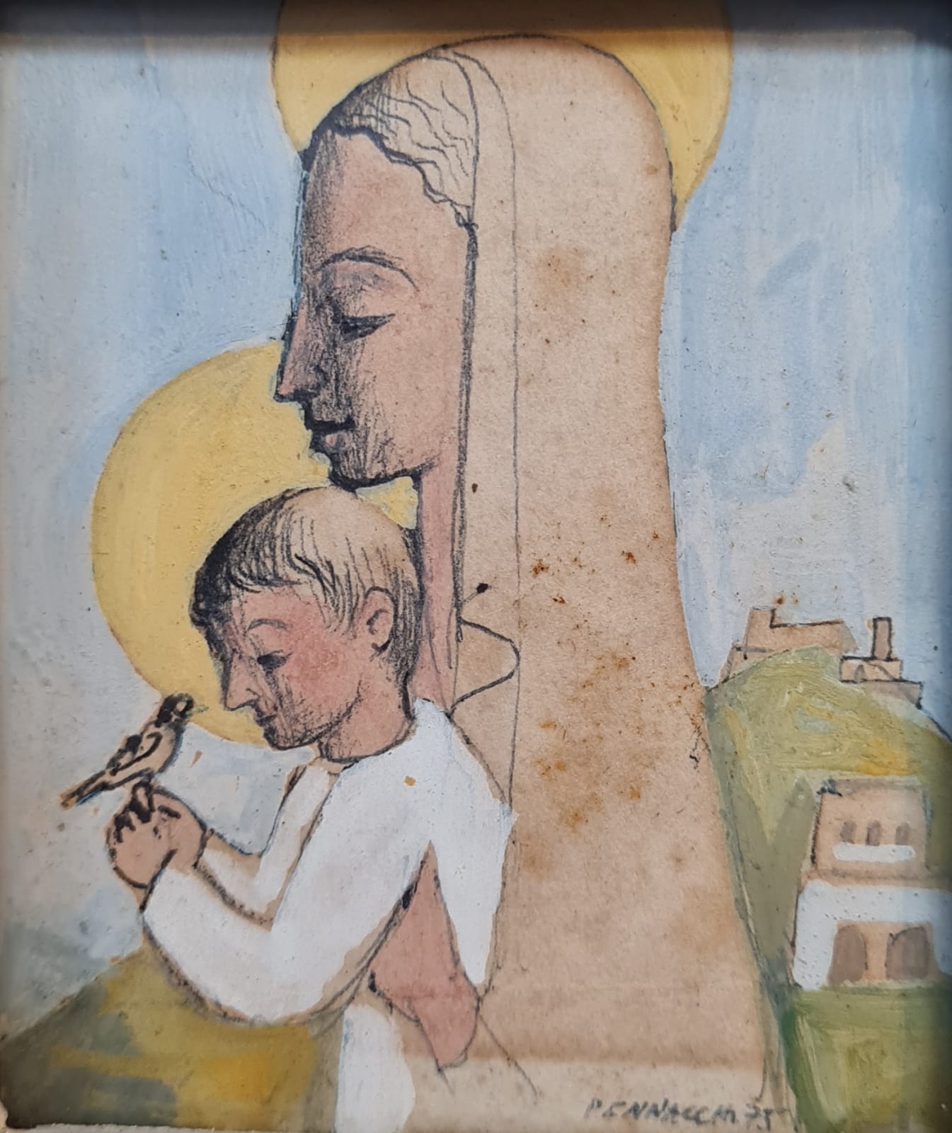 Fulvio Pennacchi - Madona - 1974 - Óleo sobre tela - Assinado canto superior direito - 12 x 5 cm.