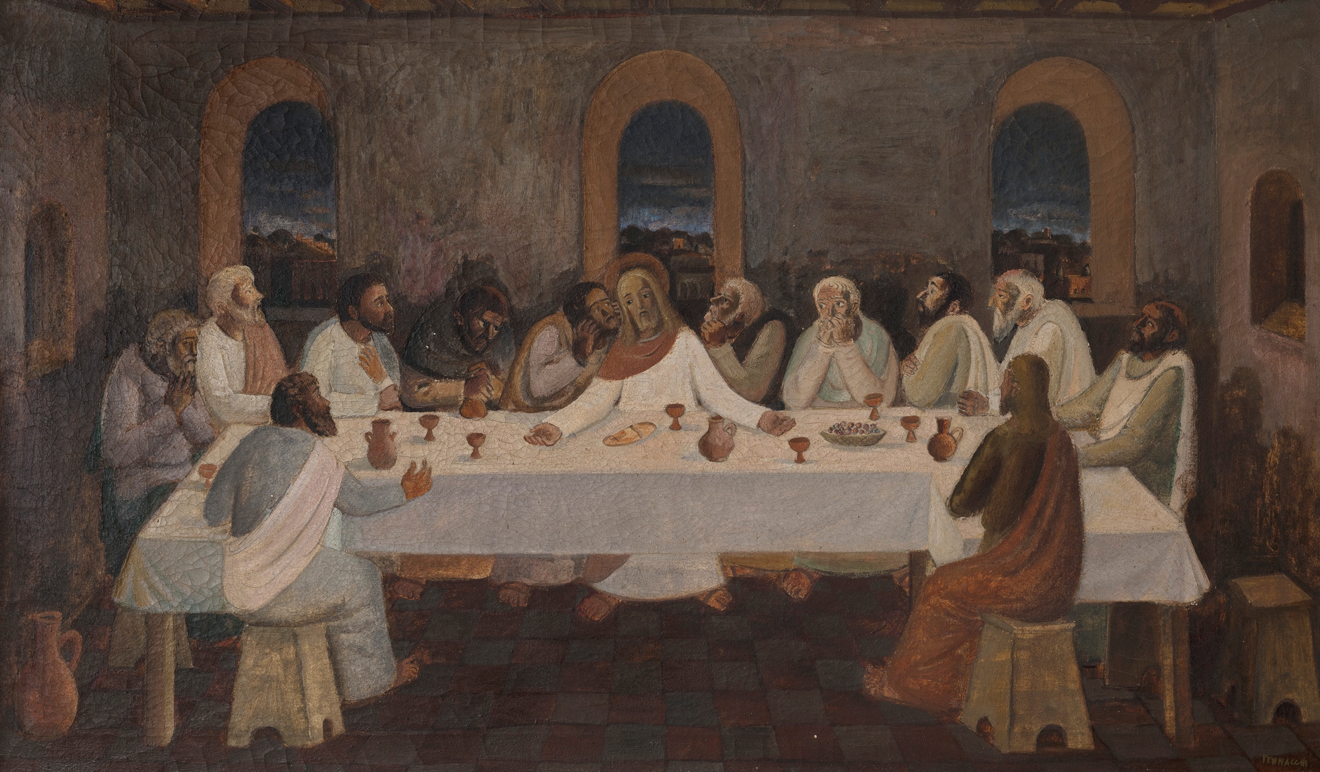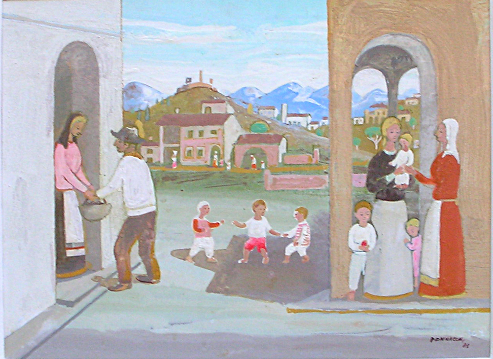 Fulvio Pennacchi - Maternidade. Óleo sobre cartão colado em eucatex, 55x39 cm, 1973, A.C.I.E. Com moldura