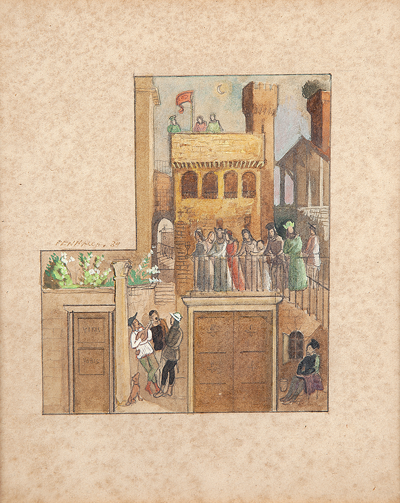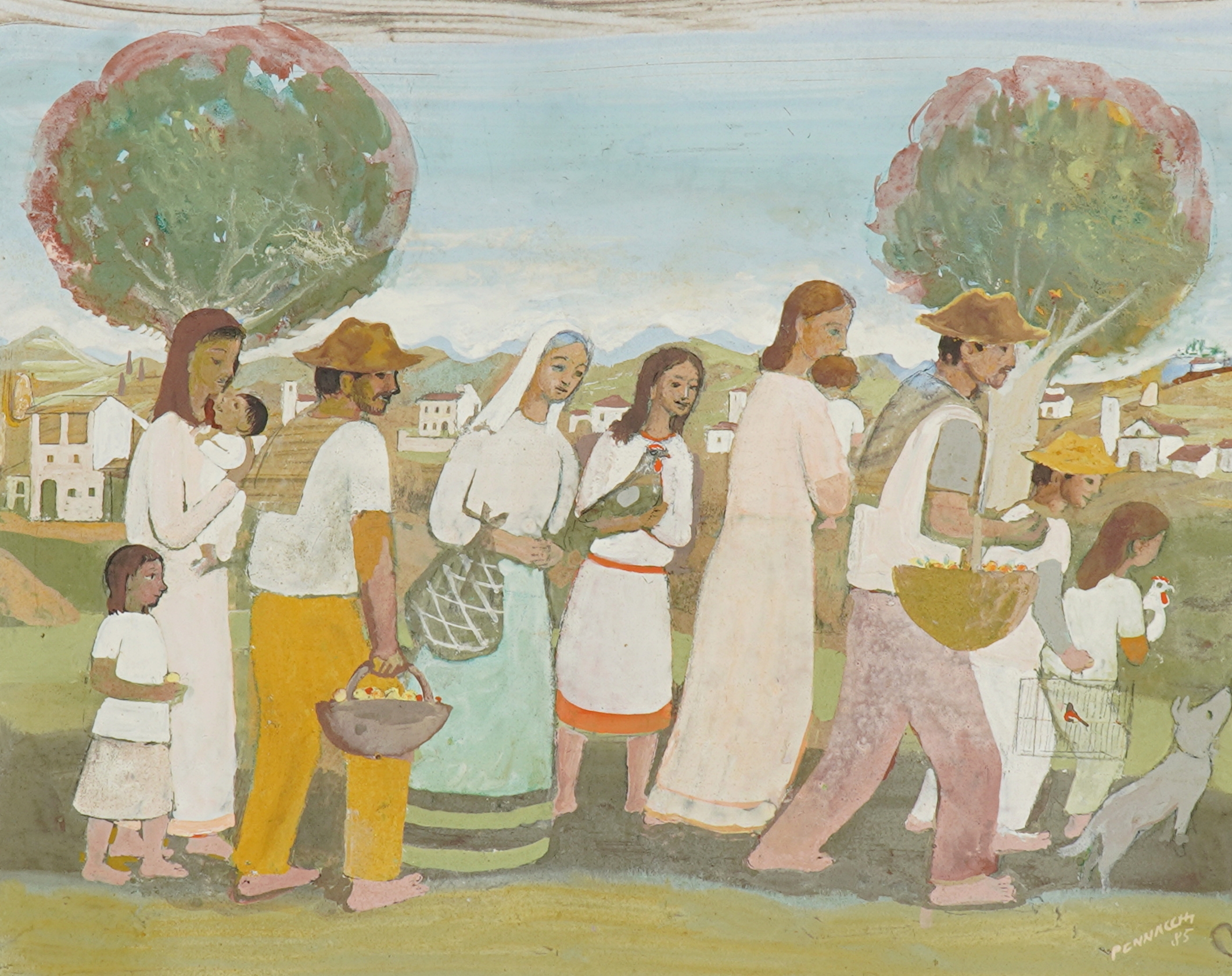 FULVIO PENNACCHI, Composição com Figuras, Técnica Mista sobre Papel, ACID, 10,5 x 13cm (m.i). Datado 1952