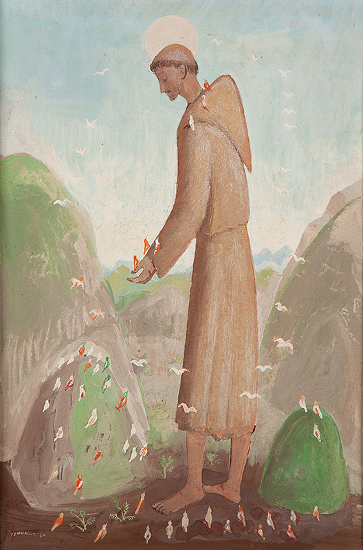 Sua pintura é sensível e pessoal, de modo especial na interpretação dos grandes temas bíblicos e da vida dos santos,...