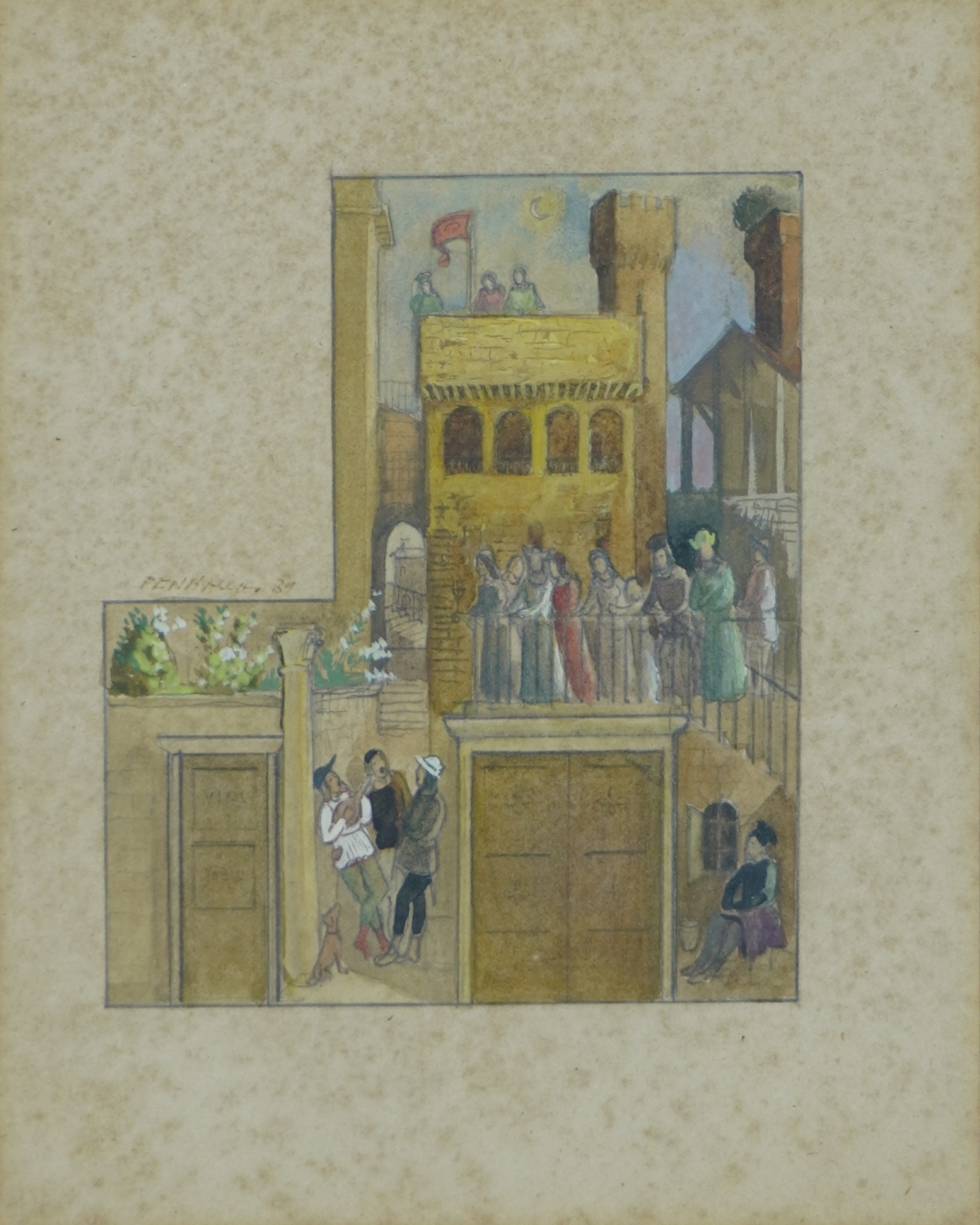 PENNACCHI, Fúlvio - "Vila com figuras" - óleo sobre cartão colado sobre eucatex - 09 x 11 cm - a.c.s.d. 1972