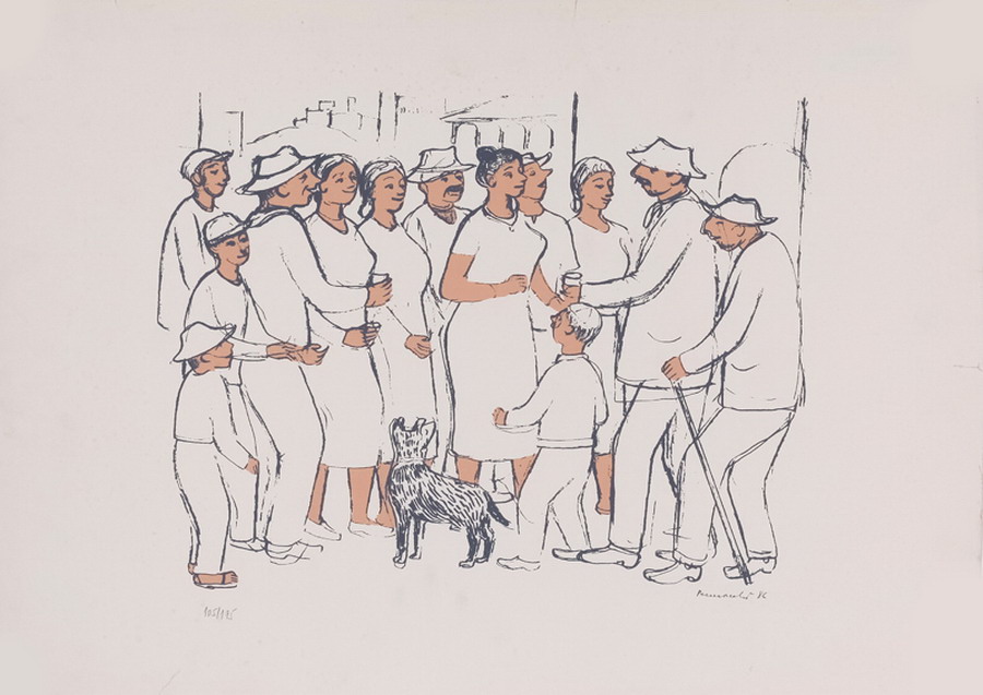 Fúlvio Pennacchi - Figuras Caminhando - Óleo sobre placa - 30 alt x 40 larg - acid - 1990 -  Obra com selo do ateliê do Artista no verso.