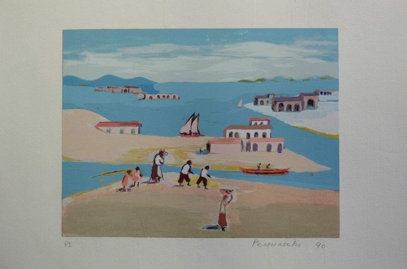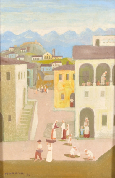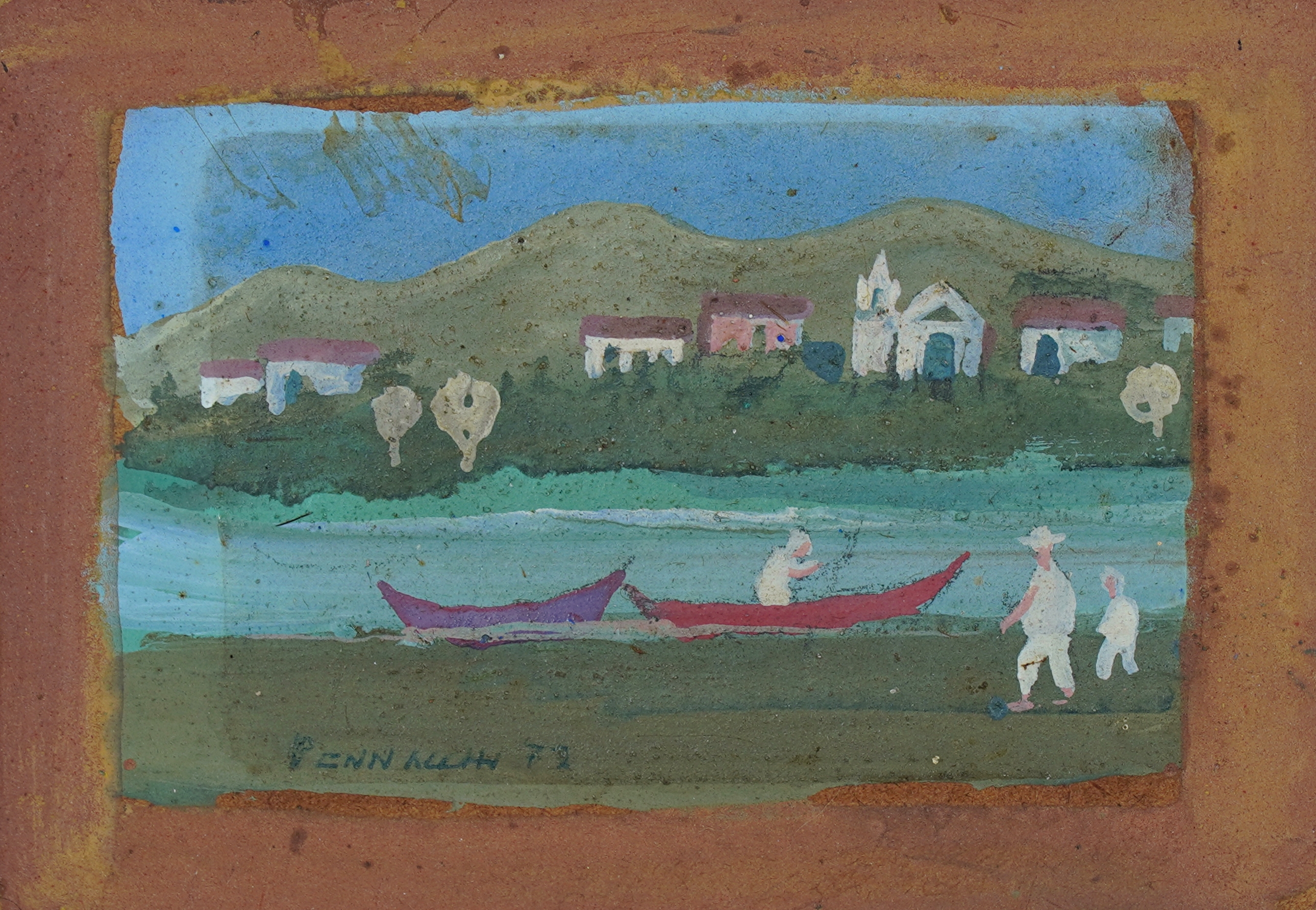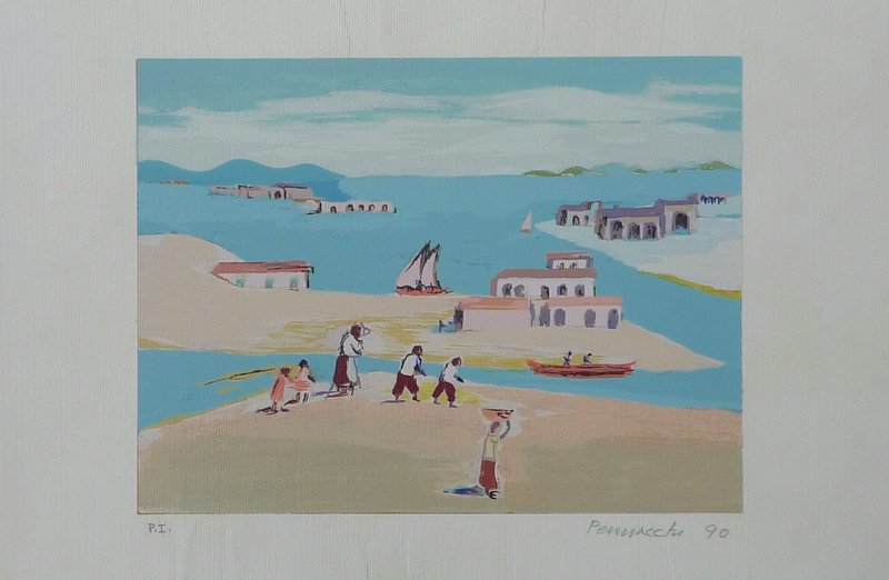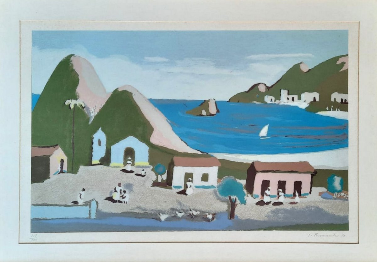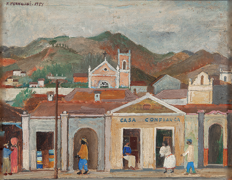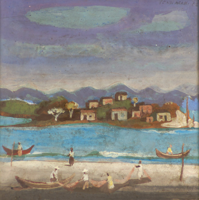 Fulvio Pennacchi - Vila de pescadores. Óleo sobre eucatex, 50x70 cm, 1980, A.C.I.E. e V. Com moldura