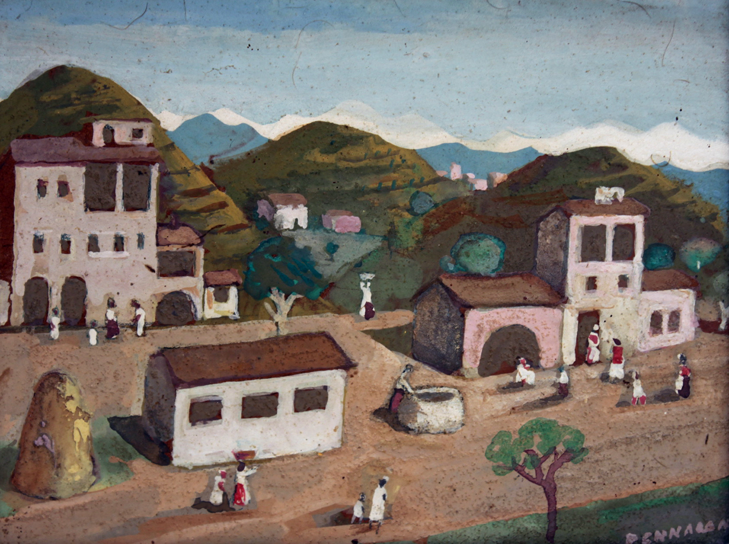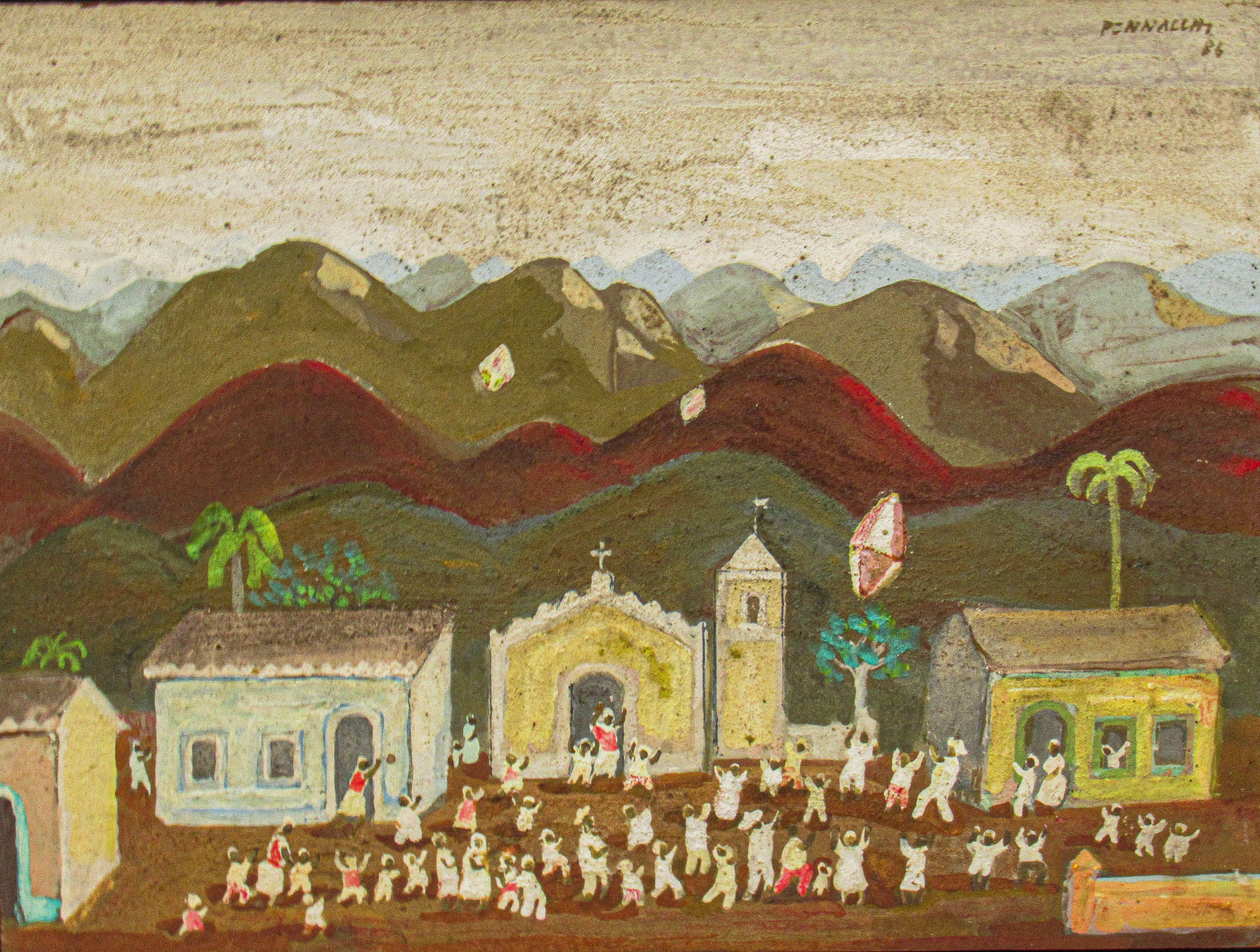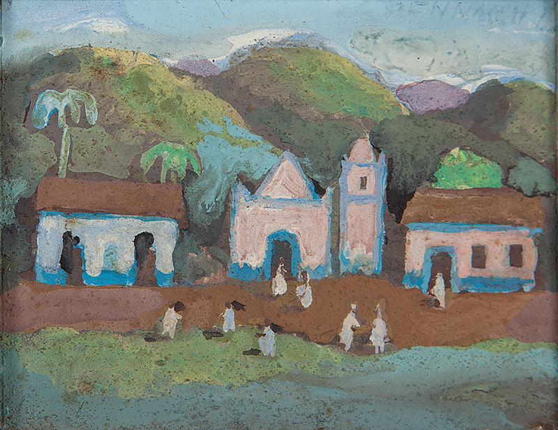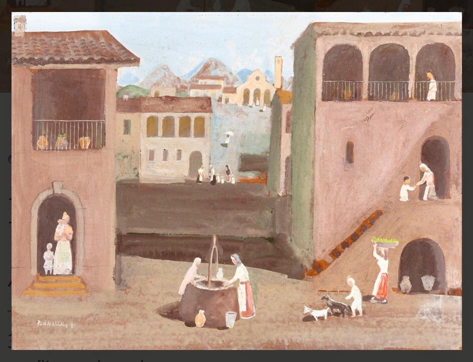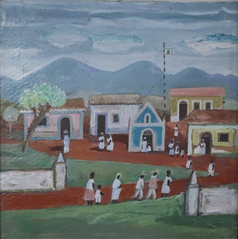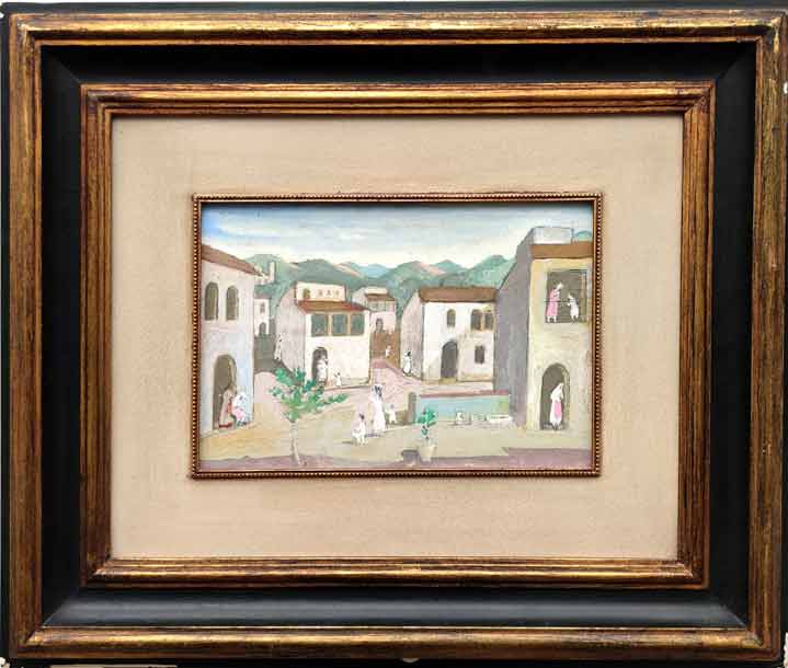 Fulvio Pennacchi - Vila de pescadores. Óleo sobre eucatex, 50x70 cm, 1980, A.C.I.E. e V. Com moldura