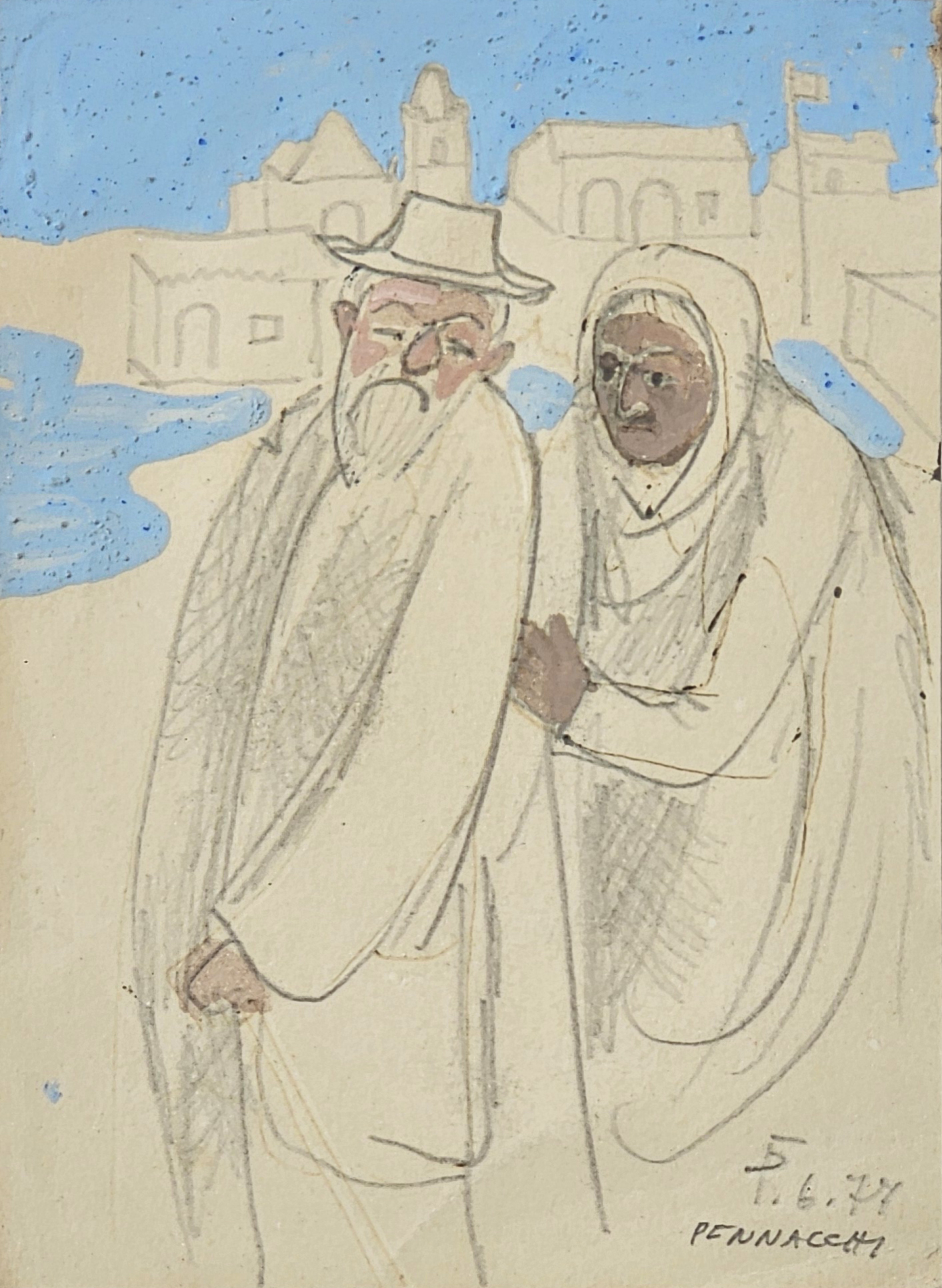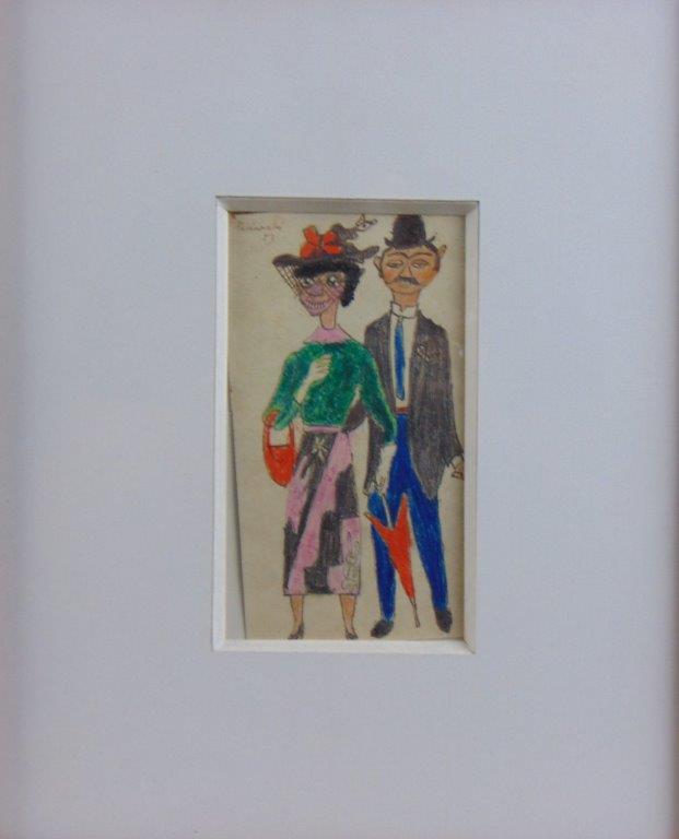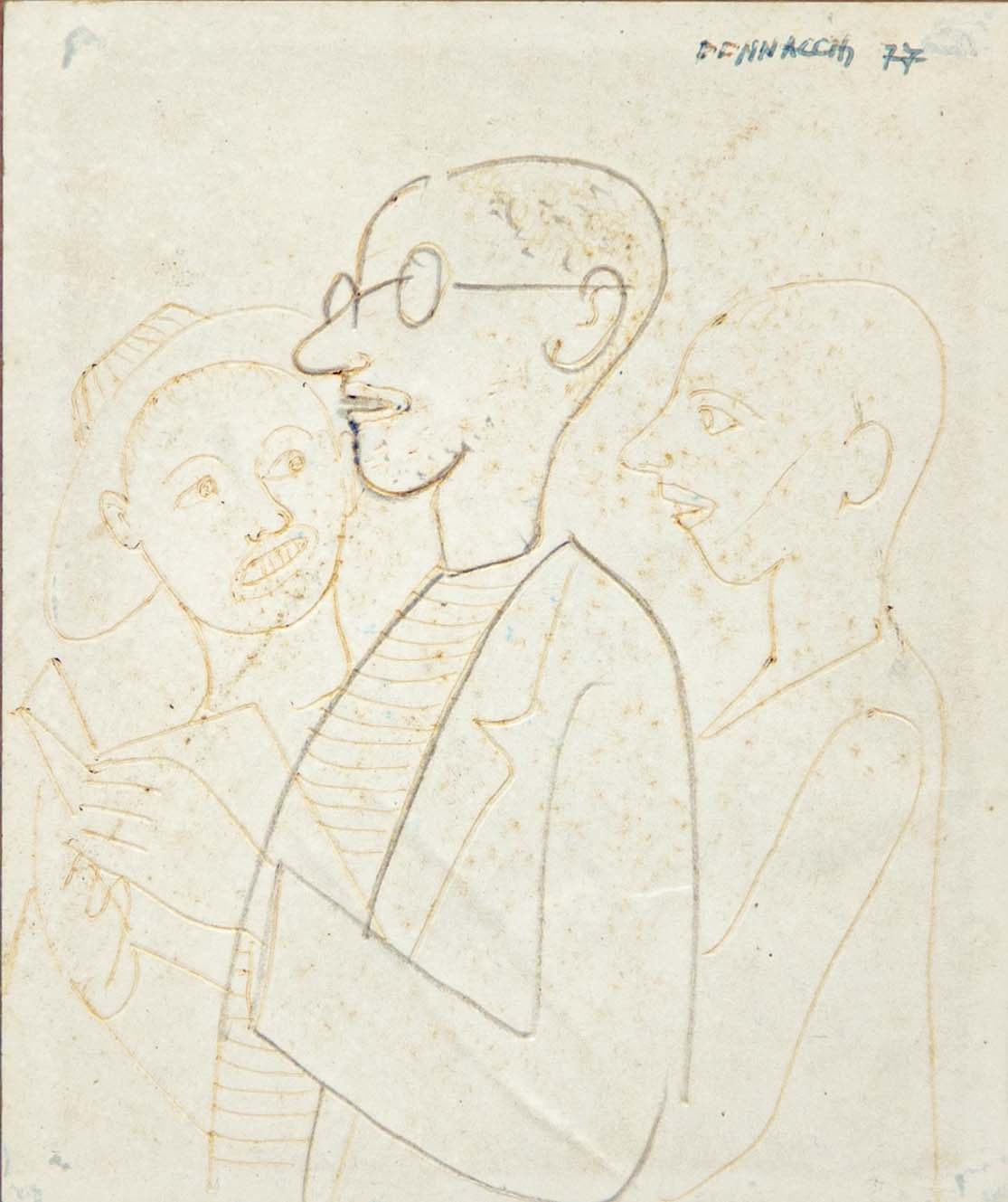 FULVIO PENNACCHI, Figuras, Desenho à Grafite, Crayon e Lápis de Cor sobre Papel, ACIE, 15 x 10cm (m.i). Datado 1959 (com vestígios de fungos)