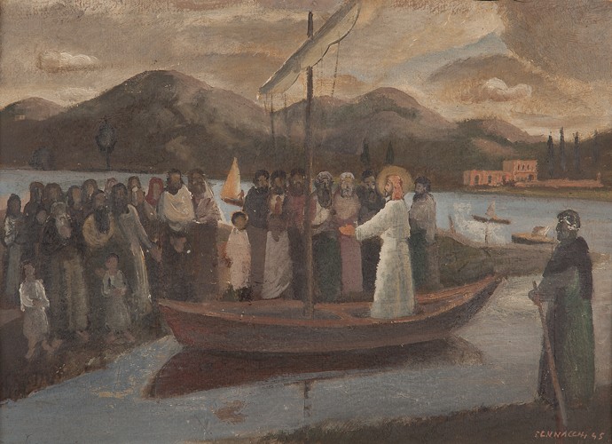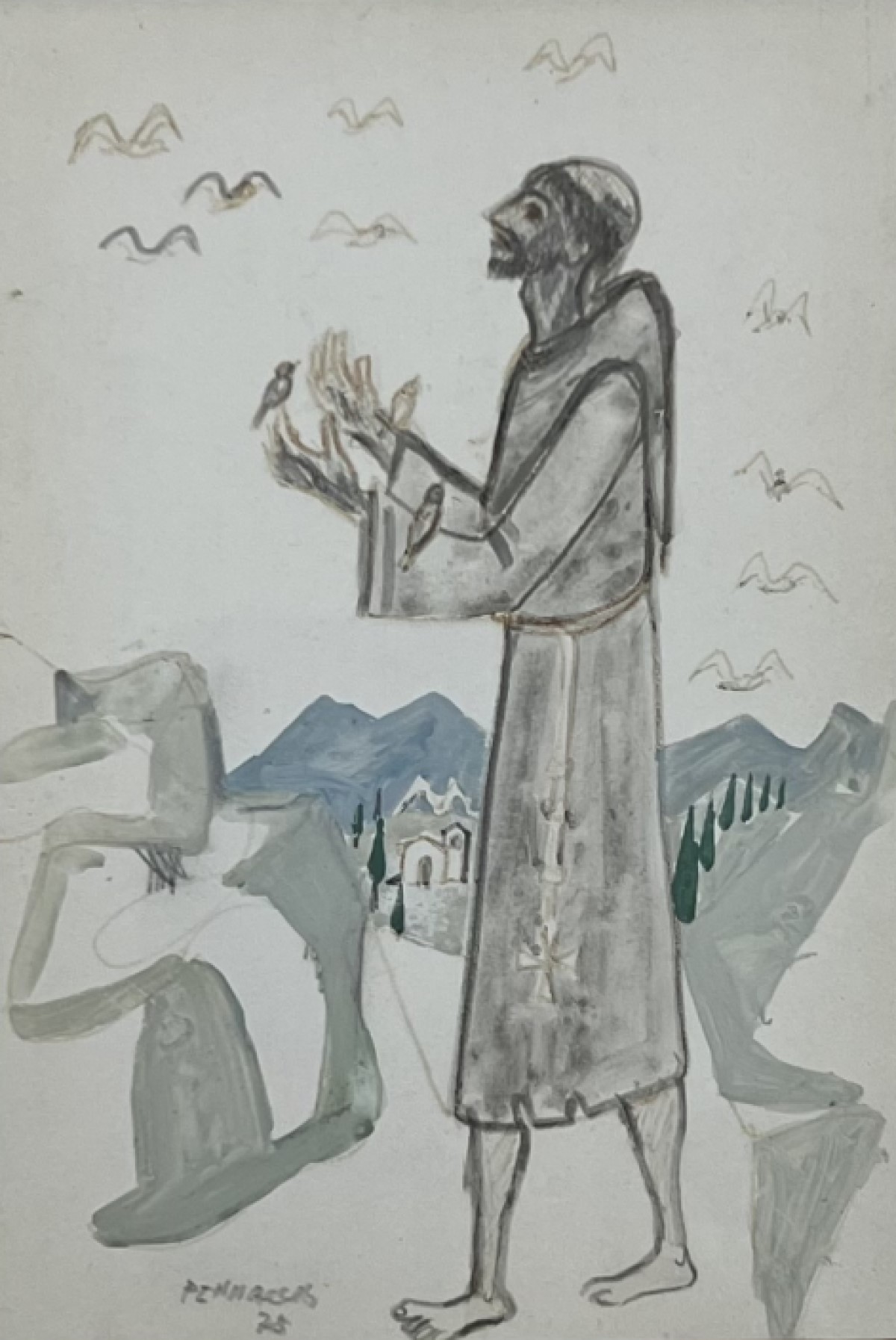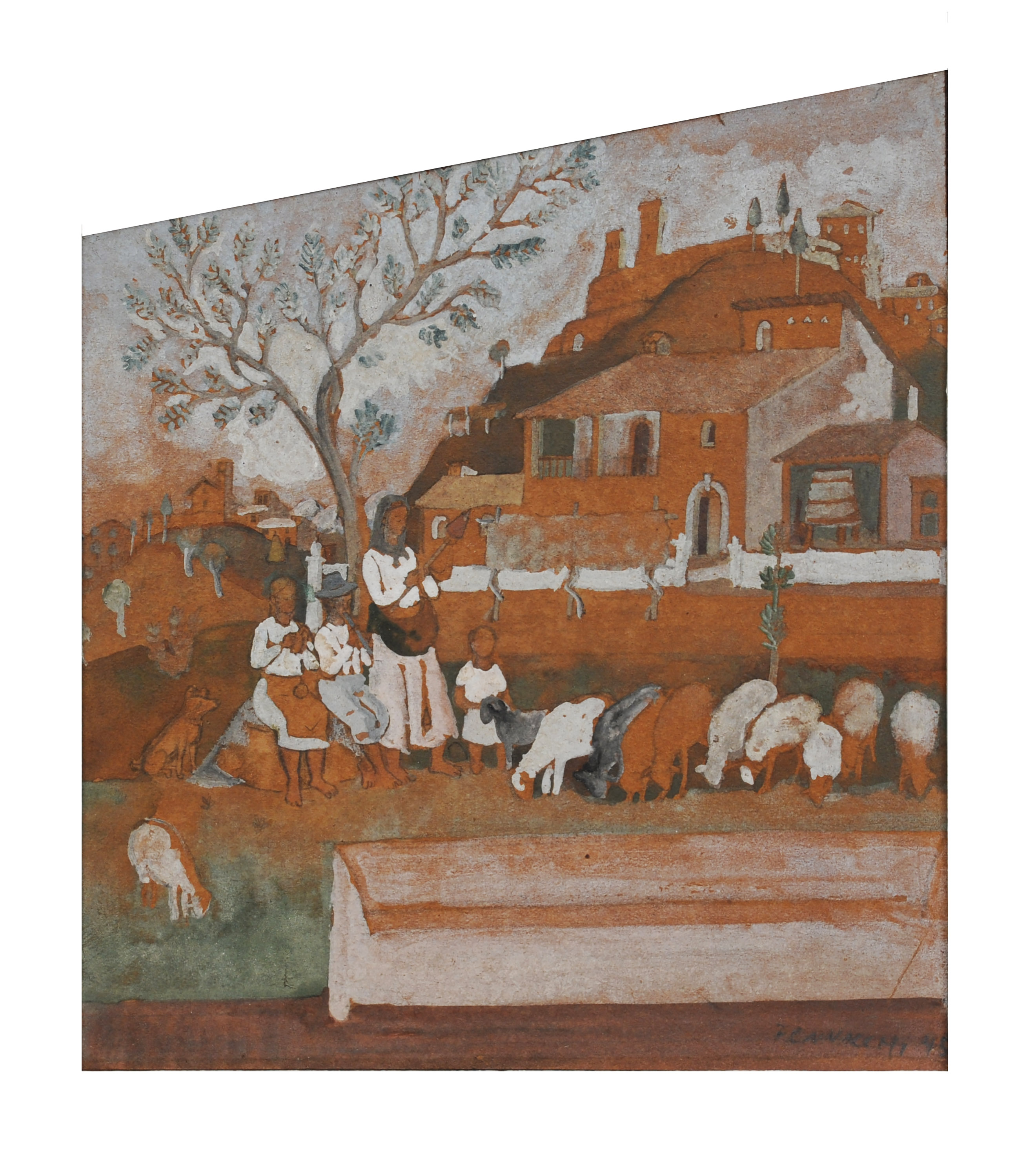 FULVIO PENNACCHI, Composição com Figuras, Técnica Mista sobre Papel, ACID, 10,5 x 13cm (m.i). Datado 1952