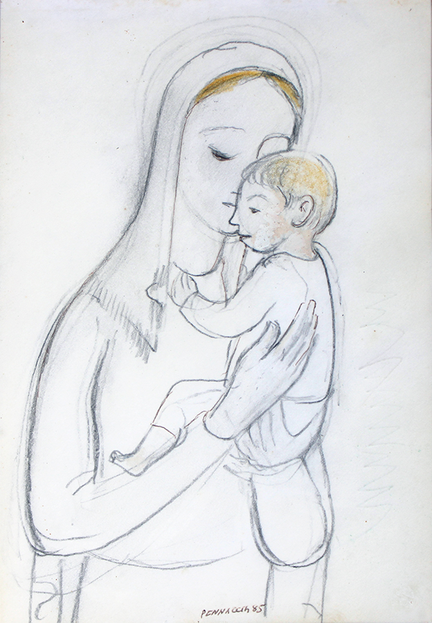 Fulvio Pennacchi - Madona - 1974 - Óleo sobre tela - Assinado canto superior direito - 12 x 5 cm.