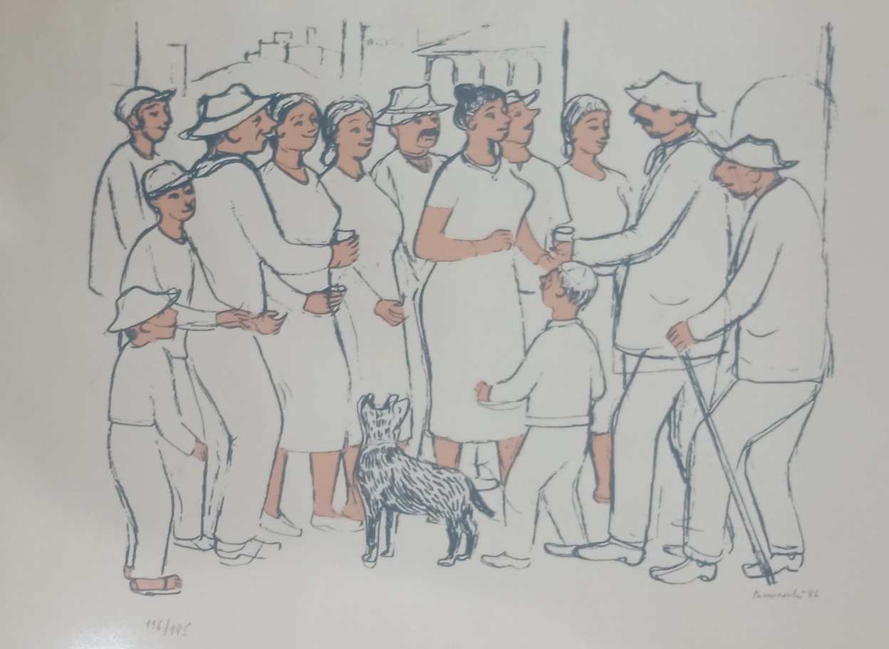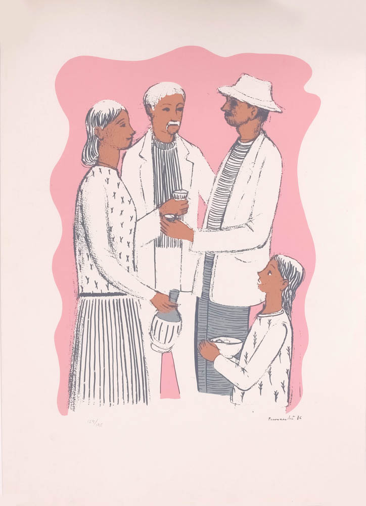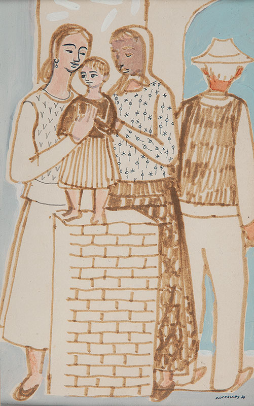 Fulvio Pennacchi - Família. Guache e giz de cera sobre papel, 29x21 cm, 1971, A.C.I.D. Com moldura
