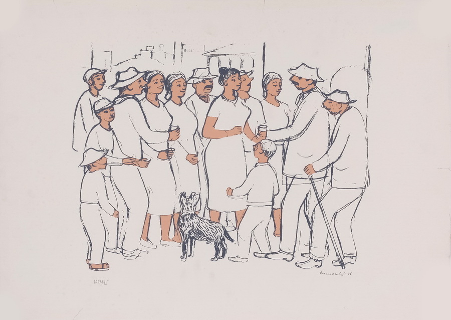 Fúlvio Pennacchi, A família,1987, Oleo sobre placa, 26x22, Cartão do ateliê do artista no verso, Belas Artes