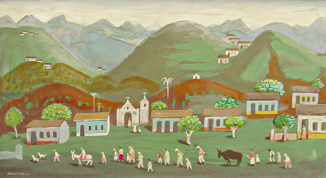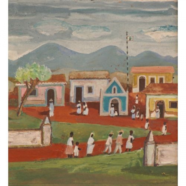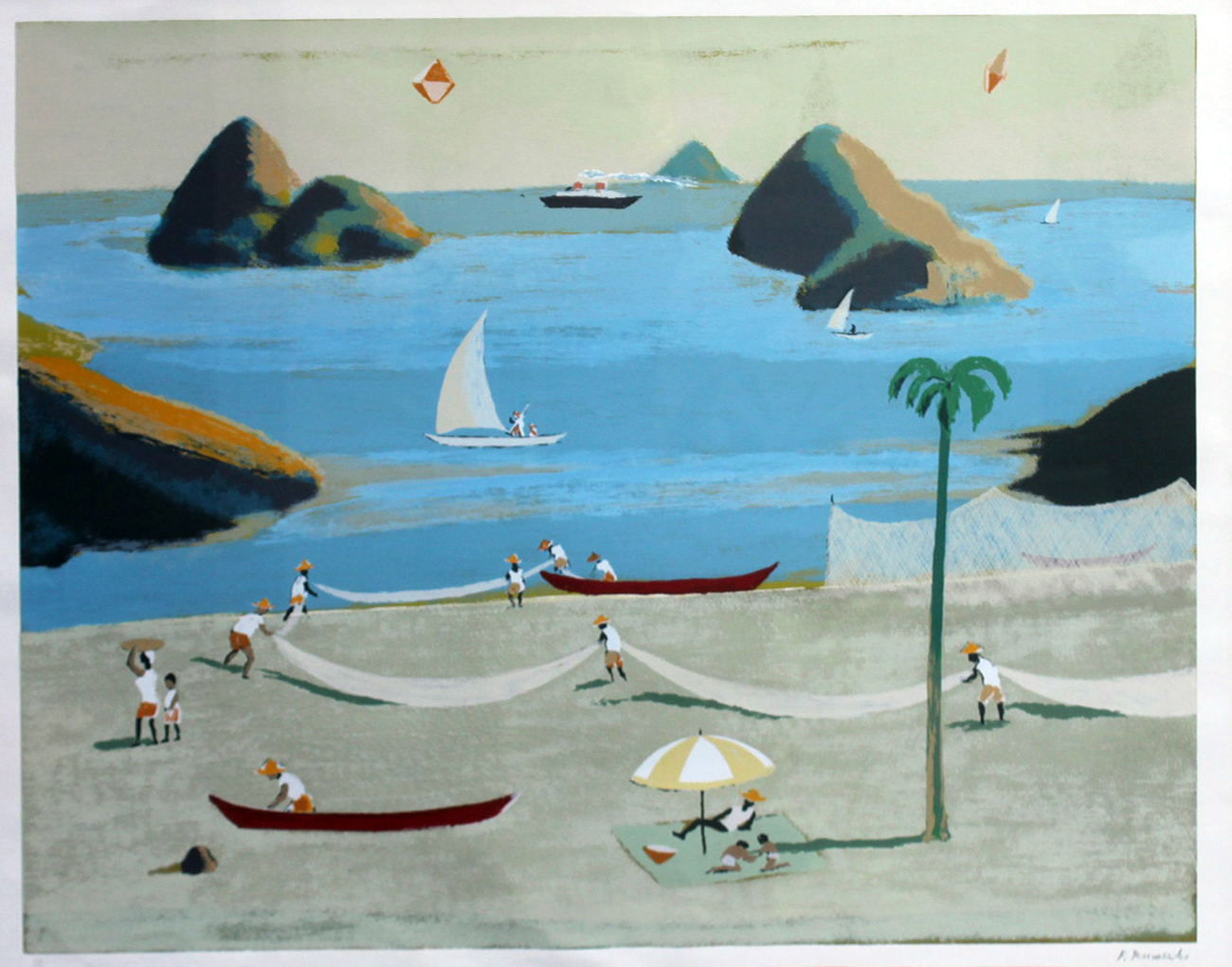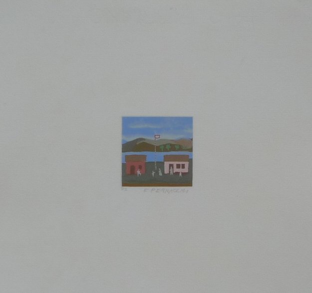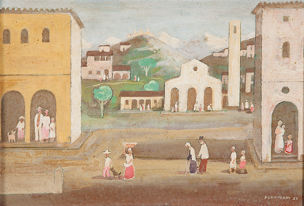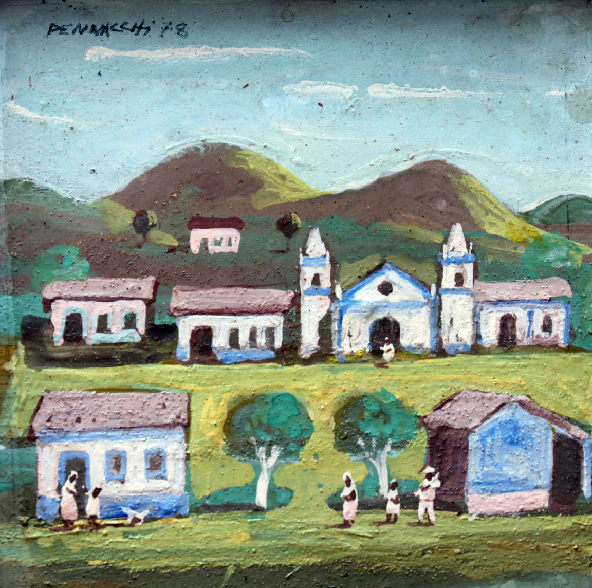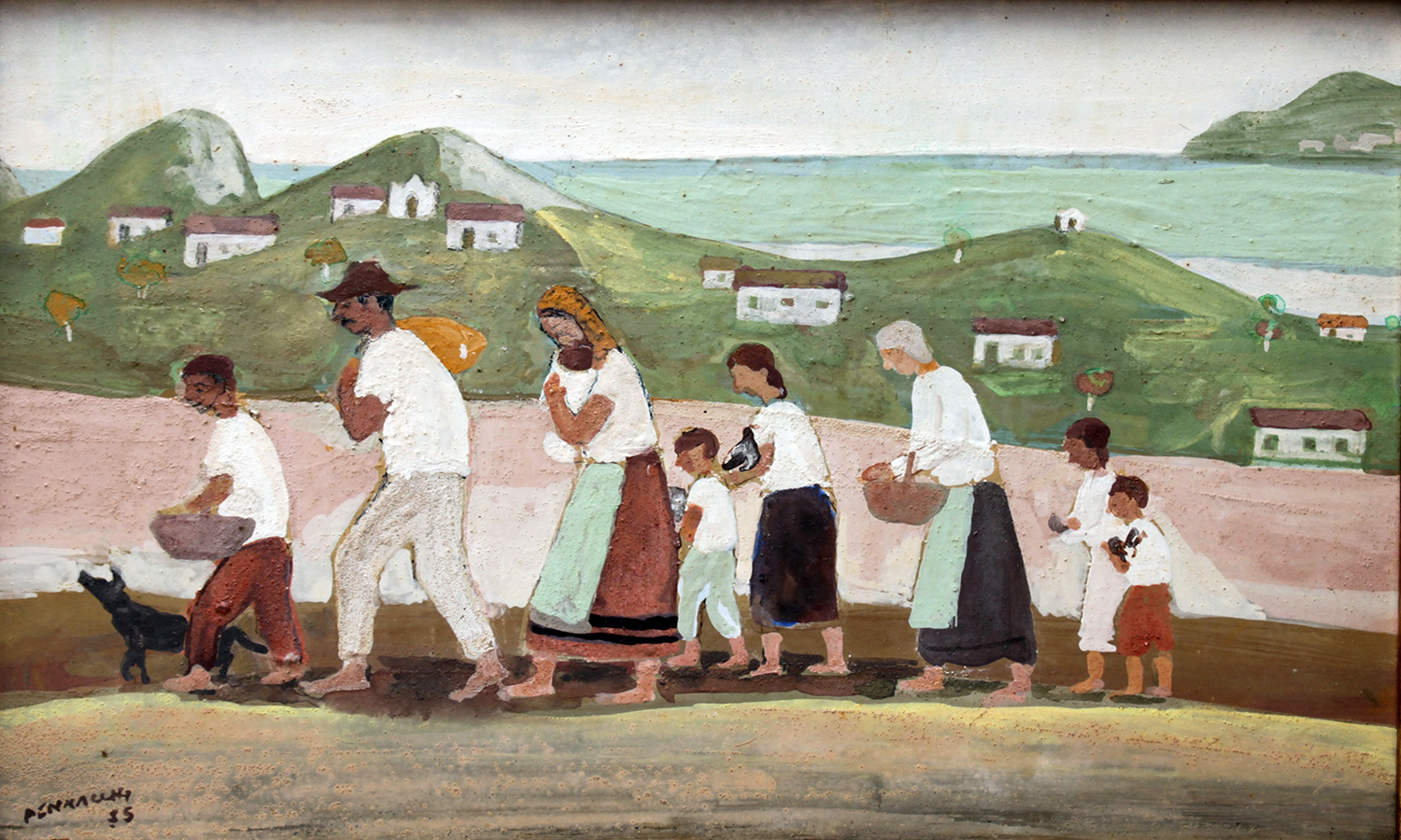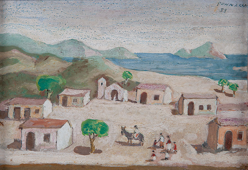 Fulvio Pennacchi - Vila de pescadores. Óleo sobre eucatex, 50x70 cm, 1980, A.C.I.E. e V. Com moldura