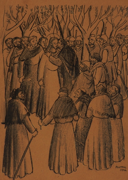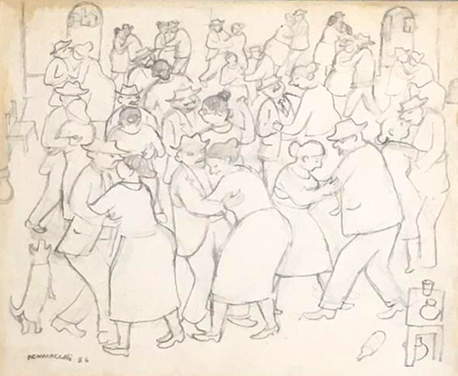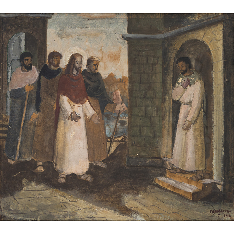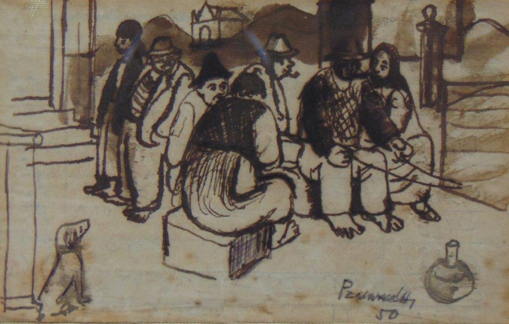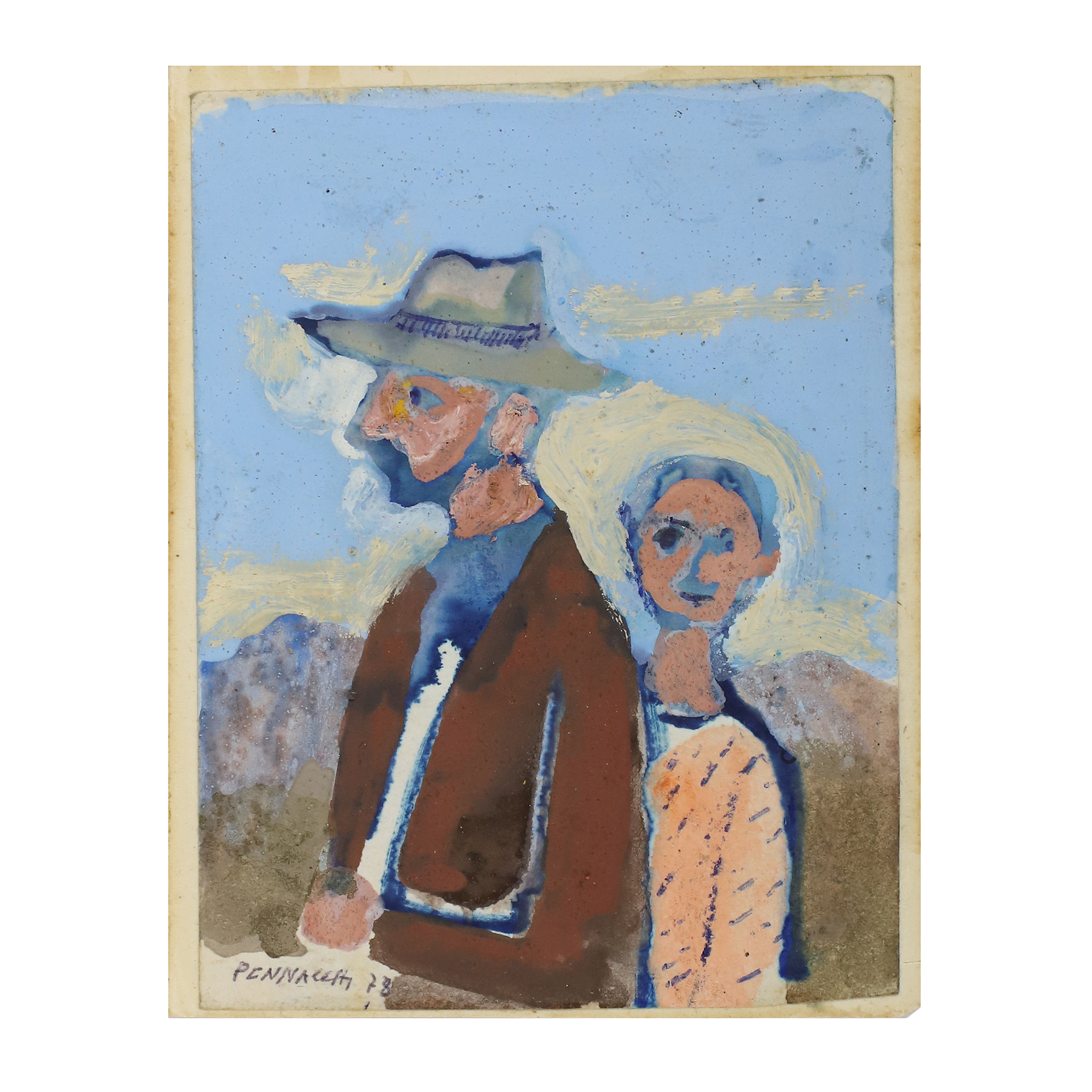 FULVIO PENNACCHI, Composição com Figuras, Técnica Mista sobre Papel, ACID, 10,5 x 13cm (m.i). Datado 1952