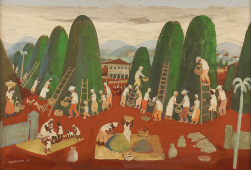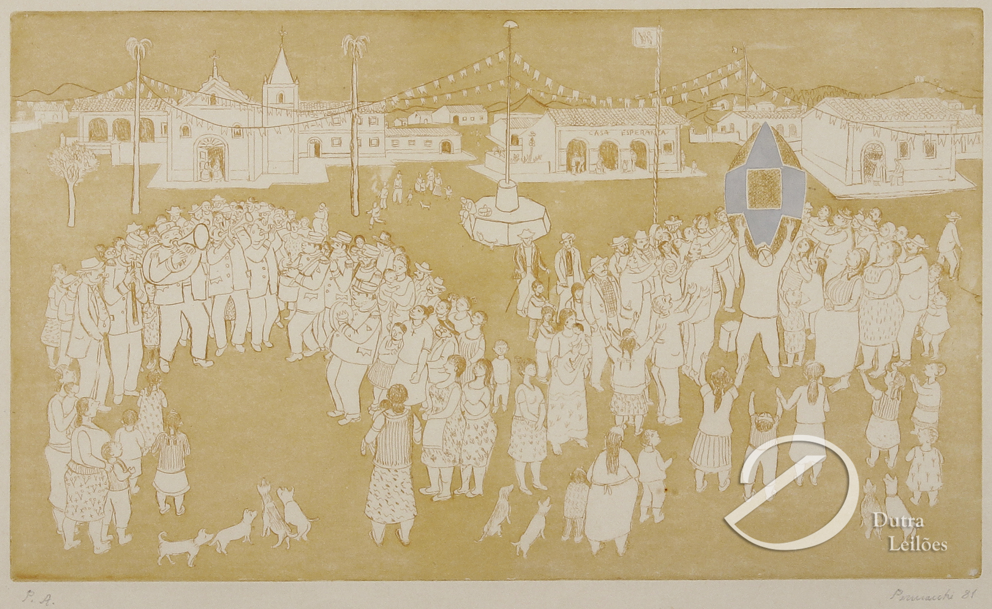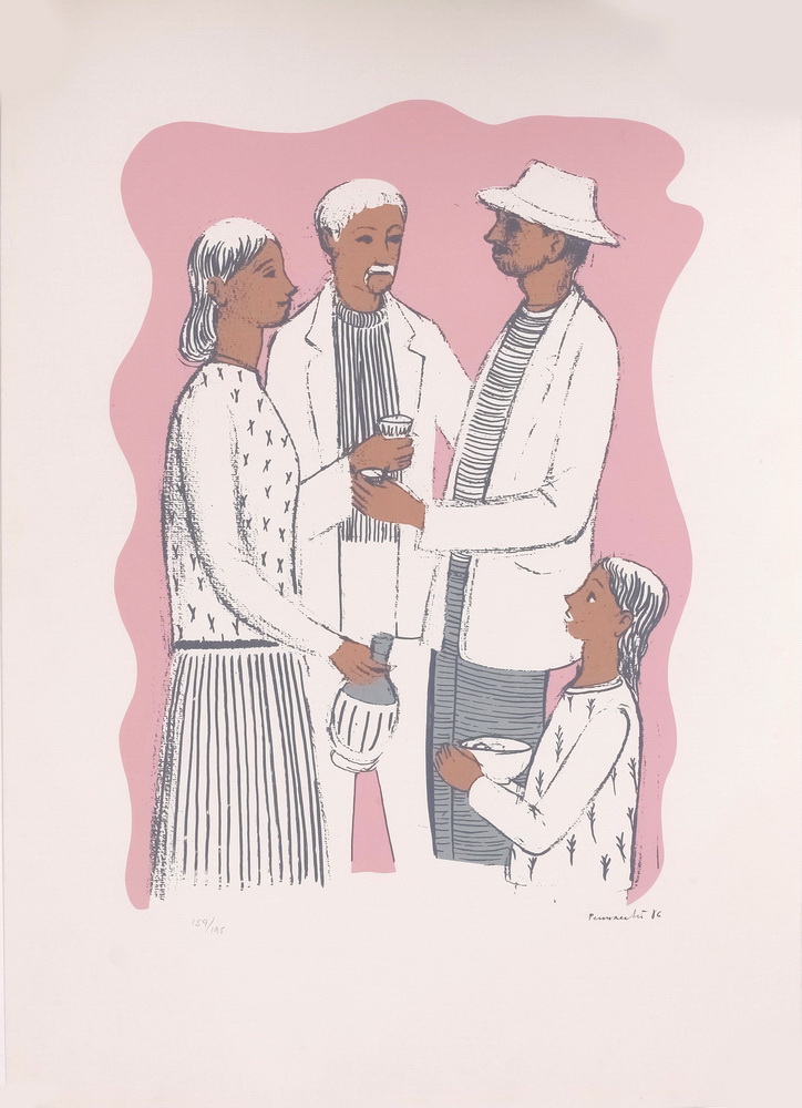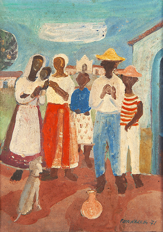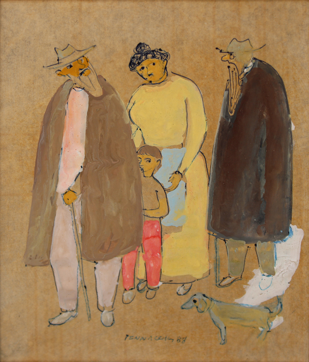 Fulvio Pennacchi - Família. Guache e giz de cera sobre papel, 29x21 cm, 1971, A.C.I.D. Com moldura