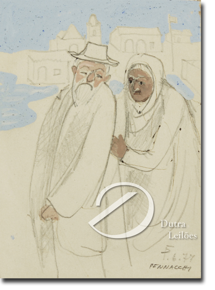 FULVIO PENNACCHI, Figuras, Desenho à Grafite, Crayon e Lápis de Cor sobre Papel, ACIE, 15 x 10cm (m.i). Datado 1959 (com vestígios de fungos)