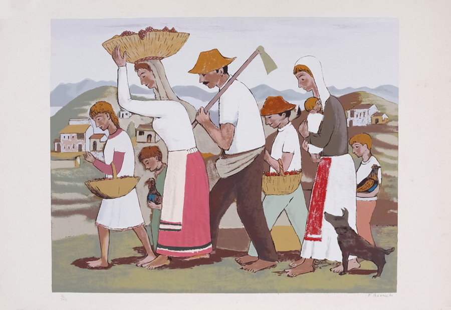 Fúlvio Pennacchi, A família,1987, Oleo sobre placa, 26x22, Cartão do ateliê do artista no verso, Belas Artes