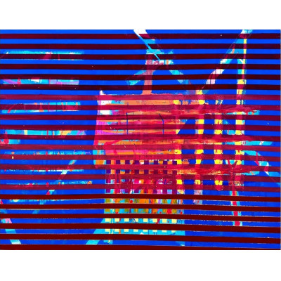 Gabriel Nehemy - Astra - 2018 - Óleo, acrílica, crayon, pastel seco, bastão à óleo e colagem sobre tela - 100 x 200 cm.