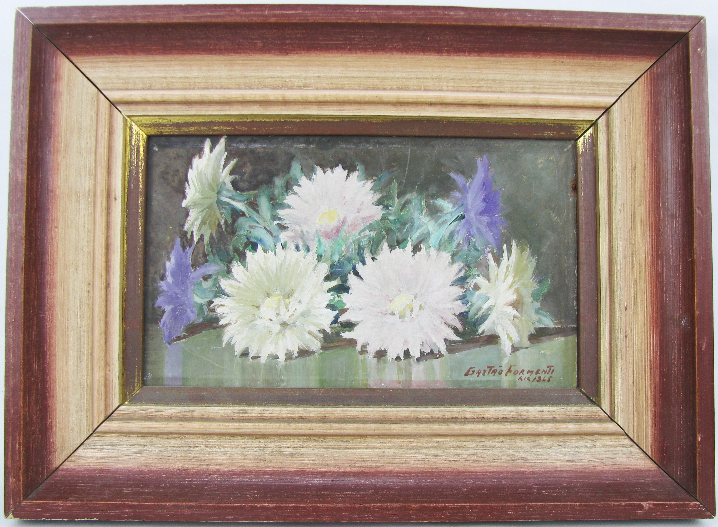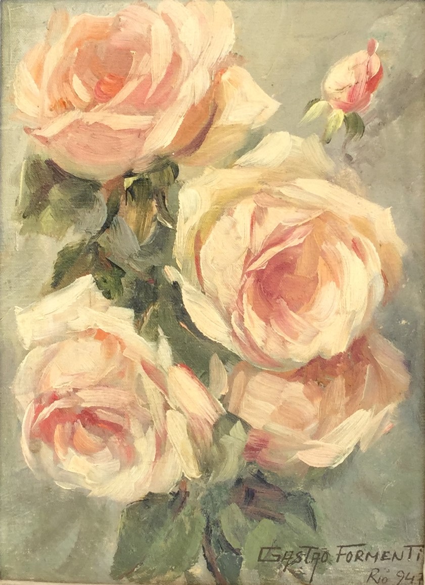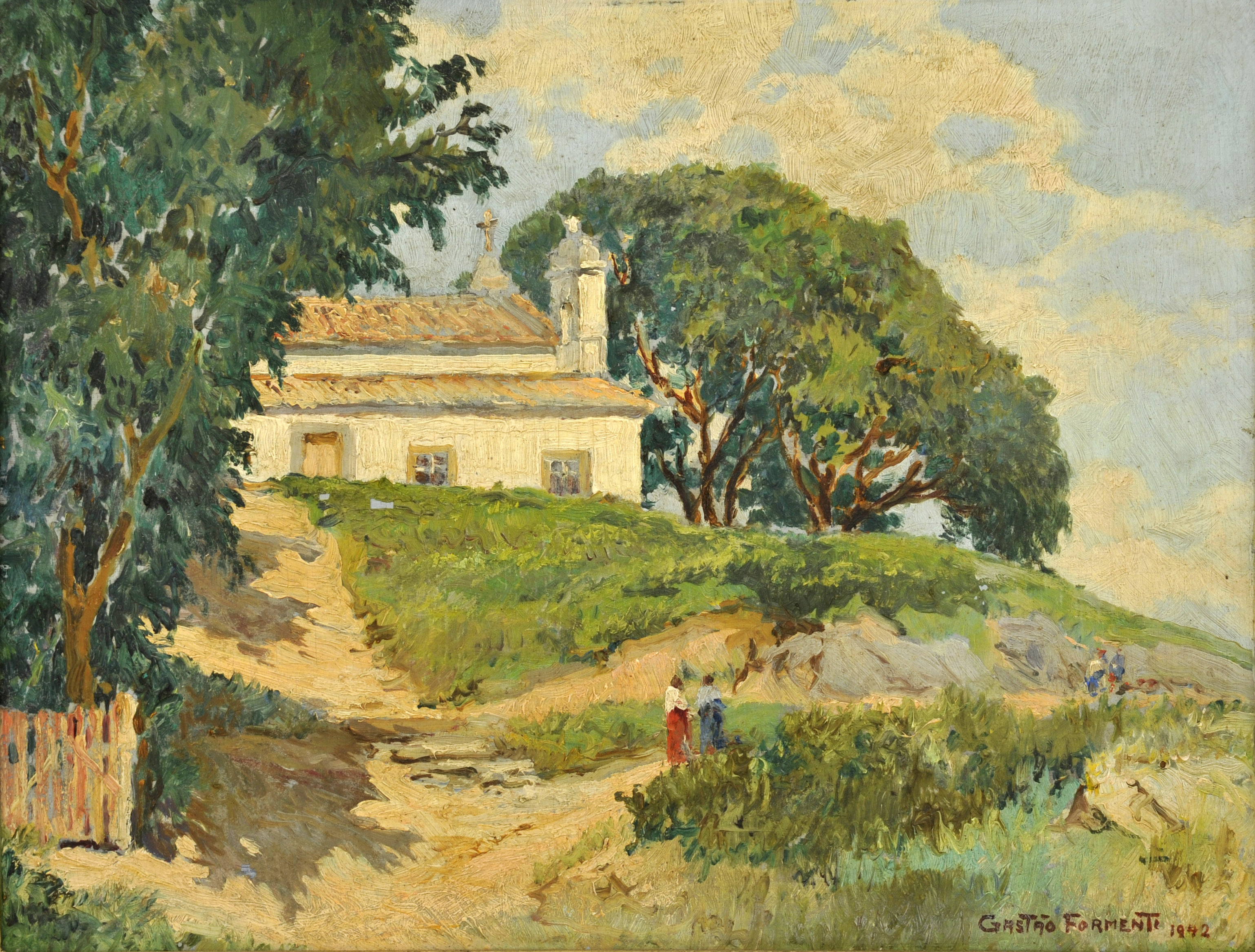 Gastão Formenti (Guaratinguetá, São Paulo, 1894 – Rio de Janeiro, Rio de Janeiro, 1974). Pintor, desenhista, mosaicista, vitralista, cantor e intérprete. Inicia a formação artística estudando desenho e pintura com Pietro Strina (1874-1927), em São Paulo, por volta de 1910. Muda-se com a família para o Rio de Janeiro, onde trabalha no ateliê de seu pai, o artista italiano César Alexandre Formenti (1874-1944), contribuindo na execução de mosaicos e vitrais. Entre os trabalhos realizados com pai, está o piso do Palácio Tiradentes, no Rio de Janeiro. Em 1913, participa pela primeira vez da Exposição Geral de Belas Artes, organizada pela Escola Nacional de Belas Artes, no Rio de Janeiro, recebendo menção honrosa. Em edições posteriores da exposição, é premiado com medalha de bronze em 1921 e medalha de prata em 1924. Participa, também, de edições do Salão Paulista de Belas Artes, obtendo a medalha de prata na edição de 1940. Torna-se cantor popular em 1916, gravando mais de 400 músicas.  Em 1970, faz uma gravação com sua história de vida para o Museu da Imagem e do Som de São Paulo (MIS/SP),  integrando o projeto “Depoimentos para a Posteridade”. Possui obras no acervo do Museu Nacional de Belas Artes, no Rio de Janeiro.