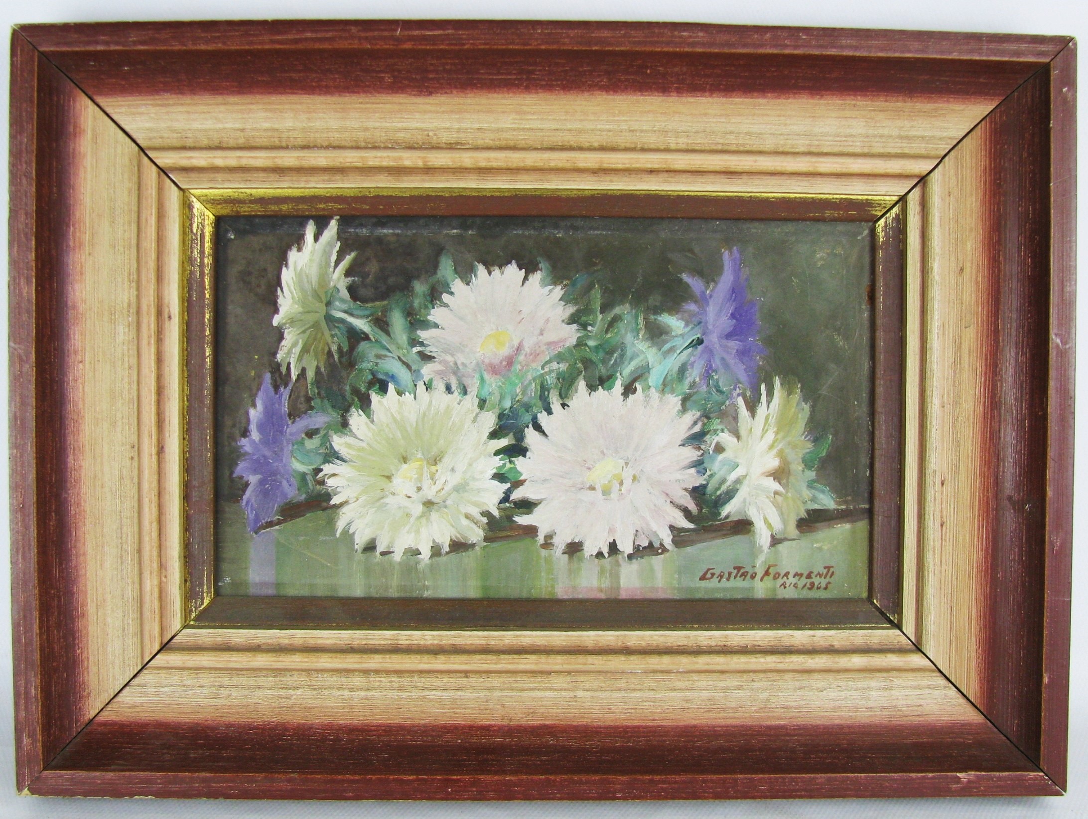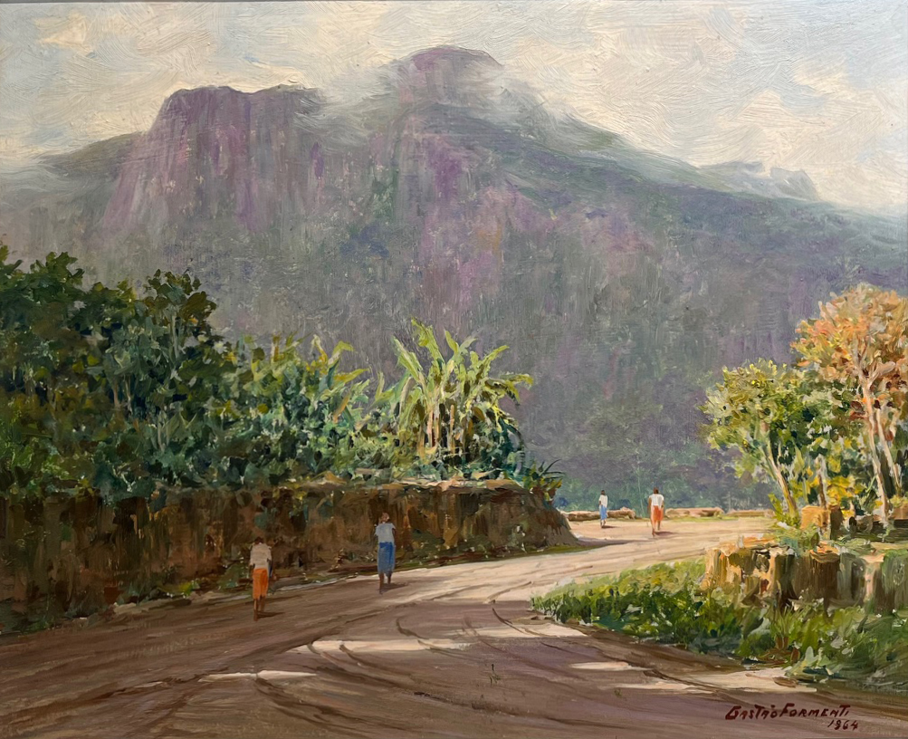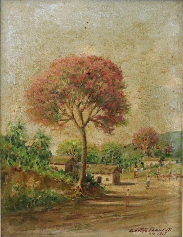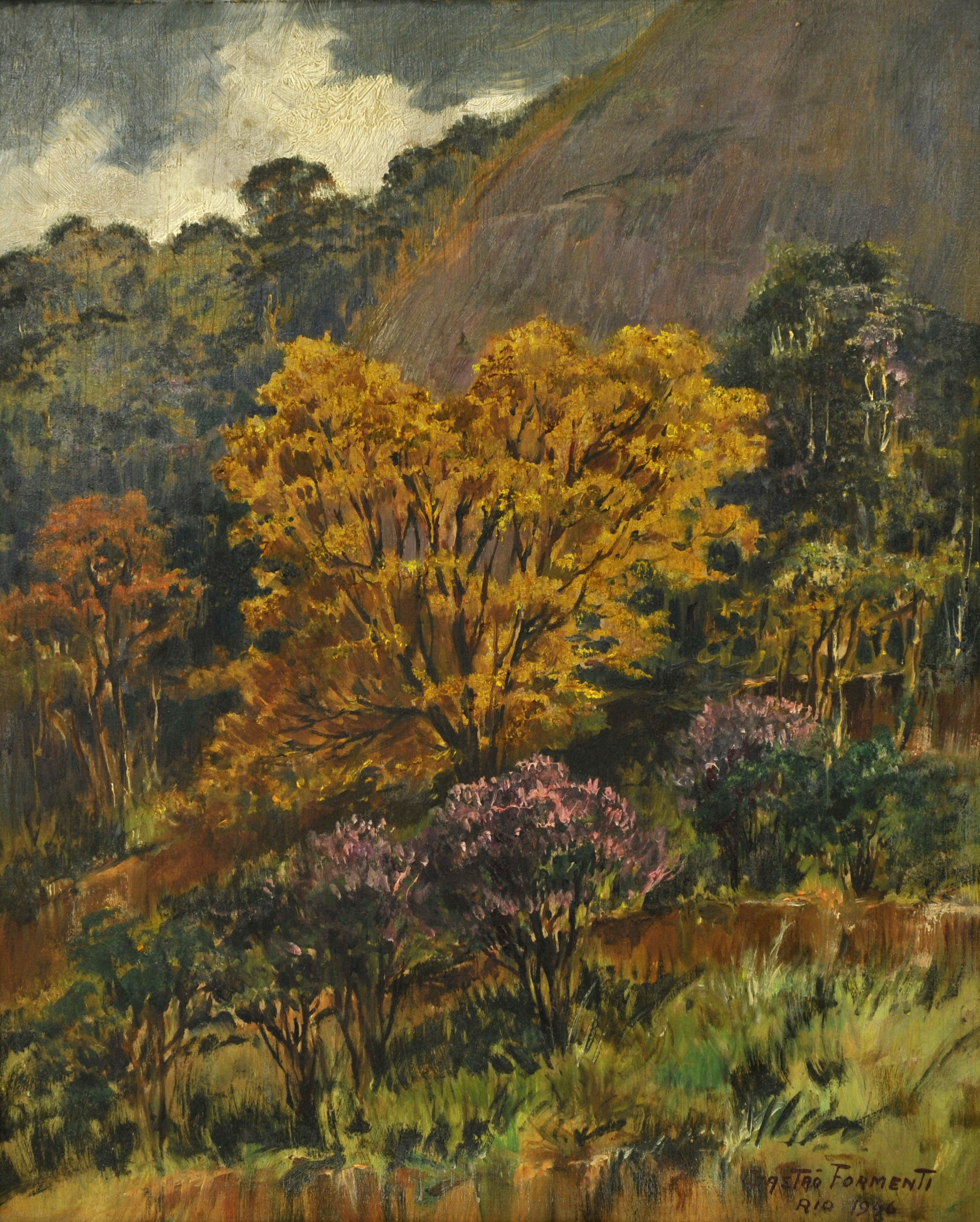 Gastão Formenti (Guaratinguetá, São Paulo, 1894 – Rio de Janeiro, Rio de Janeiro, 1974). Pintor, desenhista, mosaicista, vitralista, cantor e intérprete. Inicia a formação artística estudando desenho e pintura com Pietro Strina (1874-1927), em São Paulo, por volta de 1910. Muda-se com a família para o Rio de Janeiro, onde trabalha no ateliê de seu pai, o artista italiano César Alexandre Formenti (1874-1944), contribuindo na execução de mosaicos e vitrais. Entre os trabalhos realizados com pai, está o piso do Palácio Tiradentes, no Rio de Janeiro. Em 1913, participa pela primeira vez da Exposição Geral de Belas Artes, organizada pela Escola Nacional de Belas Artes, no Rio de Janeiro, recebendo menção honrosa. Em edições posteriores da exposição, é premiado com medalha de bronze em 1921 e medalha de prata em 1924. Participa, também, de edições do Salão Paulista de Belas Artes, obtendo a medalha de prata na edição de 1940. Torna-se cantor popular em 1916, gravando mais de 400 músicas.  Em 1970, faz uma gravação com sua história de vida para o Museu da Imagem e do Som de São Paulo (MIS/SP),  integrando o projeto “Depoimentos para a Posteridade”. Possui obras no acervo do Museu Nacional de Belas Artes, no Rio de Janeiro.