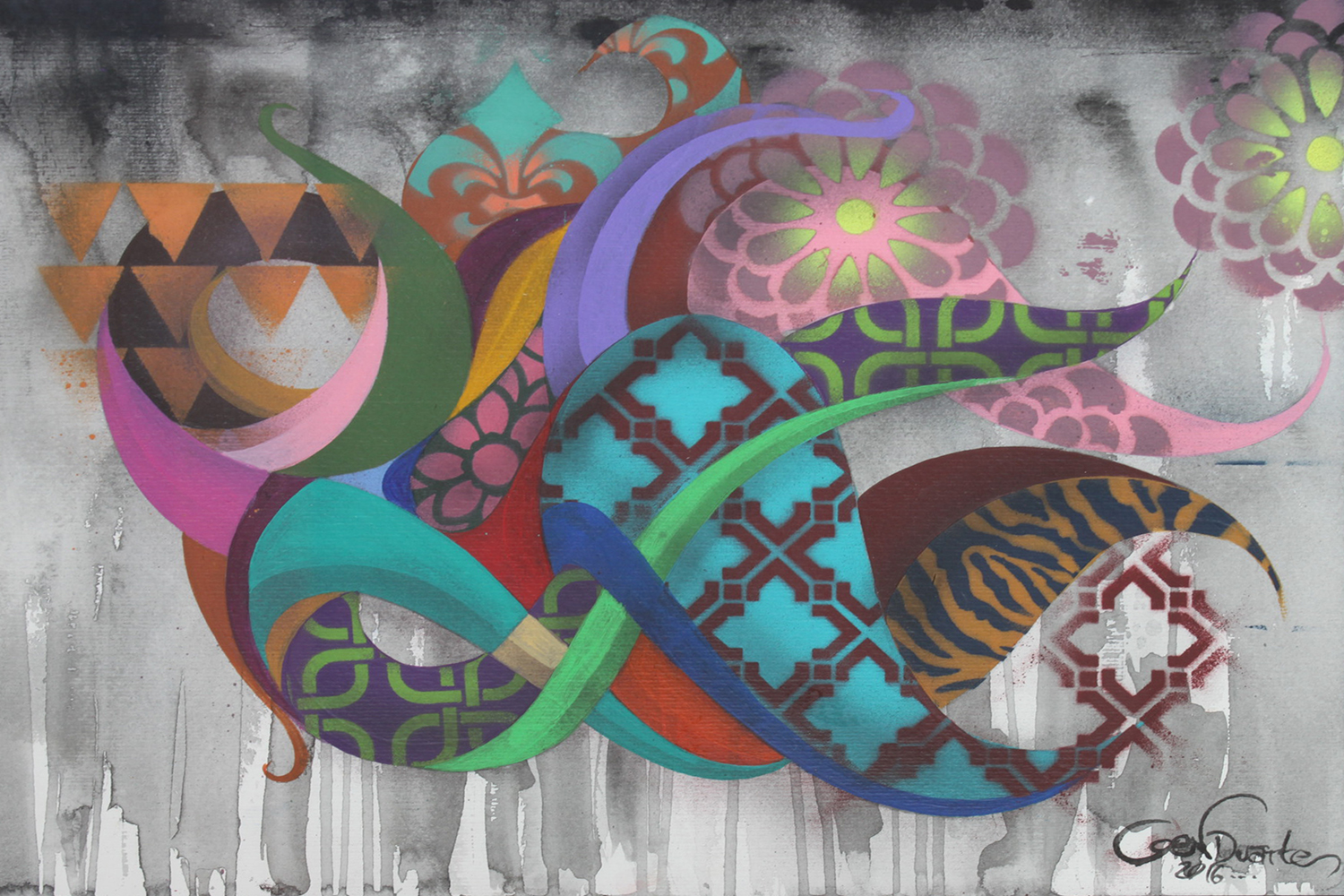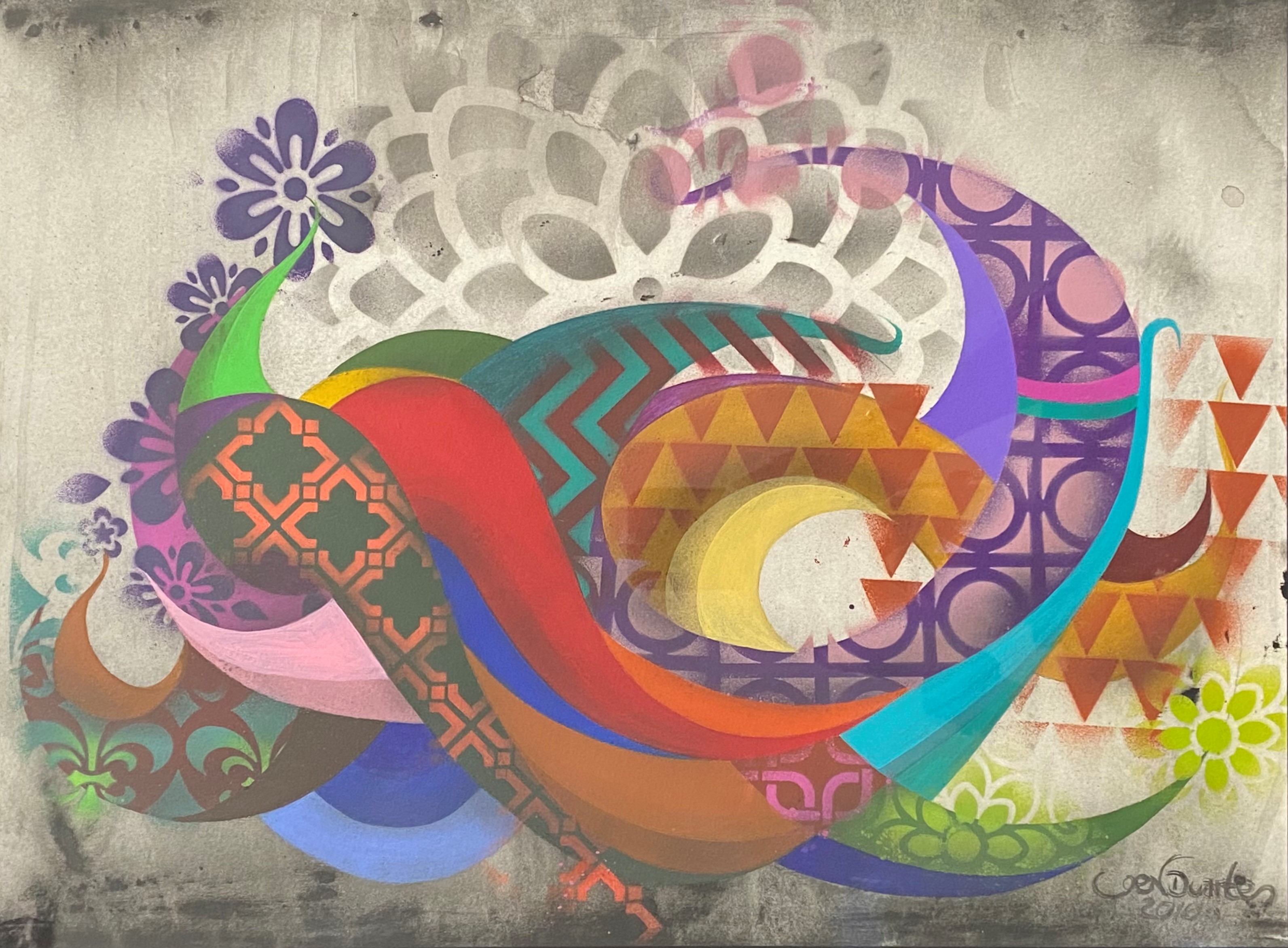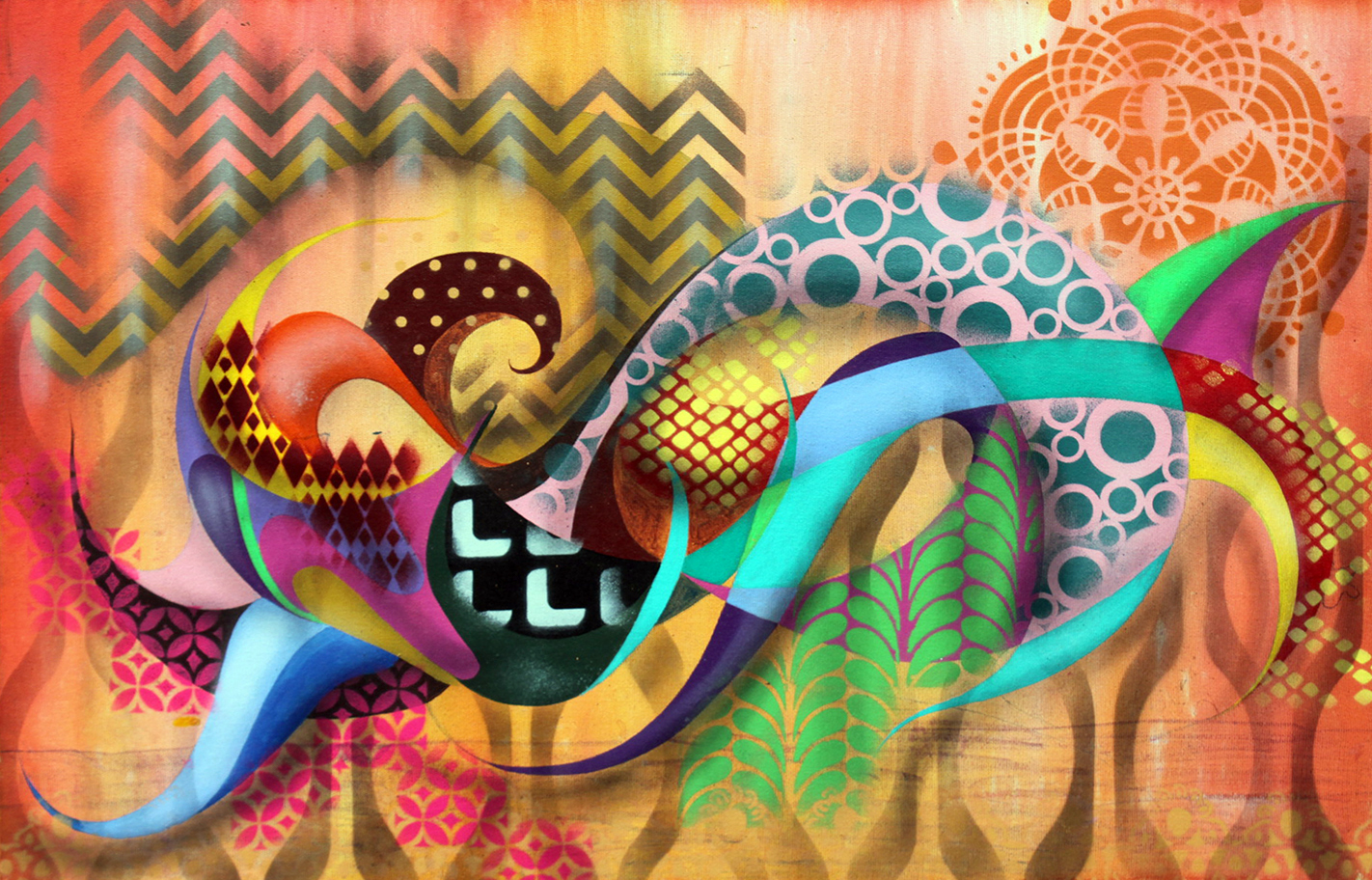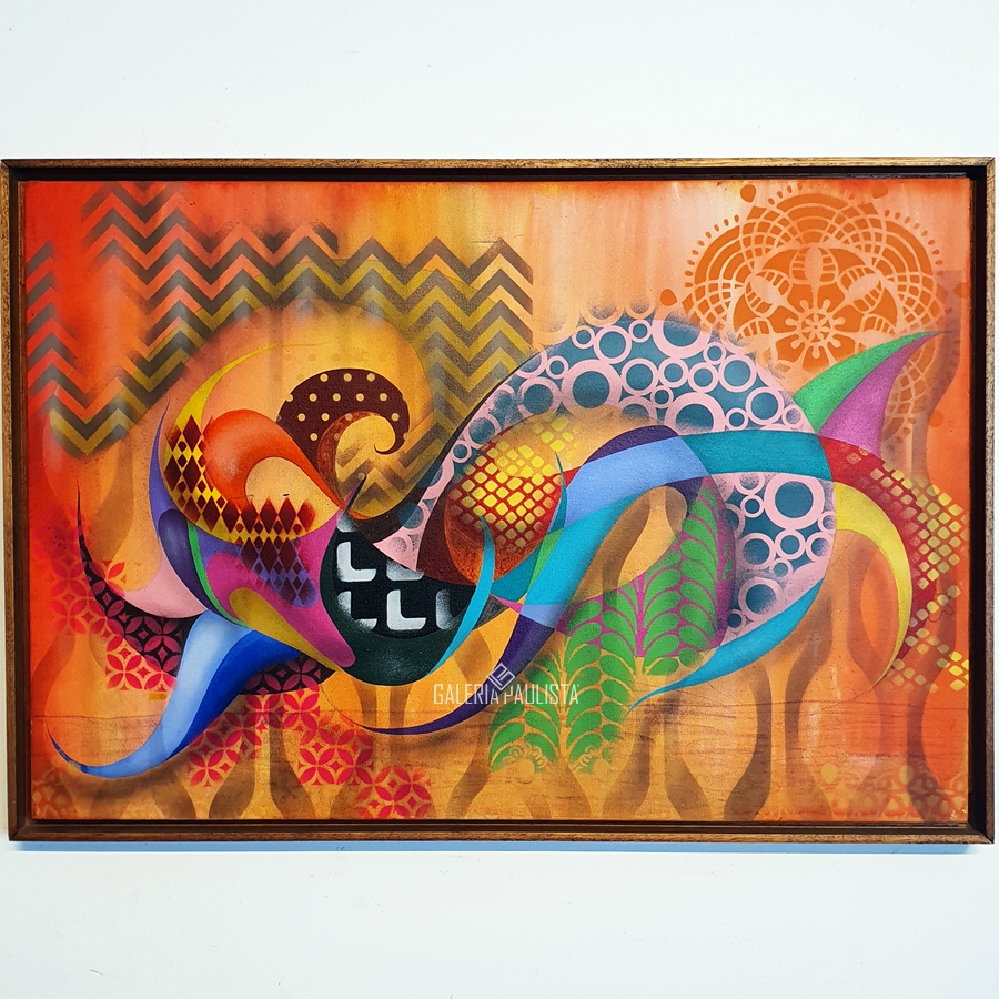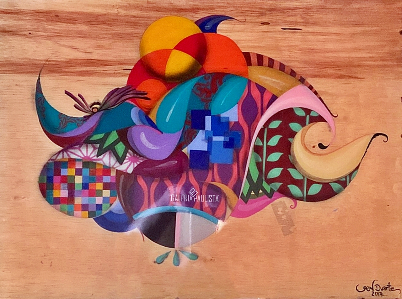 Seu trabalho teve início no grafite e com o tempo migrou para as artes plásticas. Esse diálogo entre o ateliê e a cidade é recorrente na sua produção. Com uma pesquisa artística baseada no embate entre a geometria e o orgânico, suas imagens são carregadas de padrões, ritmo, dinamismo conseguidos por meio de estêncil e percursos visuais, dentro de um colorismo vibrante que se apresenta em camadas,...