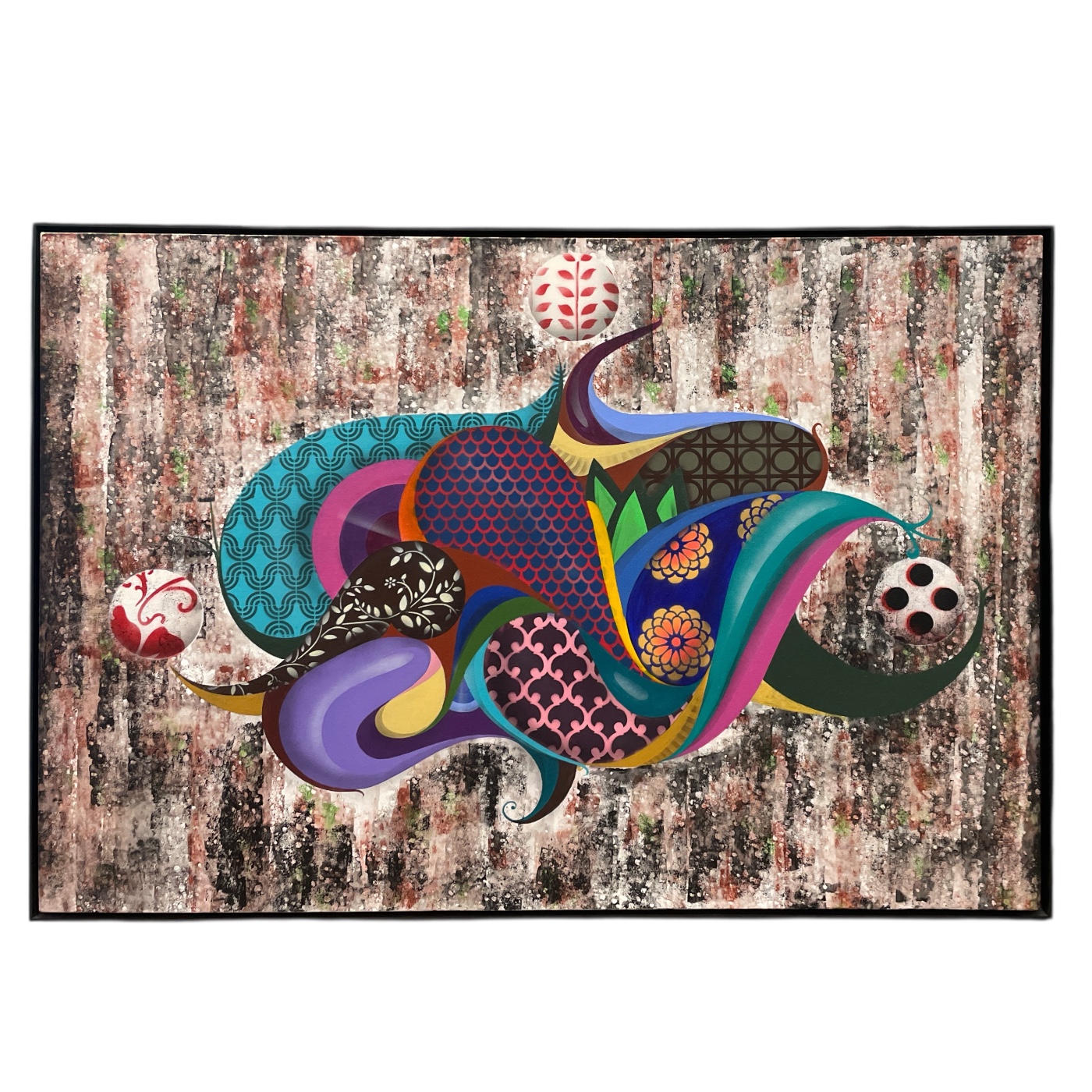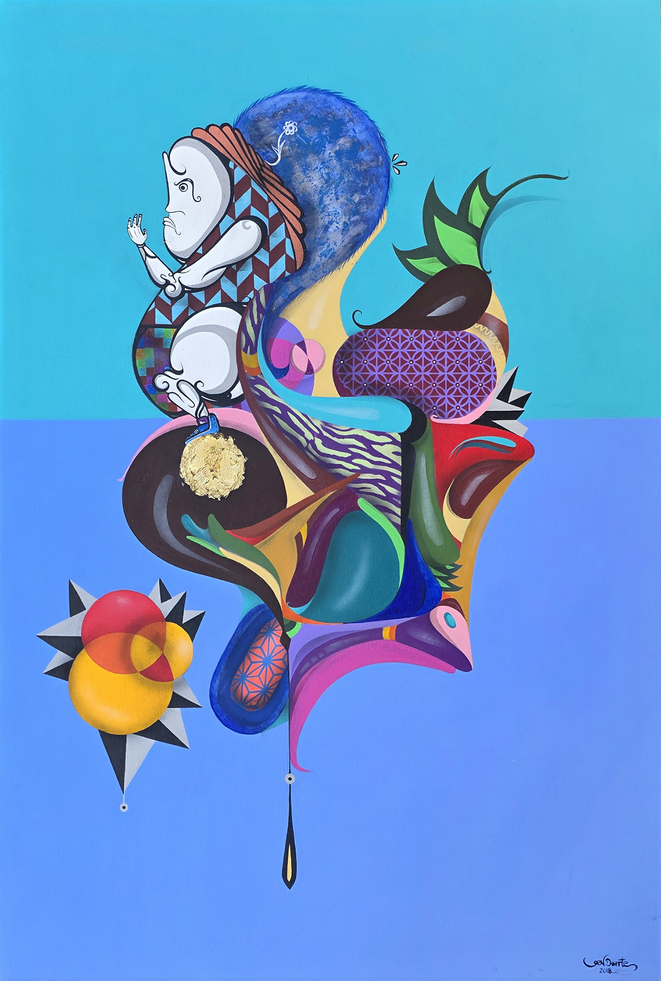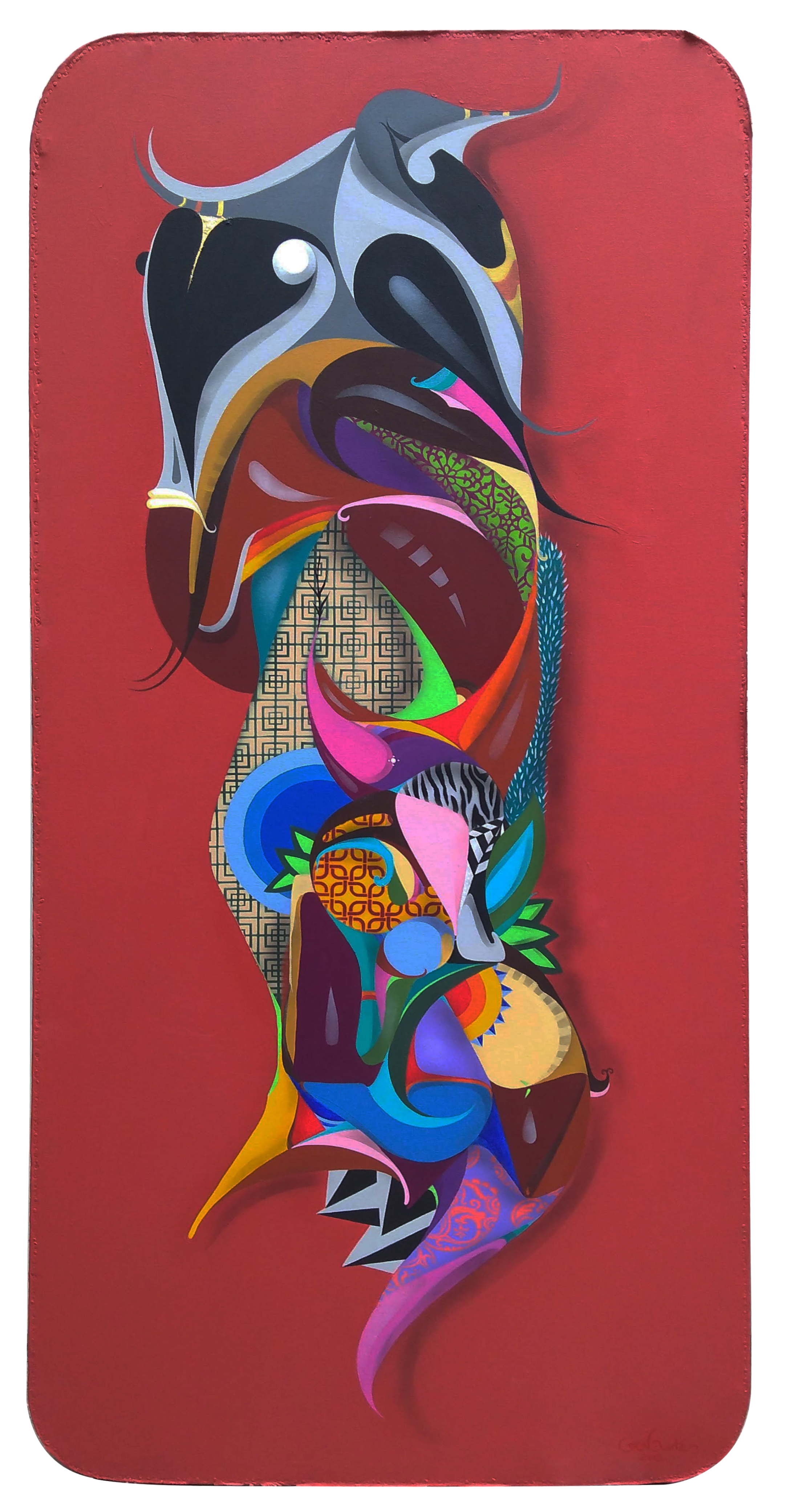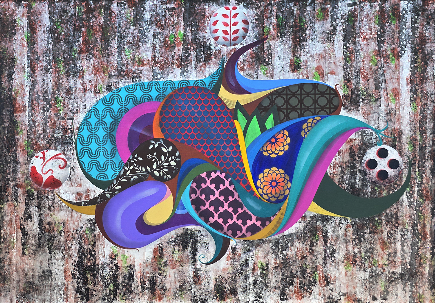 Seu trabalho teve início no grafite e com o tempo migrou para as artes plásticas. Esse diálogo entre o ateliê e a cidade é recorrente na sua produção. Com uma pesquisa artística baseada no embate entre a geometria e o orgânico, suas imagens são carregadas de padrões, ritmo, dinamismo conseguidos por meio de estêncil e percursos visuais, dentro de um colorismo vibrante que se apresenta em camadas,...