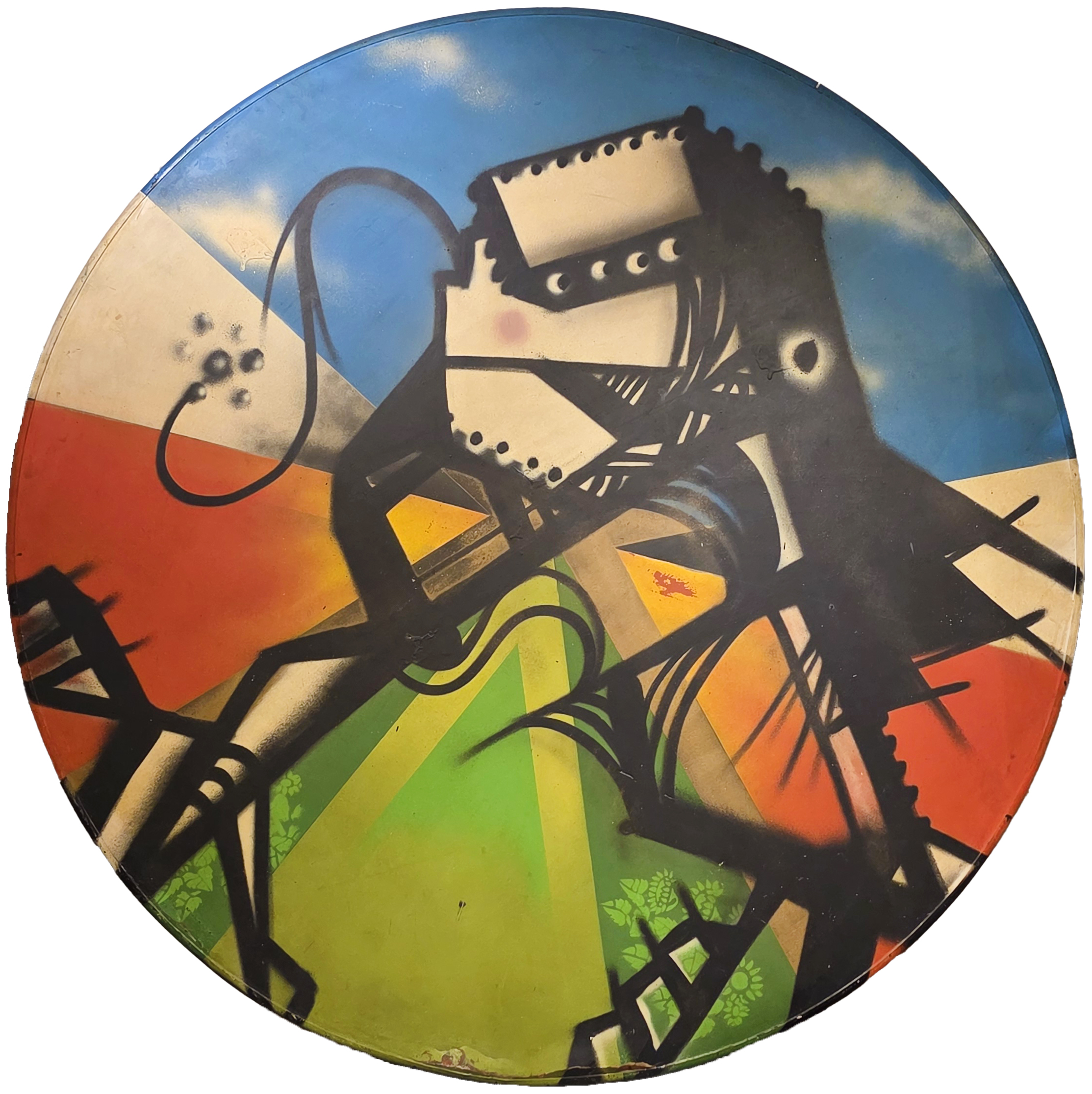 Gen Duarte - Robô. Spray sobre aglomerado de madeira, 122x122 cm, 2007, A.V. Com moldura