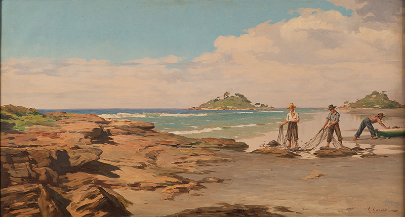 Mais tarde, passou ele a estudar com uma conhecida pintora local, cujos cuidados deixava pouco depois, levado pelo seu temperamento de liberdade artística e pelas suas manifestações naturais apuradas, que exigiam um mestre superior, de mais amplos recursos e que melhor compreendesse a sua natureza, abrindo campo à sua ânsia febril de avançar, através de uma interpretação própria e de seu modo particular de sentir. Foi então que ele começou a freqüentar o atelier de Benedicto Calixto, o veterano mestre, de cujos ensinamentos resultaram os seus conhecimentos atuais, em grande parte, frutos também da persistência e de sua grande vocação.