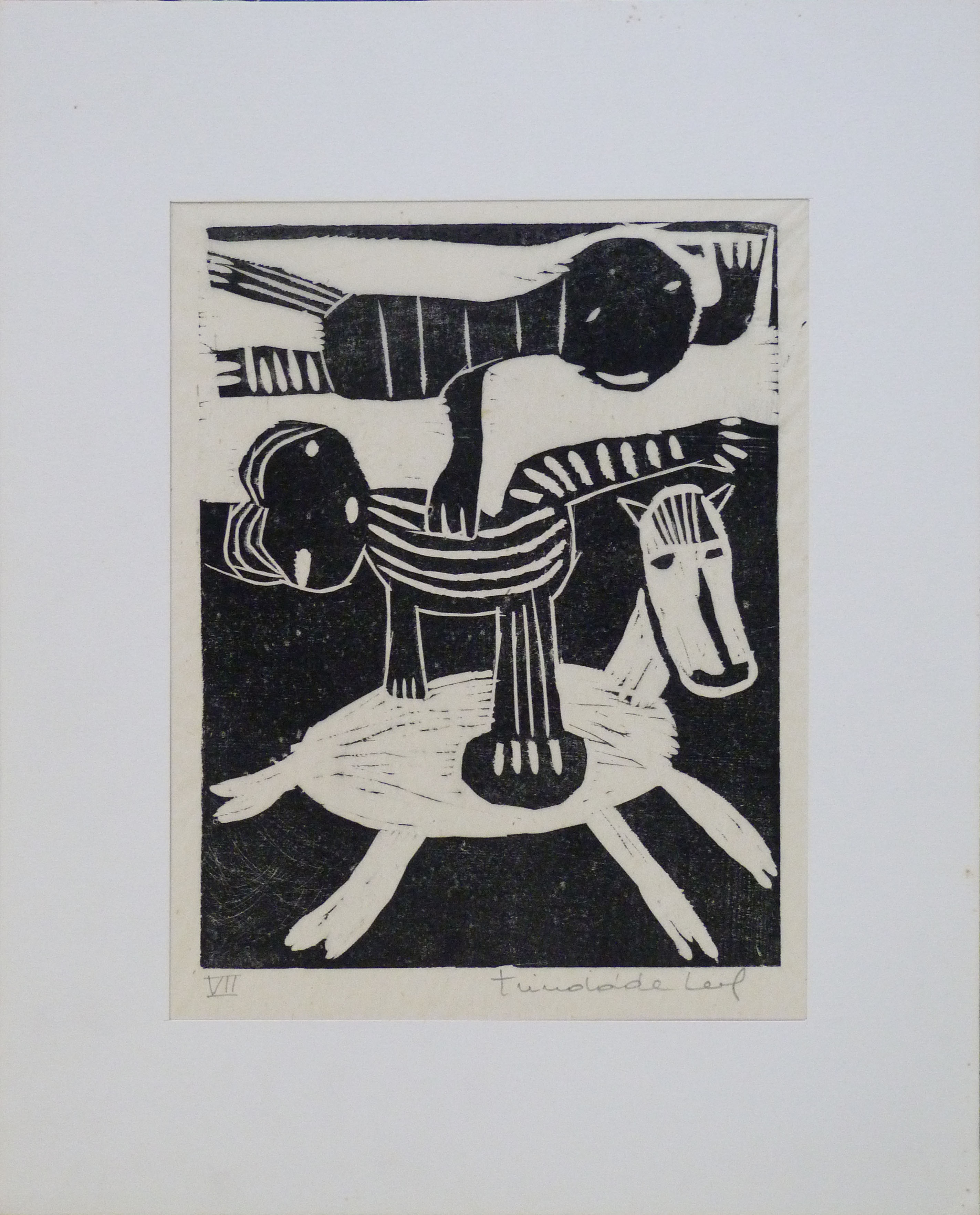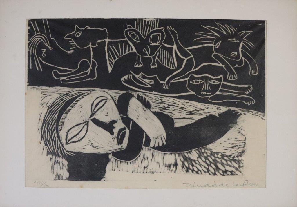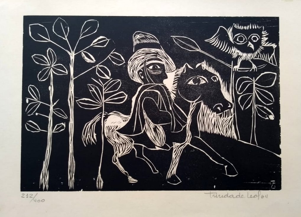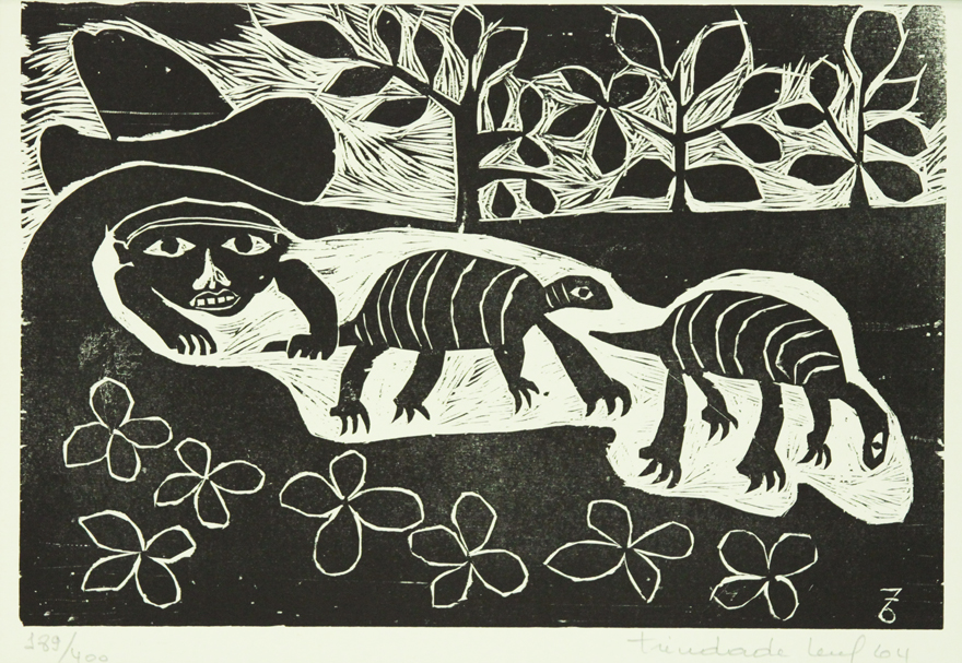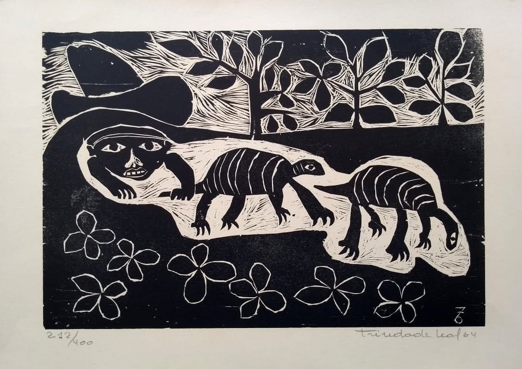 Geraldo Trindade Leal (Santana do Livramento RS 1927 - Porto Alegre RS 2013). Gravador, desenhista, ilustrador e pintor. Estuda no curso livre de desenho do Instituto de Belas Artes, em Porto Alegre. Em 1953 vai para a Bahia, onde pesquisa a arte africana e desenvolve estudos sobre Pablo Picasso e o cubismo. Volta, em 1954, para Porto Alegre e inicia-se em xilogravura no ateliê de Francisco Stockinger. Convive com artistas da Sociedade Amigos da Arte, como Rubens Cabral, Joaquim Fonseca, Zorávia Bettiol e outros. Na segunda metade dos anos 50, realiza ilustrações para contos de Edgar Allan Poe e lança um álbum de xilogravuras intitulado O Lobisome