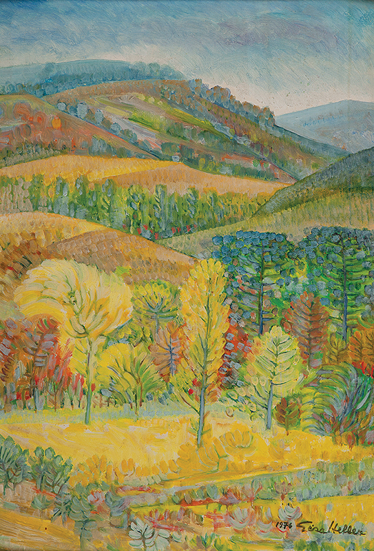 Geza Heller (Hungria 1902 - Passa Quatro MG 1992). Pintor, arquiteto, gravador. Estuda arquitetura em Budapeste, em 1921. A partir de 1933 passa a viver no Rio de Janeiro, onde estuda com Guignard (1896 - 1962), entre 1942 e 1943. Neste mesmo ano, funda o Grupo Guignard, ao lado de Elisa Byington e Iberê Camargo (1914 - 1994). Em 1949, realiza sua primeira exposição individual no Instituto de Arquitetos do Brasil - IAB/RJ. Na década de 1960, publica um álbum de gravuras com paisagens do Rio de Janeiro.