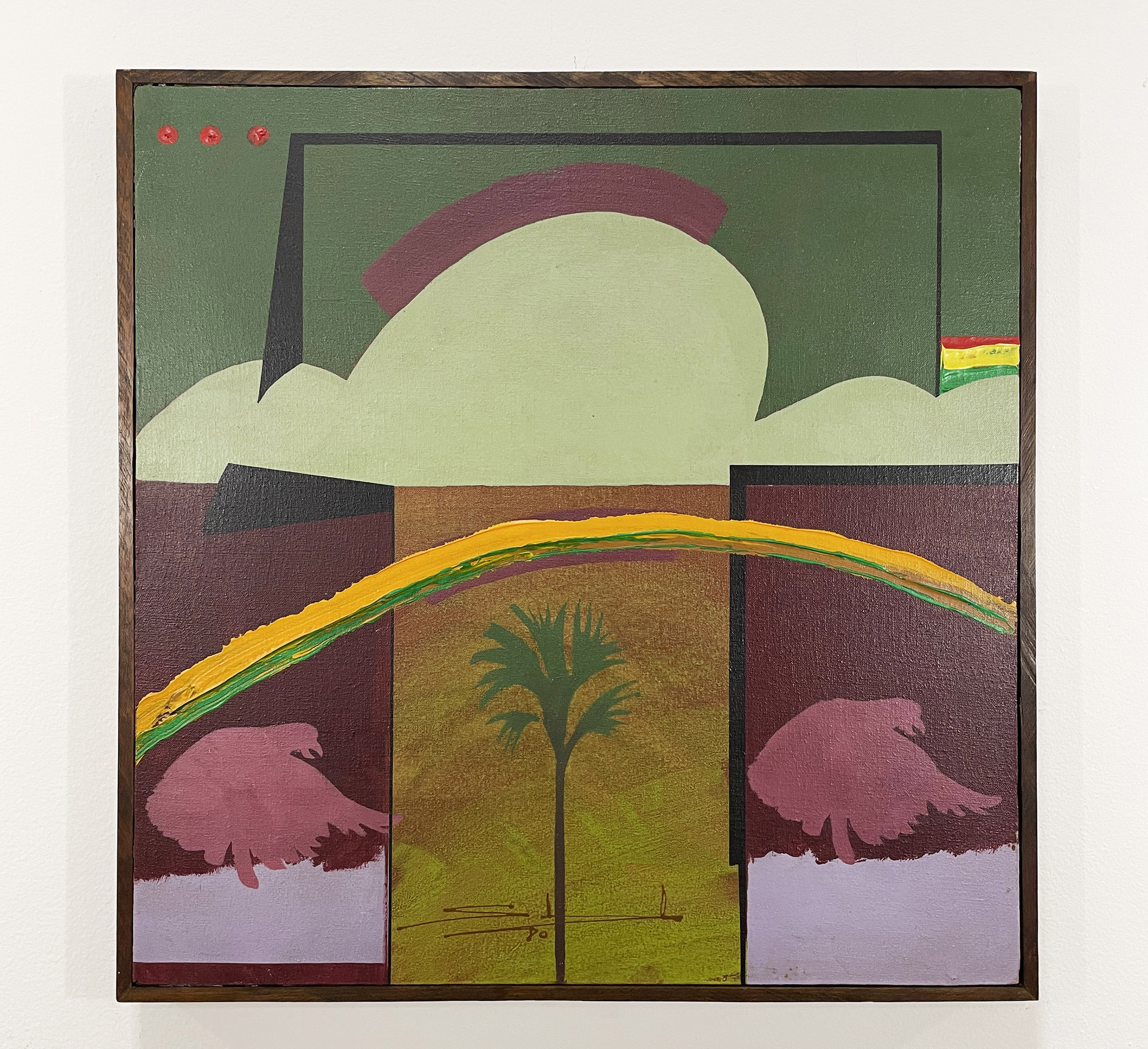 Gilberto Salvador - A viagem verde do papa-arco-íris. Acrílica sobre tela, 70x70 cm, 1980, A.C.I. e V. Com moldura