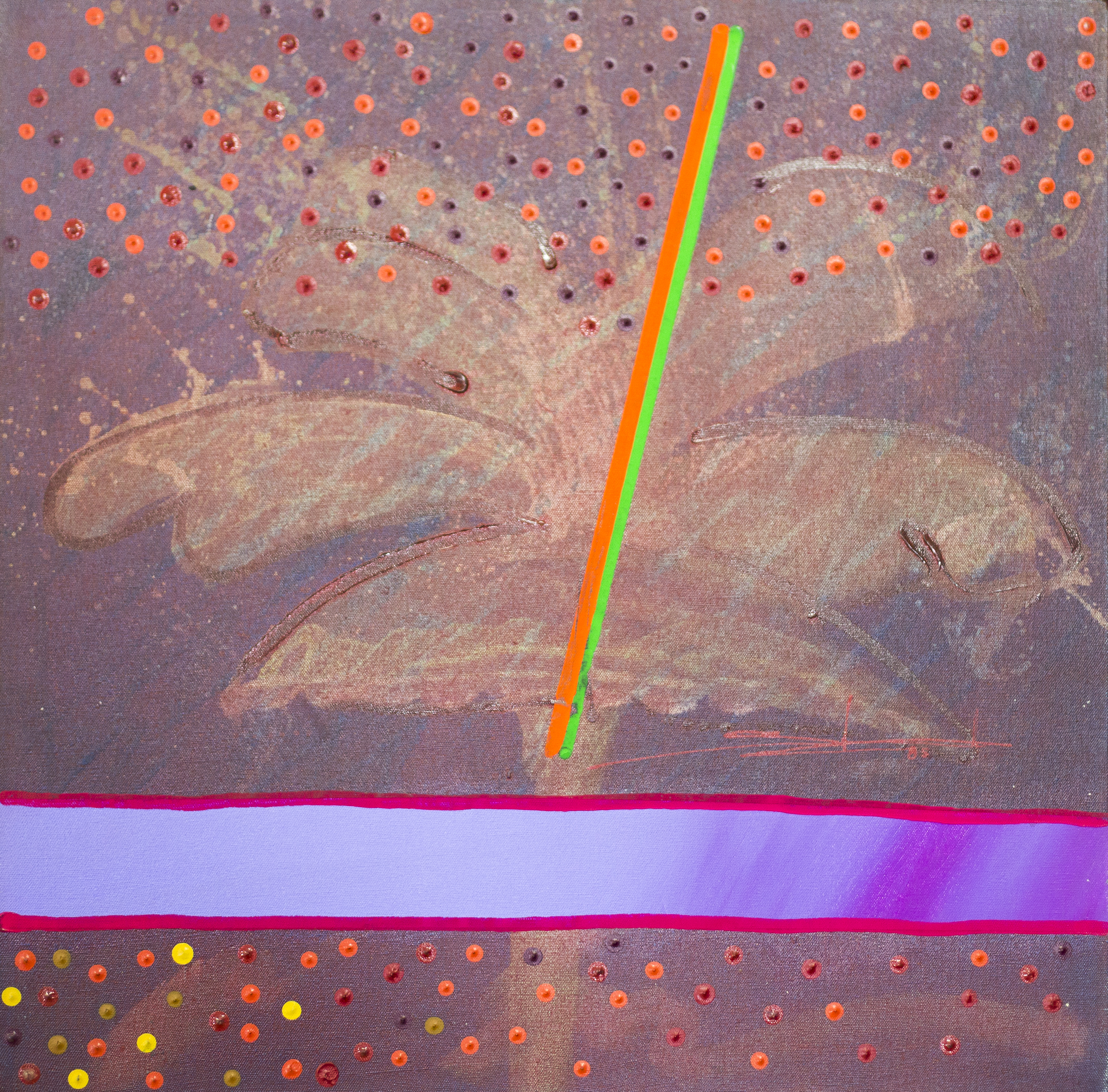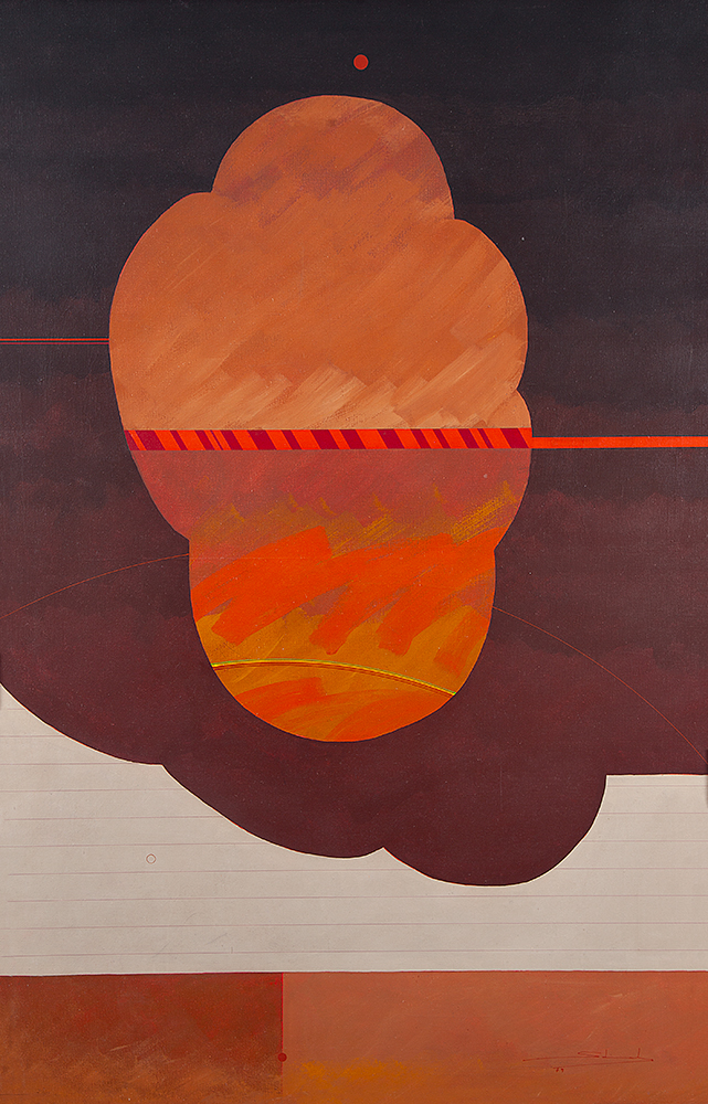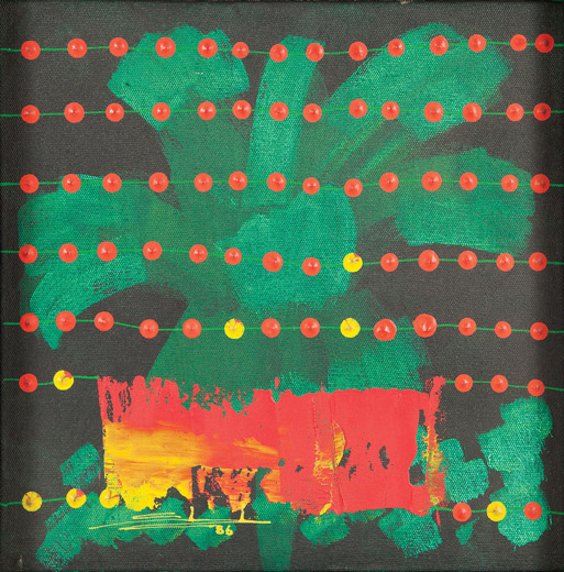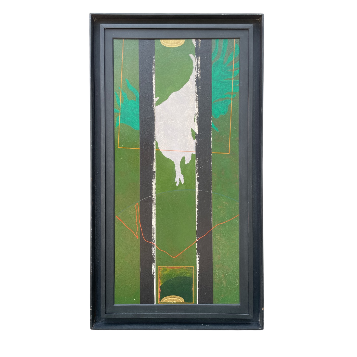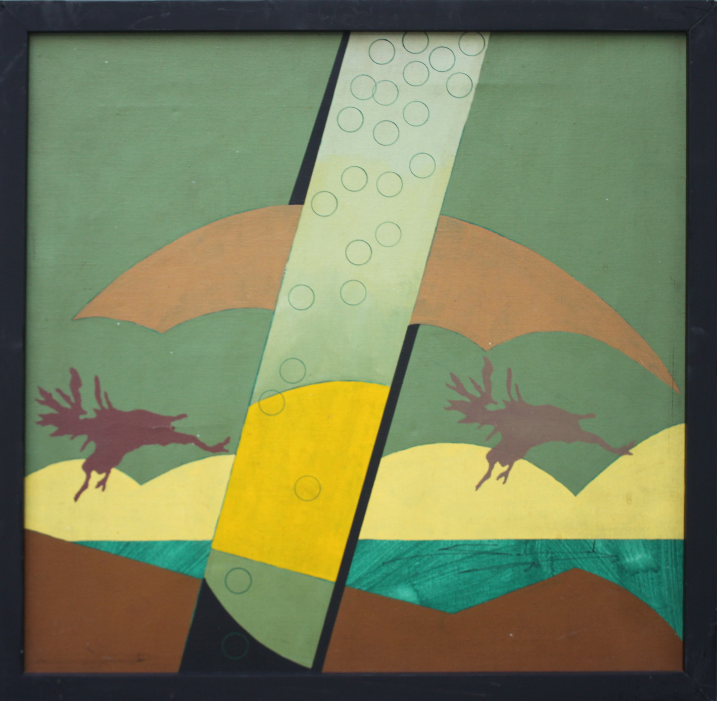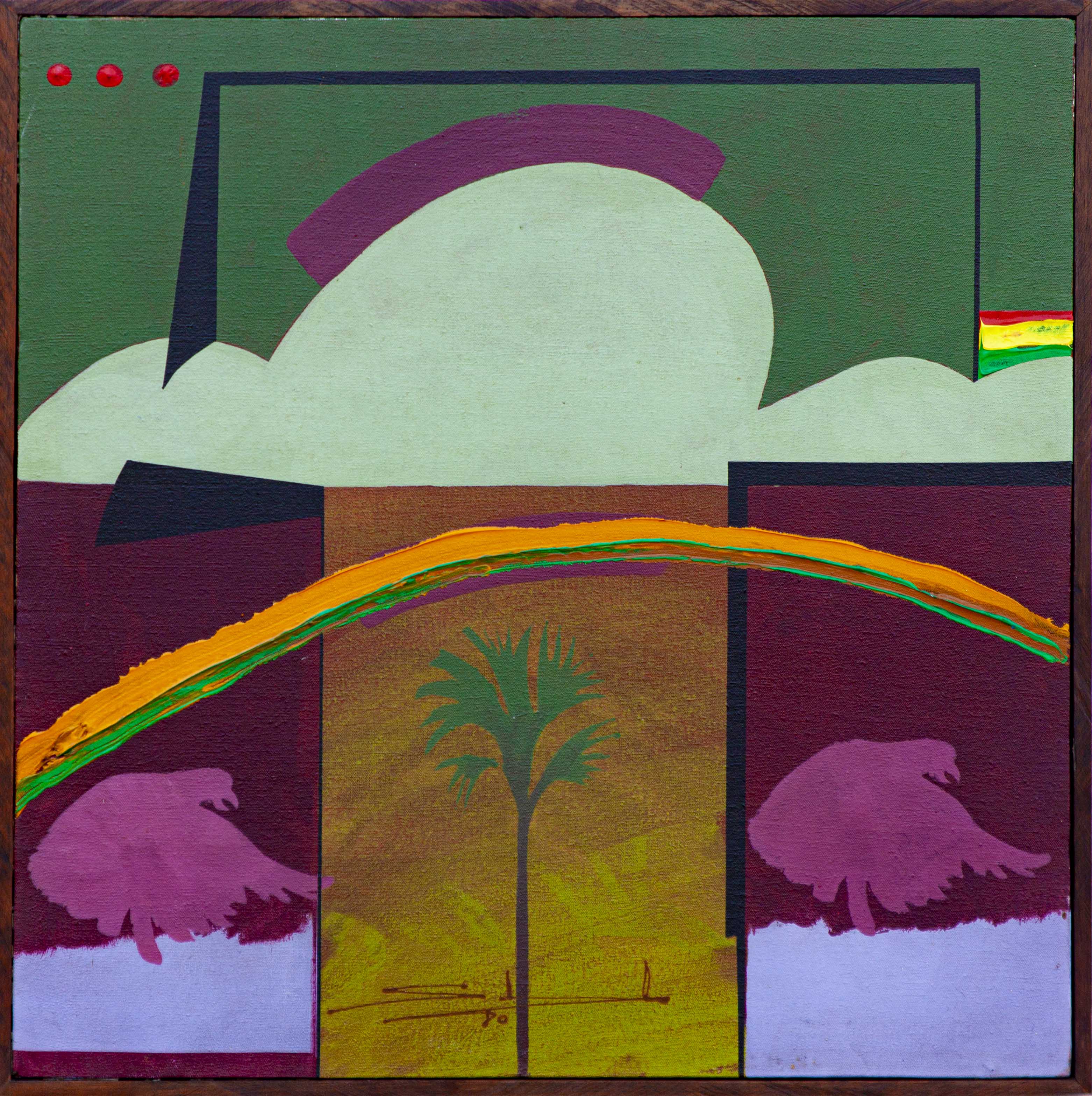 Gilberto Salvador - A viagem verde do papa-arco-íris. Acrílica sobre tela, 70x70 cm, 1980, A.C.I. e V. Com moldura