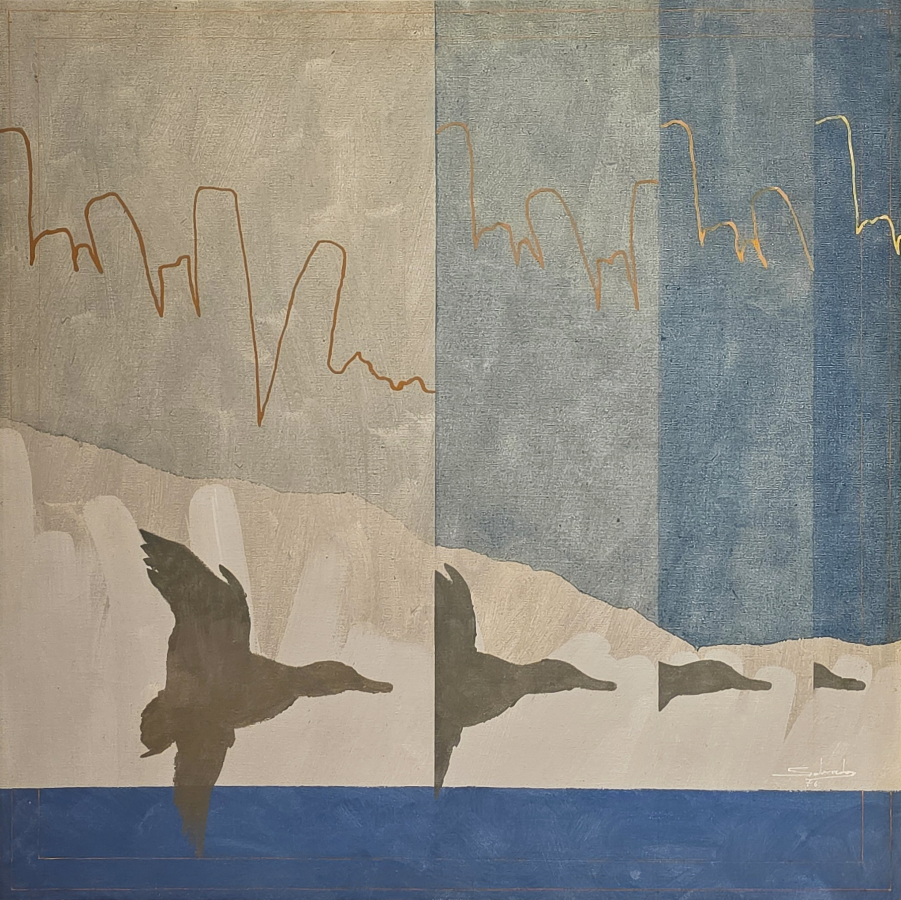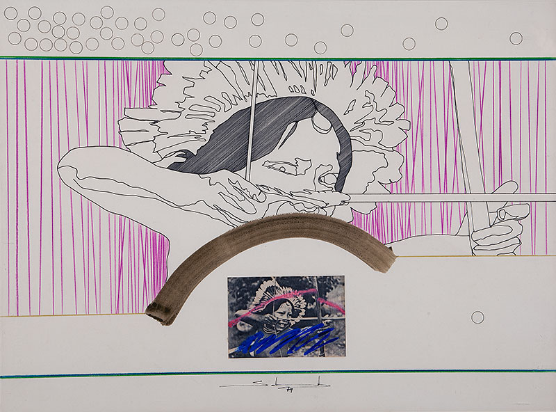 Gilberto Salvador - O bicudão. Óleo, colagem e pastel sobre tela colada em eucatex, 80x80 cm, 1977, A.C.I.D. e V. Com moldura