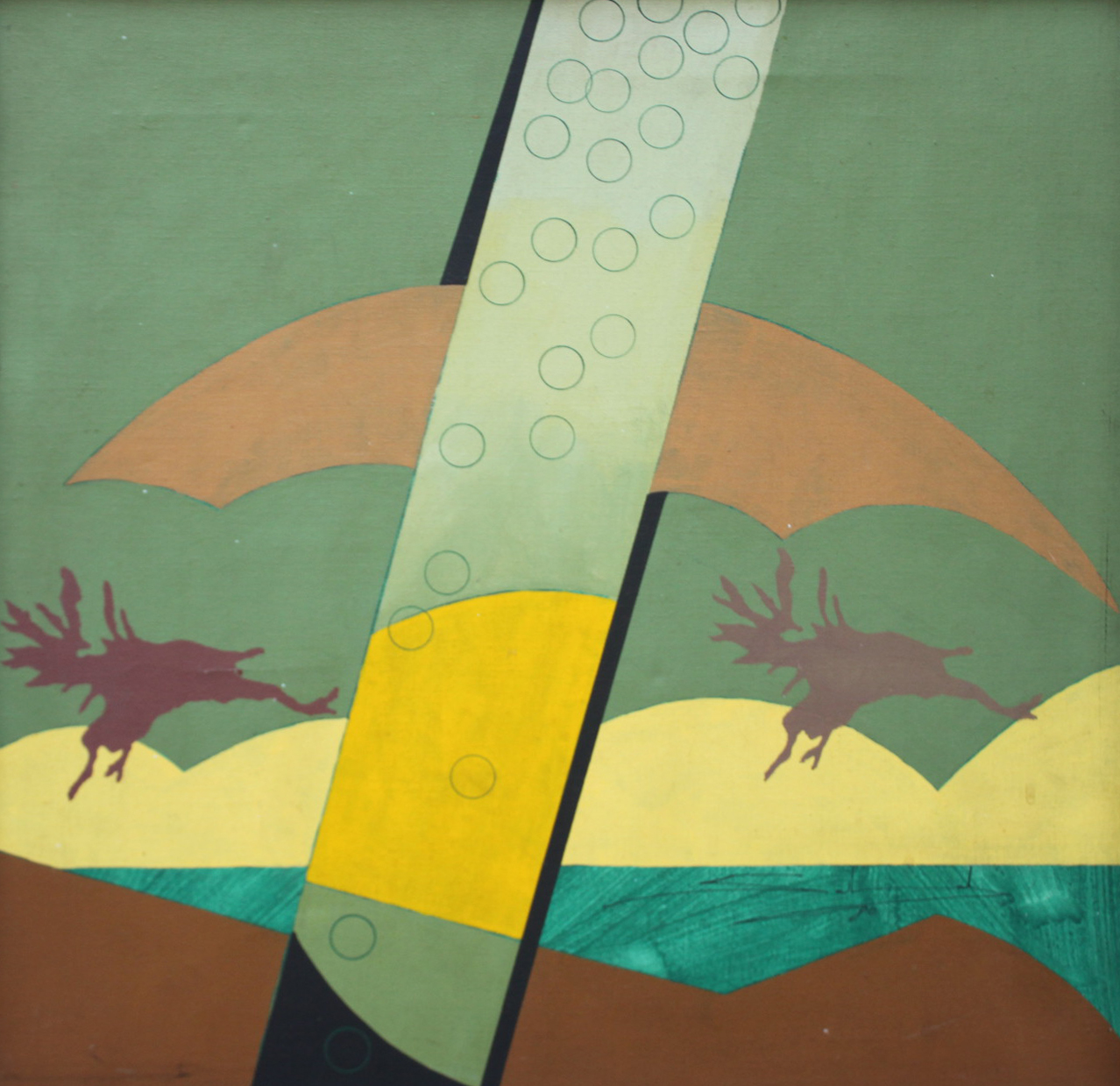 Gilberto Salvador - A viagem verde do papa-arco-íris. Acrílica sobre tela, 70x70 cm, 1980, A.C.I. e V. Com moldura