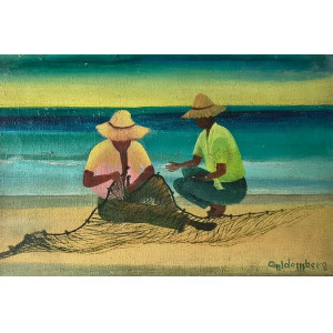Gildemberg óleo sobre eucatex 15 x 20cm "Pescadores" ass. CID
