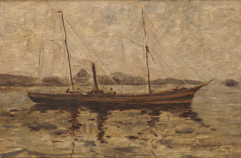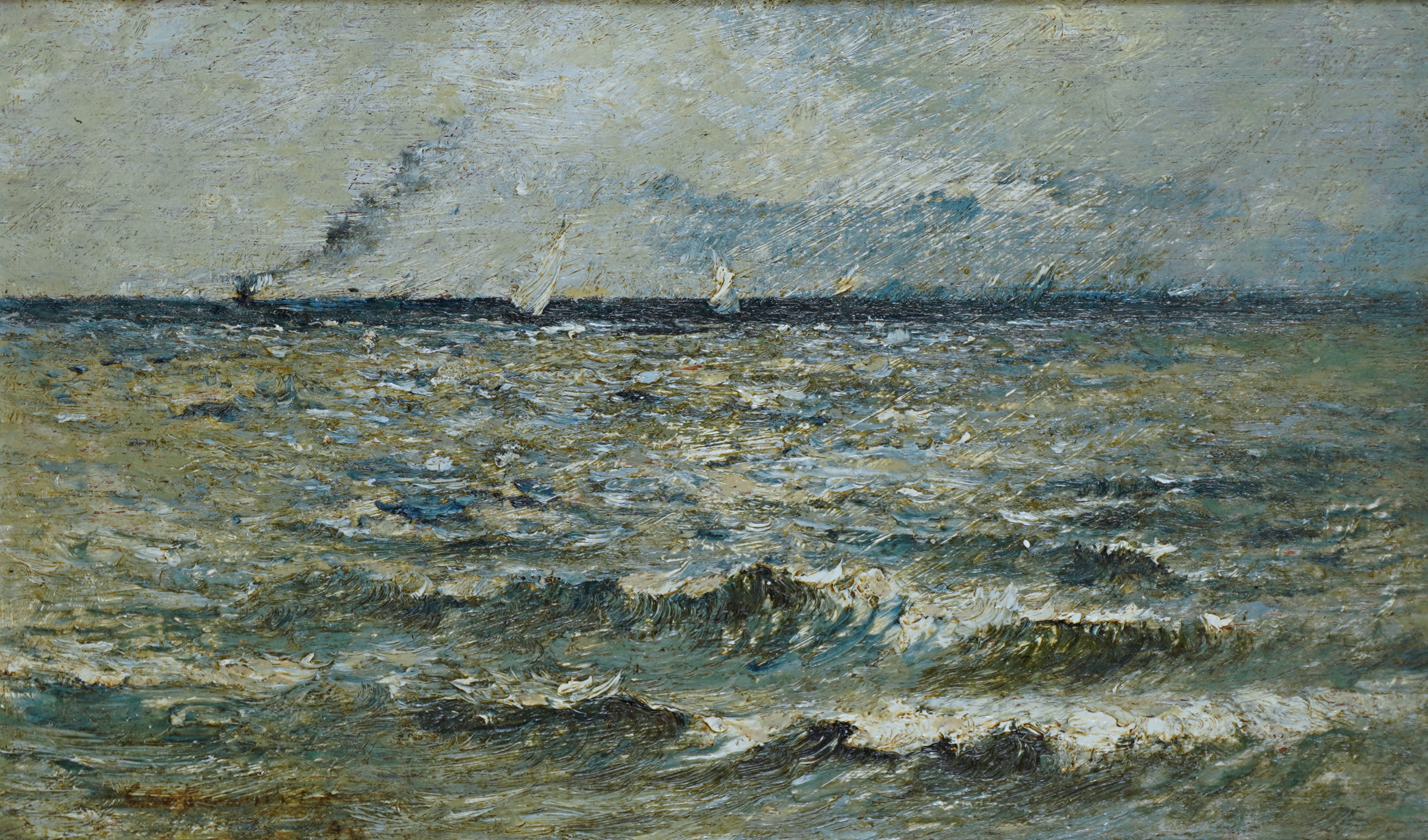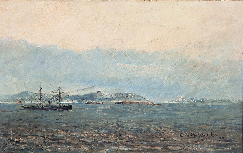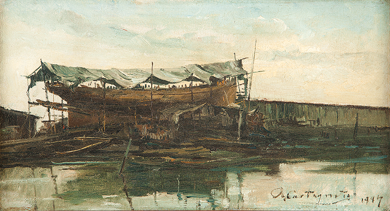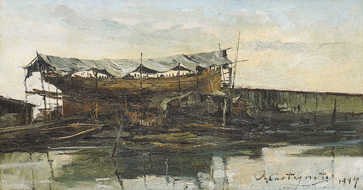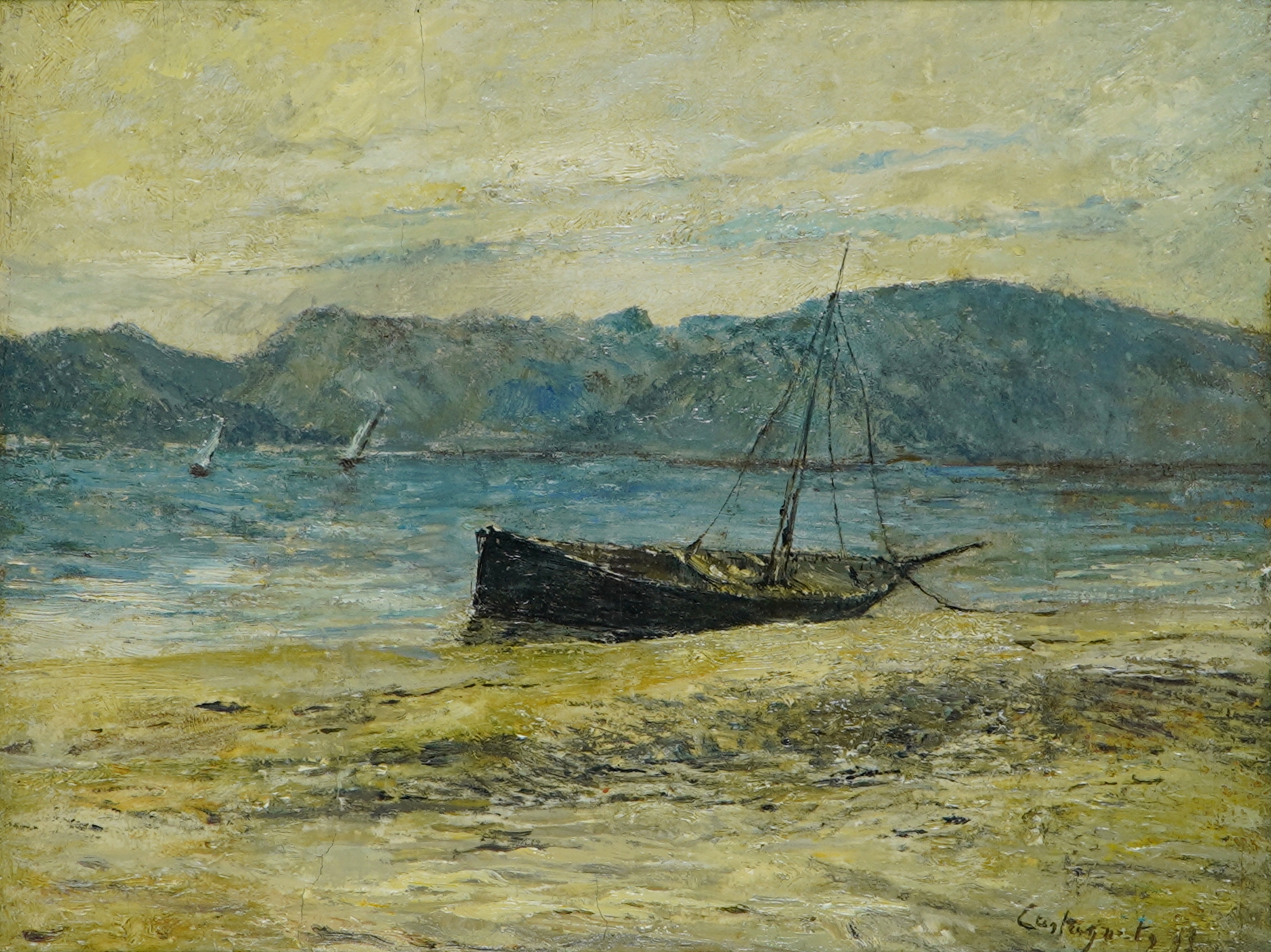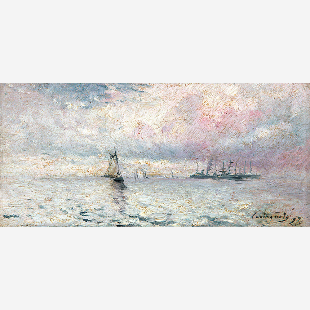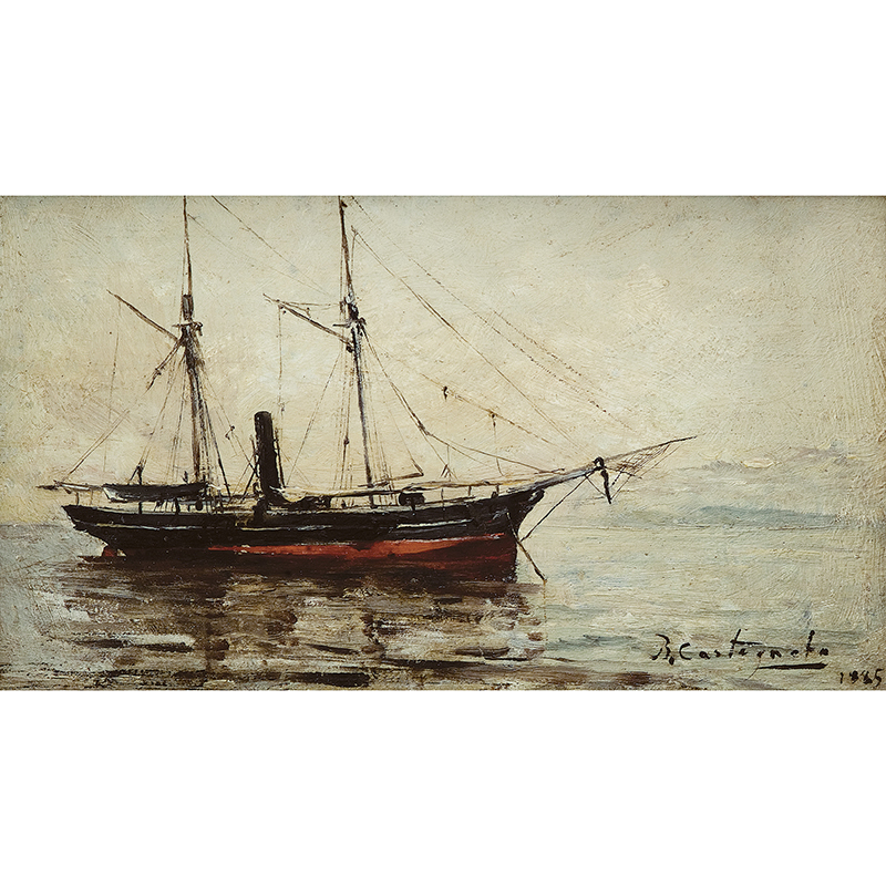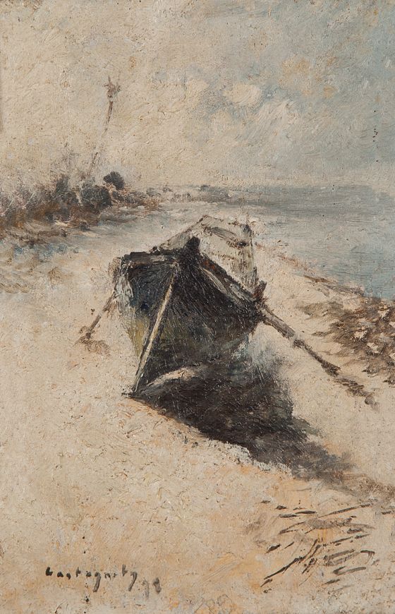 Giovanni Castagneto - Óleo sobre madeira - Medidas 16,7 x 30 cm Assinado no canto inferior direito