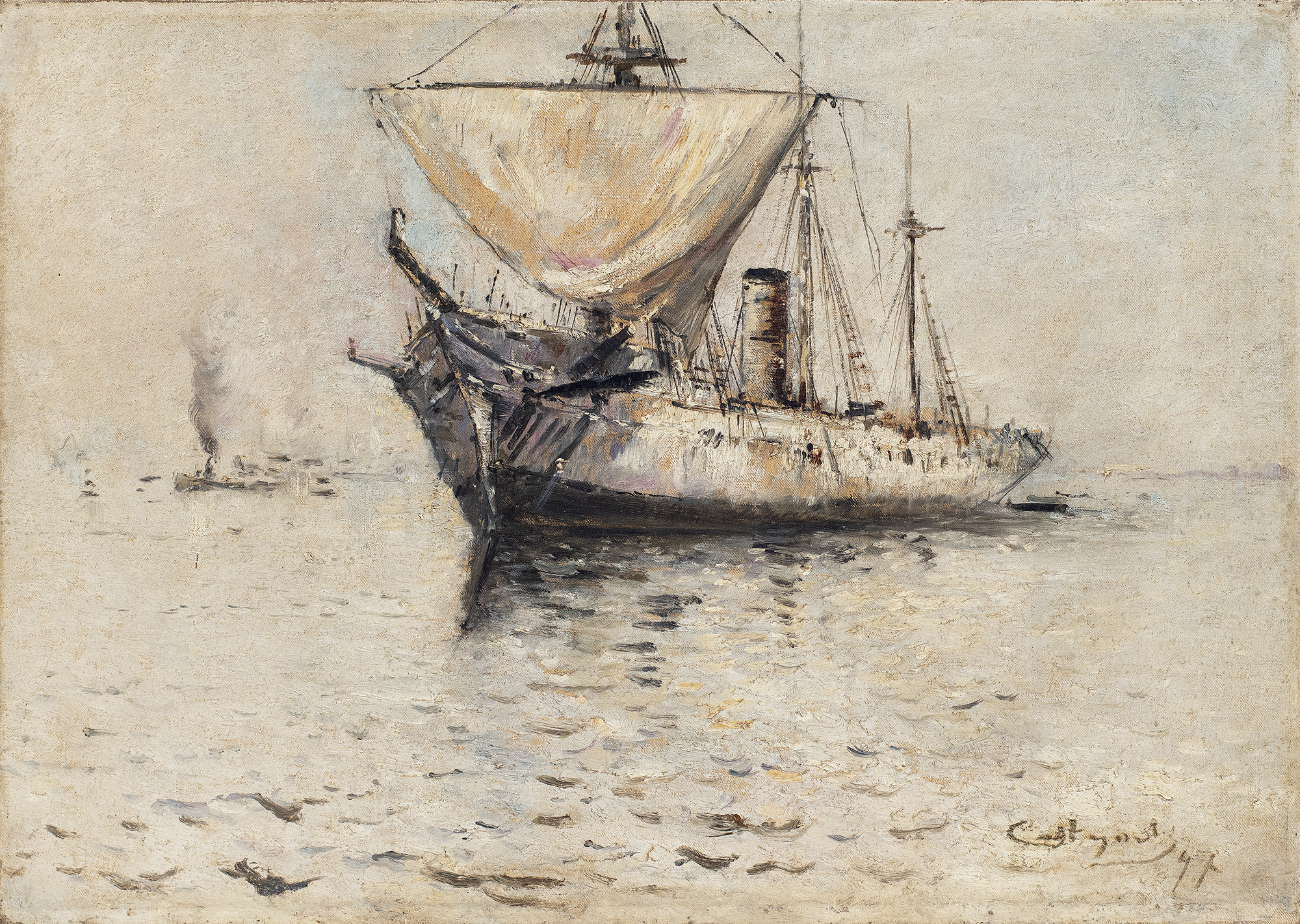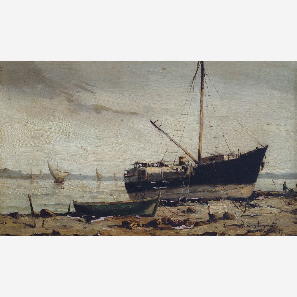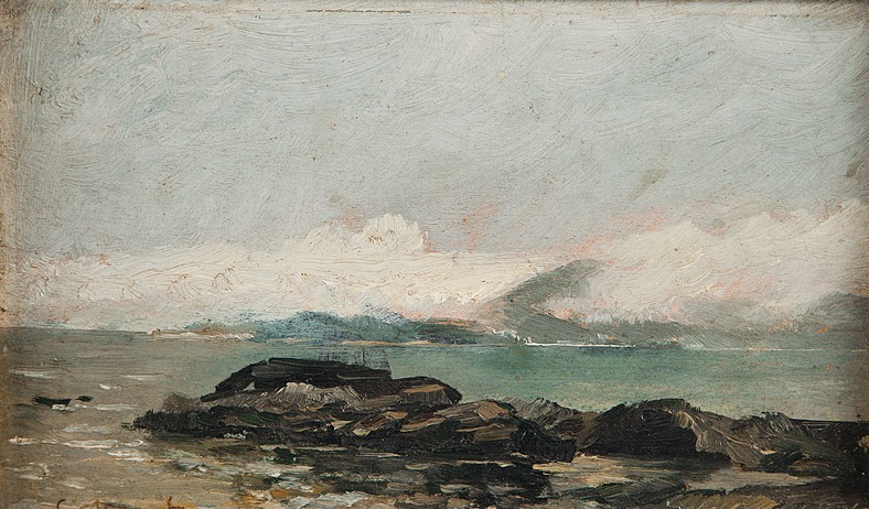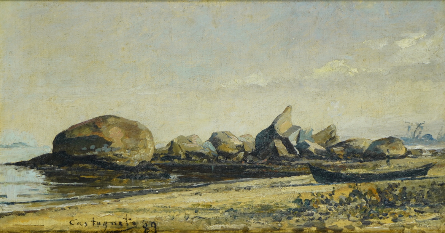 Giovanni Castagneto - Óleo sobre madeira - Medidas 16,7 x 30 cm Assinado no canto inferior direito