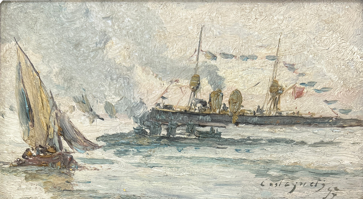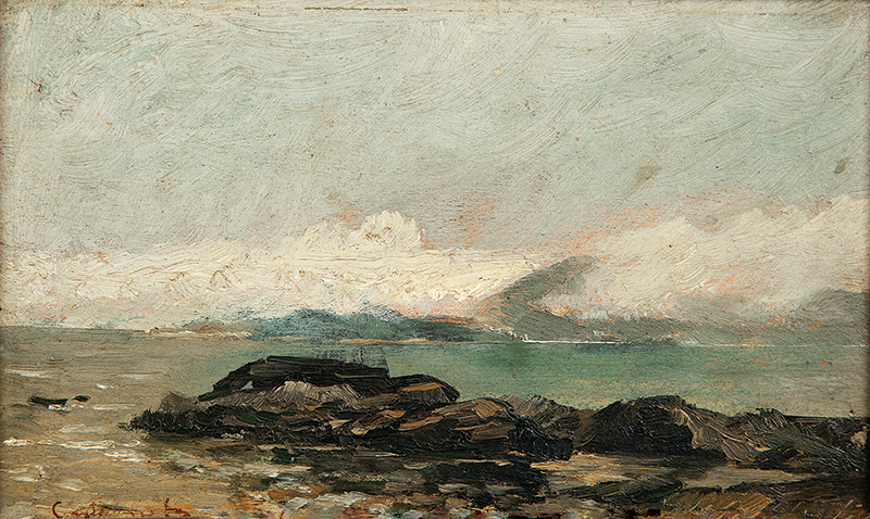 Giovanni Castagneto - Óleo sobre madeira - Medidas 16,7 x 30 cm Assinado no canto inferior direito