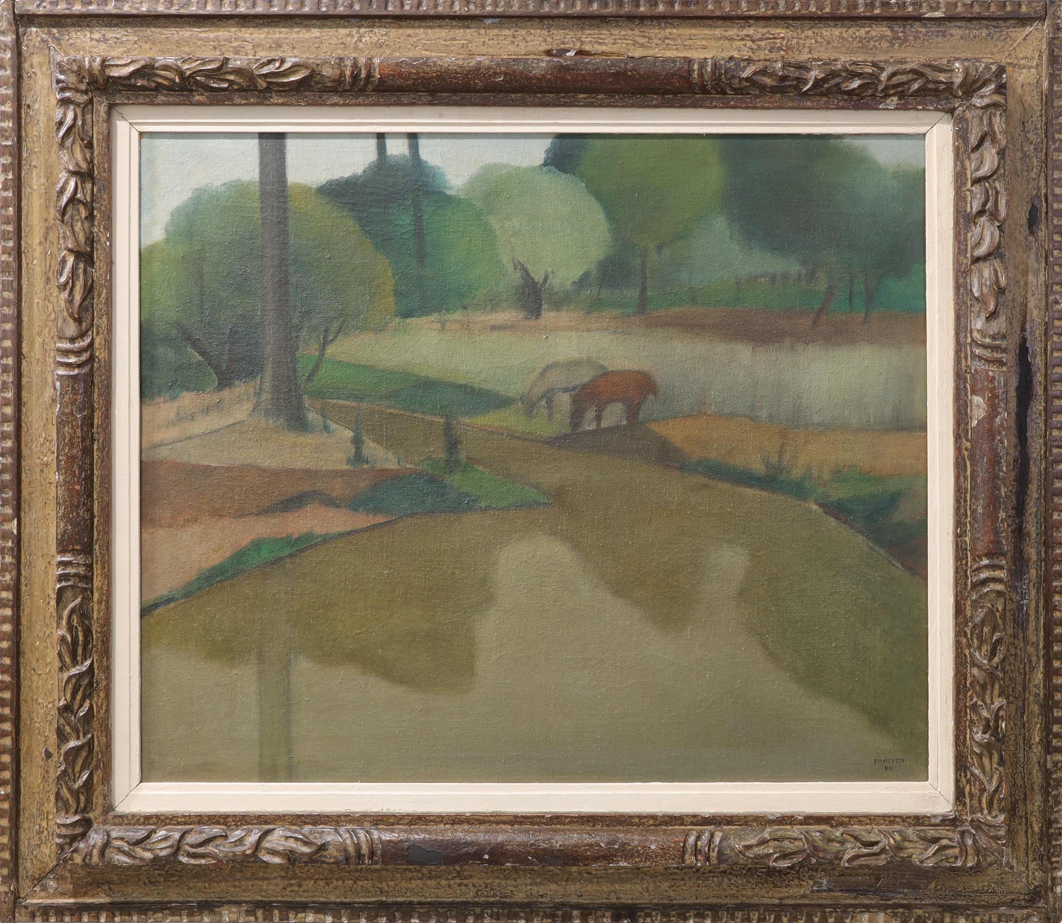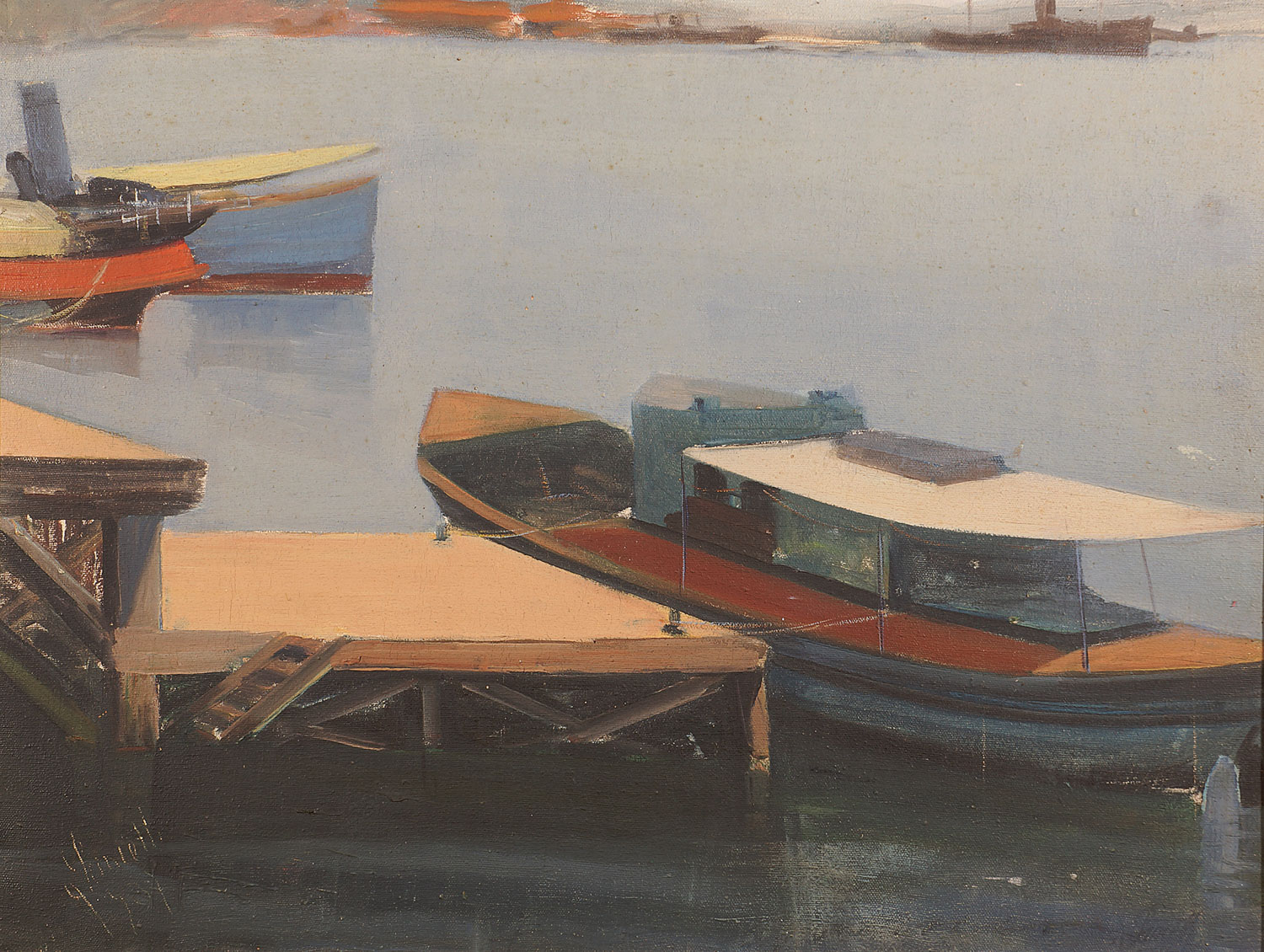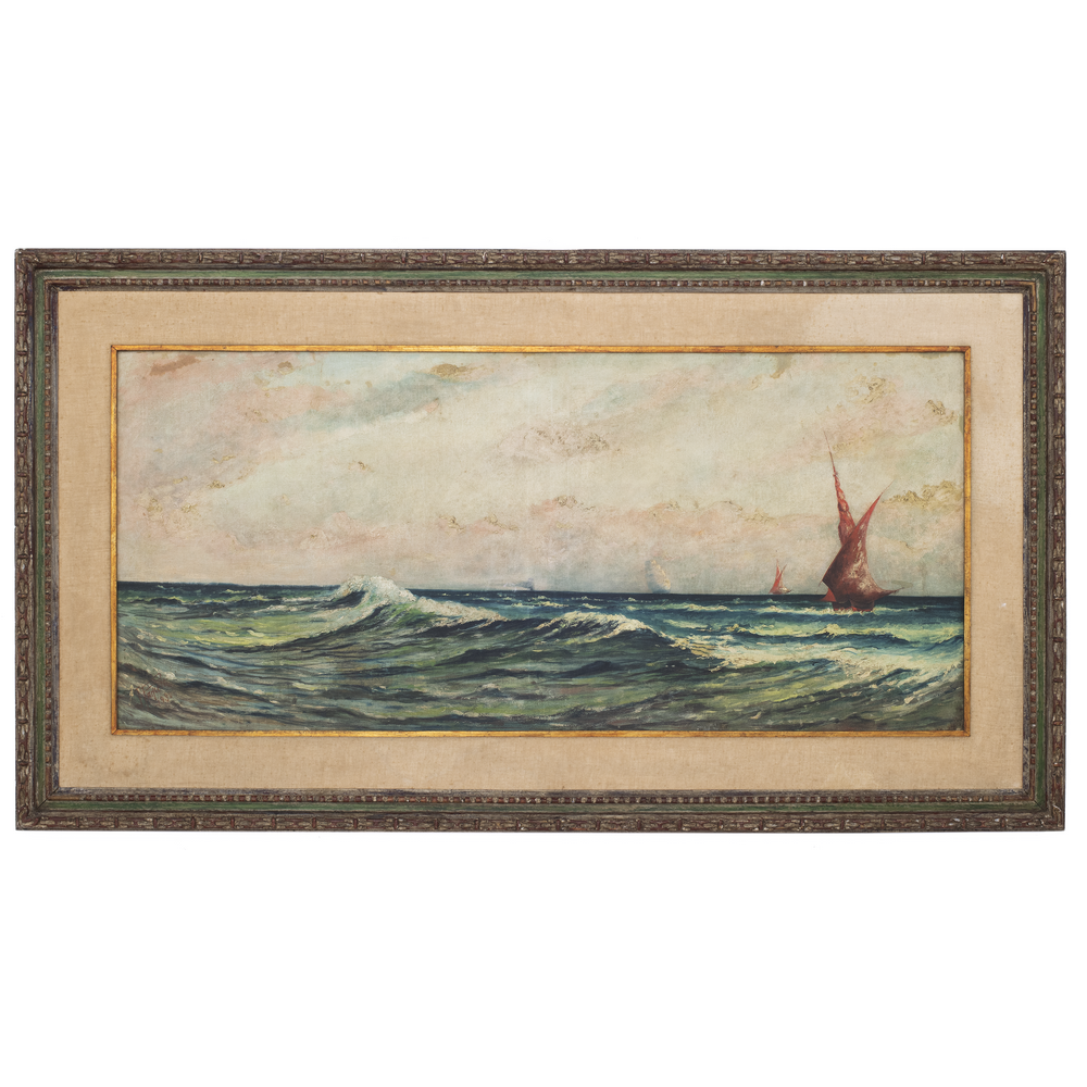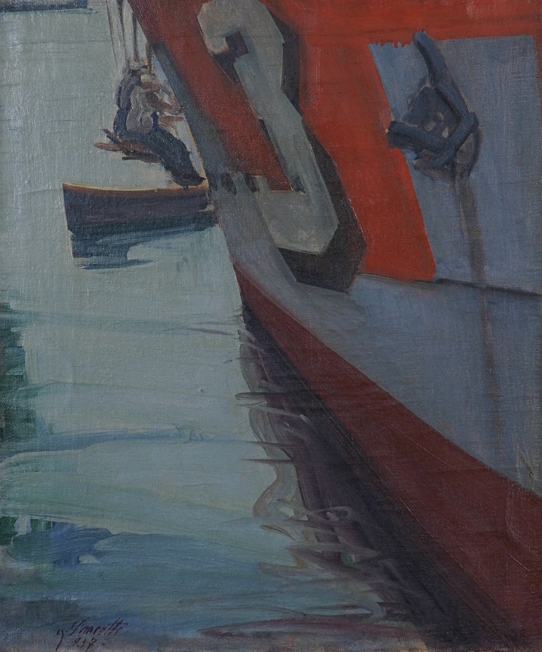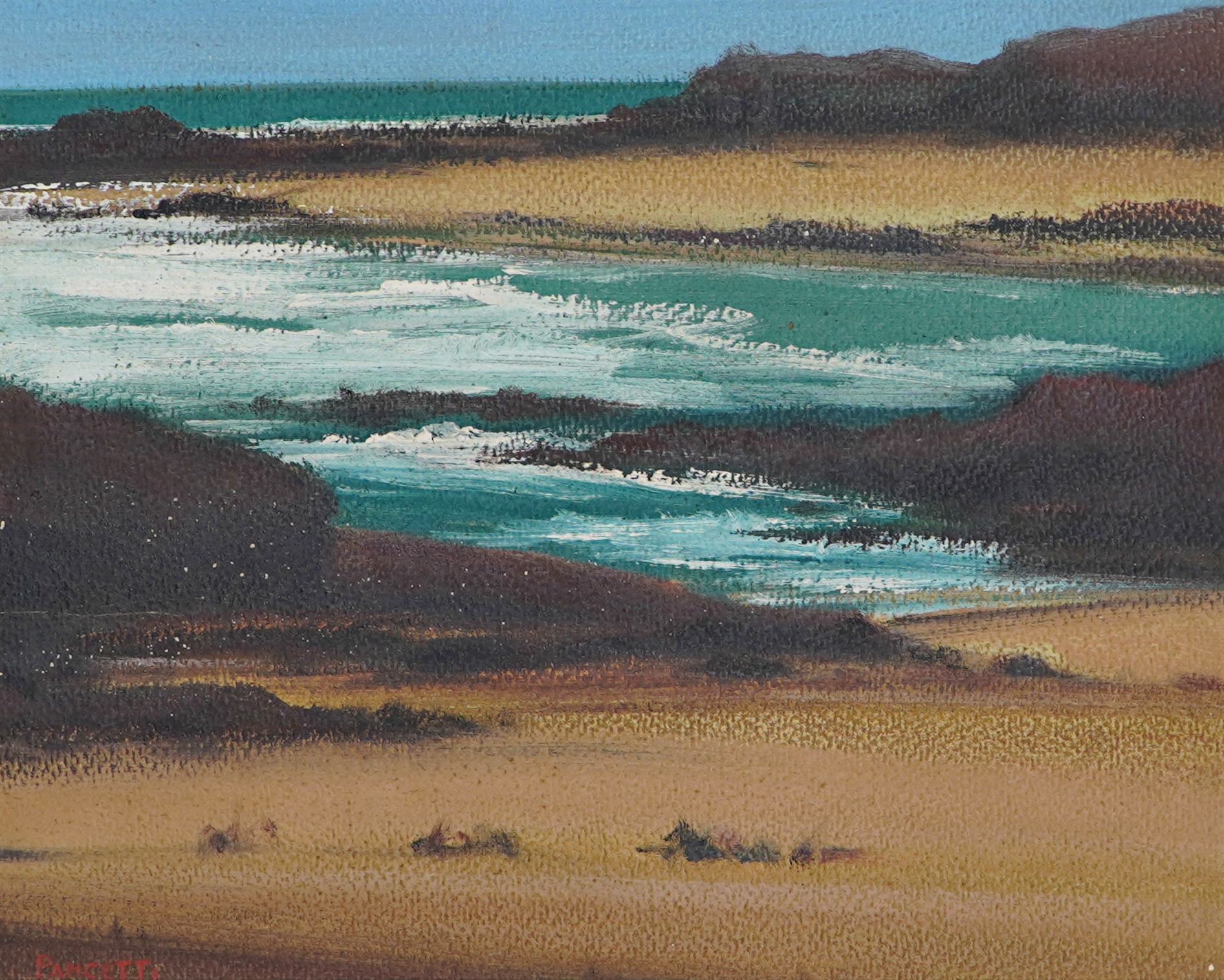 José Pancetti (1902–1958) – Marinha. Óleo sobre tela, dat. de 1945. Pintor brasileiro reconhecido sobretudo por suas marinhas, que evoluíram de uma construção analítica para soluções mais sintéticas e depuradas, aproximando-se da abstração, com forte ênfase na relação entre areia, luz e mar; integrou o Núcleo Bernardelli e consolidou-se como um dos principais nomes da pintura moderna brasileira. Ass. CIE. Dimensões: 32 × 49 cm.