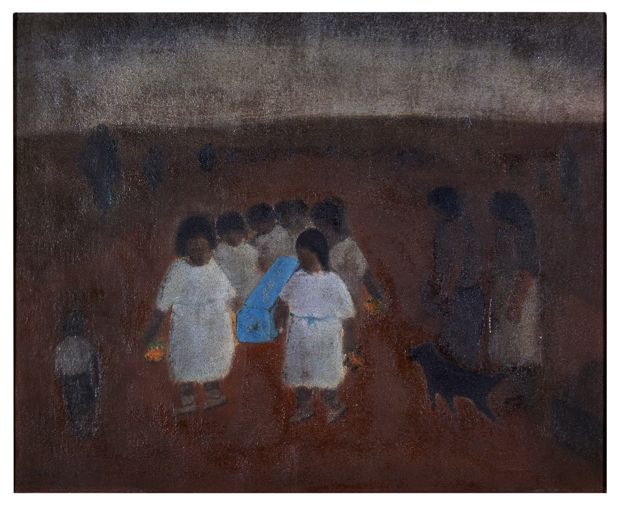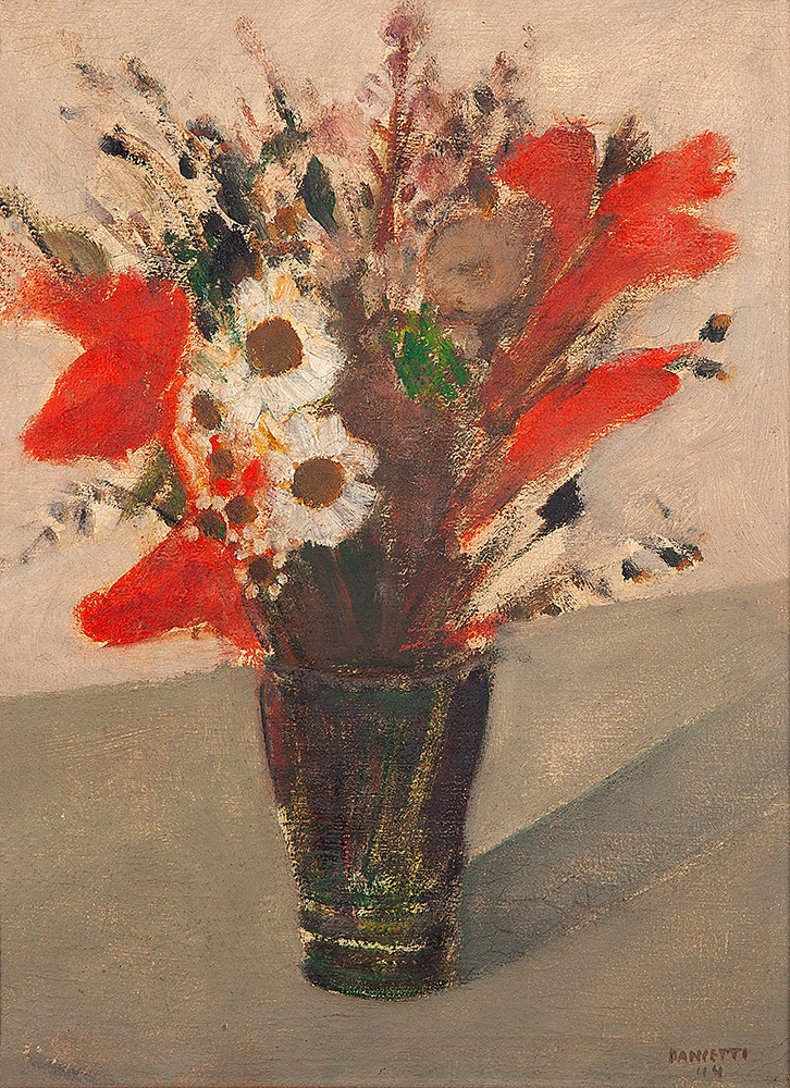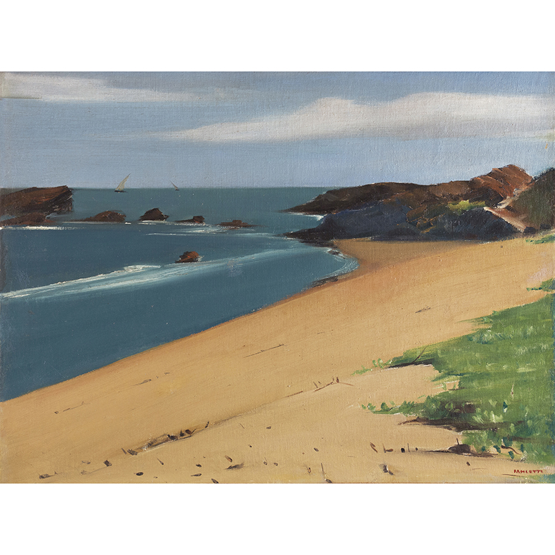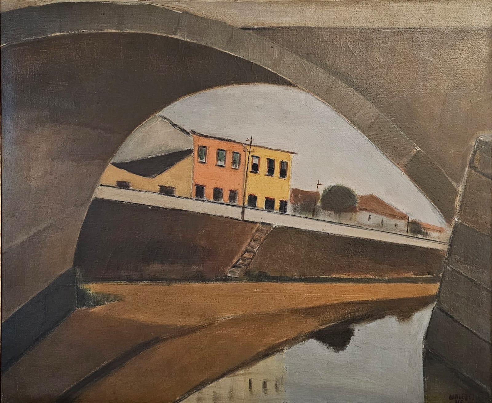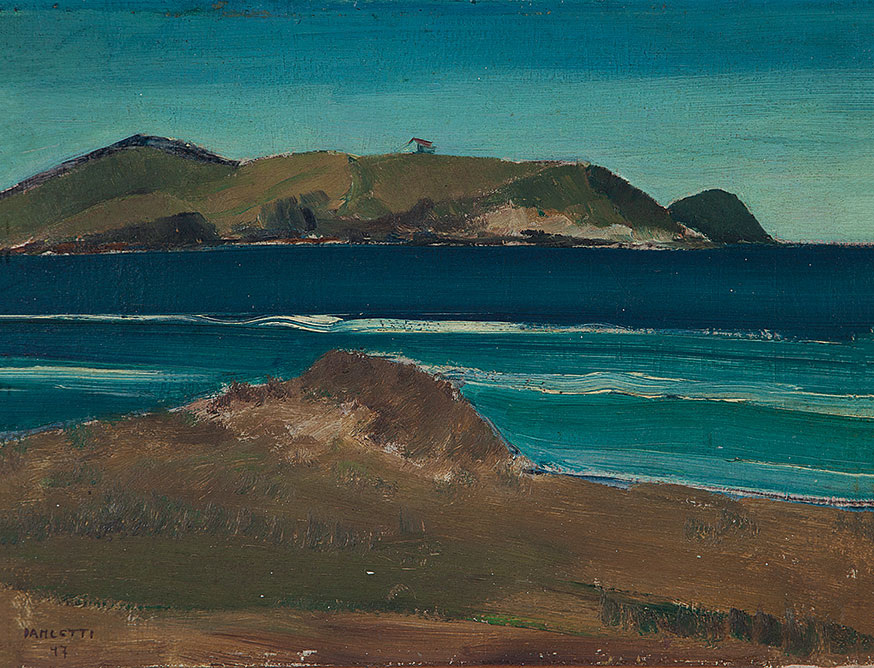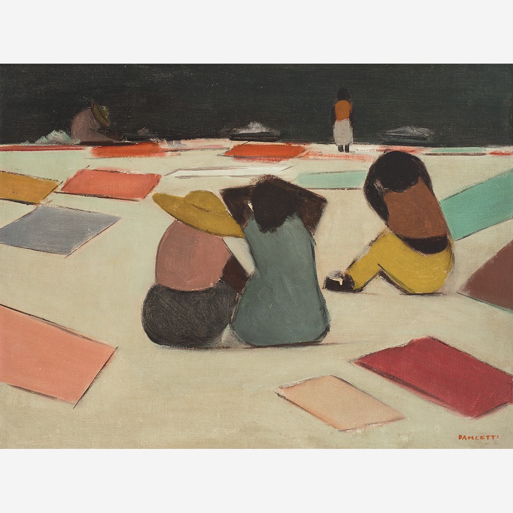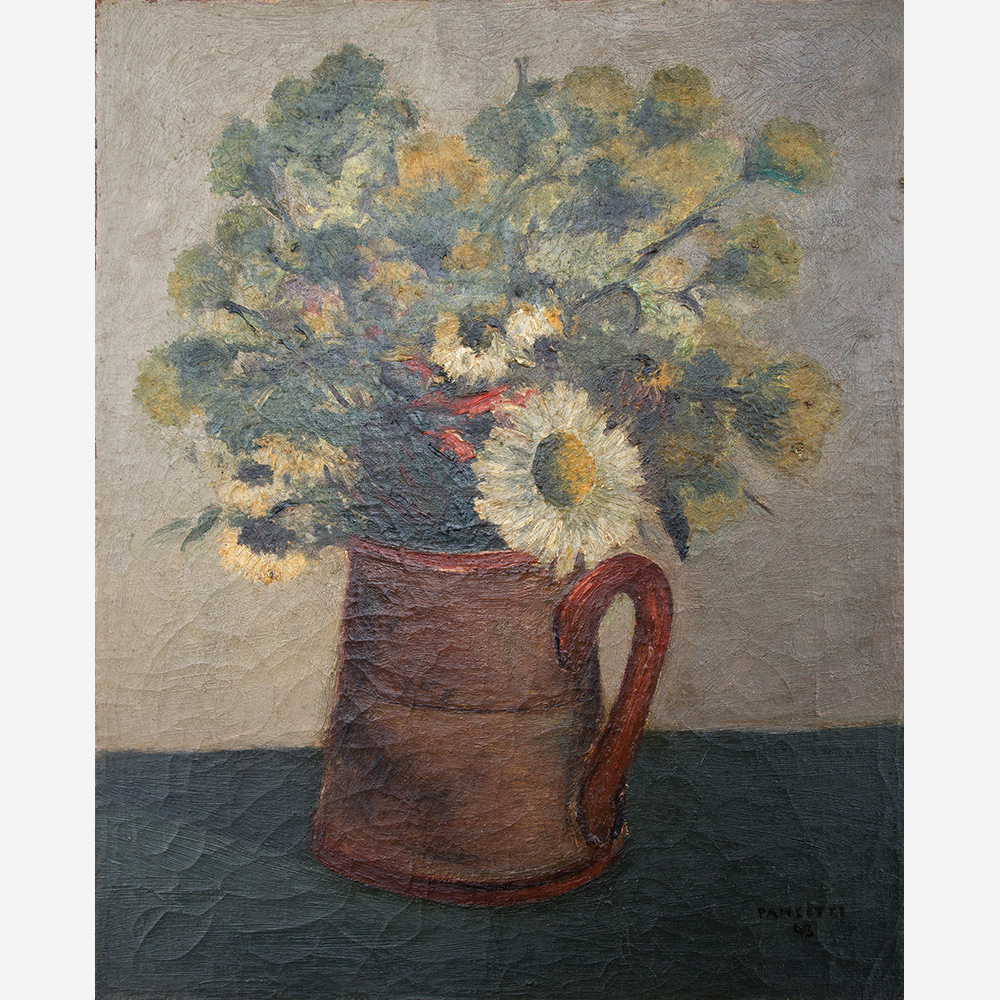 José Pancetti (1902–1958) – Marinha. Óleo sobre tela, dat. de 1945. Pintor brasileiro reconhecido sobretudo por suas marinhas, que evoluíram de uma construção analítica para soluções mais sintéticas e depuradas, aproximando-se da abstração, com forte ênfase na relação entre areia, luz e mar; integrou o Núcleo Bernardelli e consolidou-se como um dos principais nomes da pintura moderna brasileira. Ass. CIE. Dimensões: 32 × 49 cm.