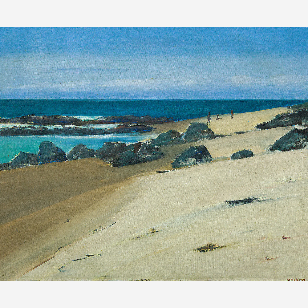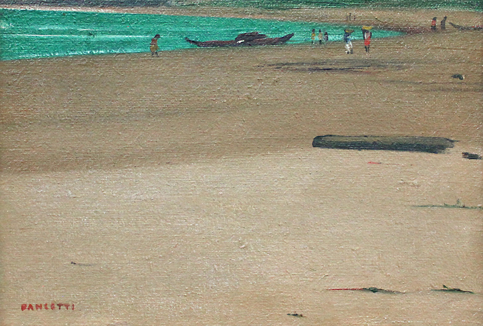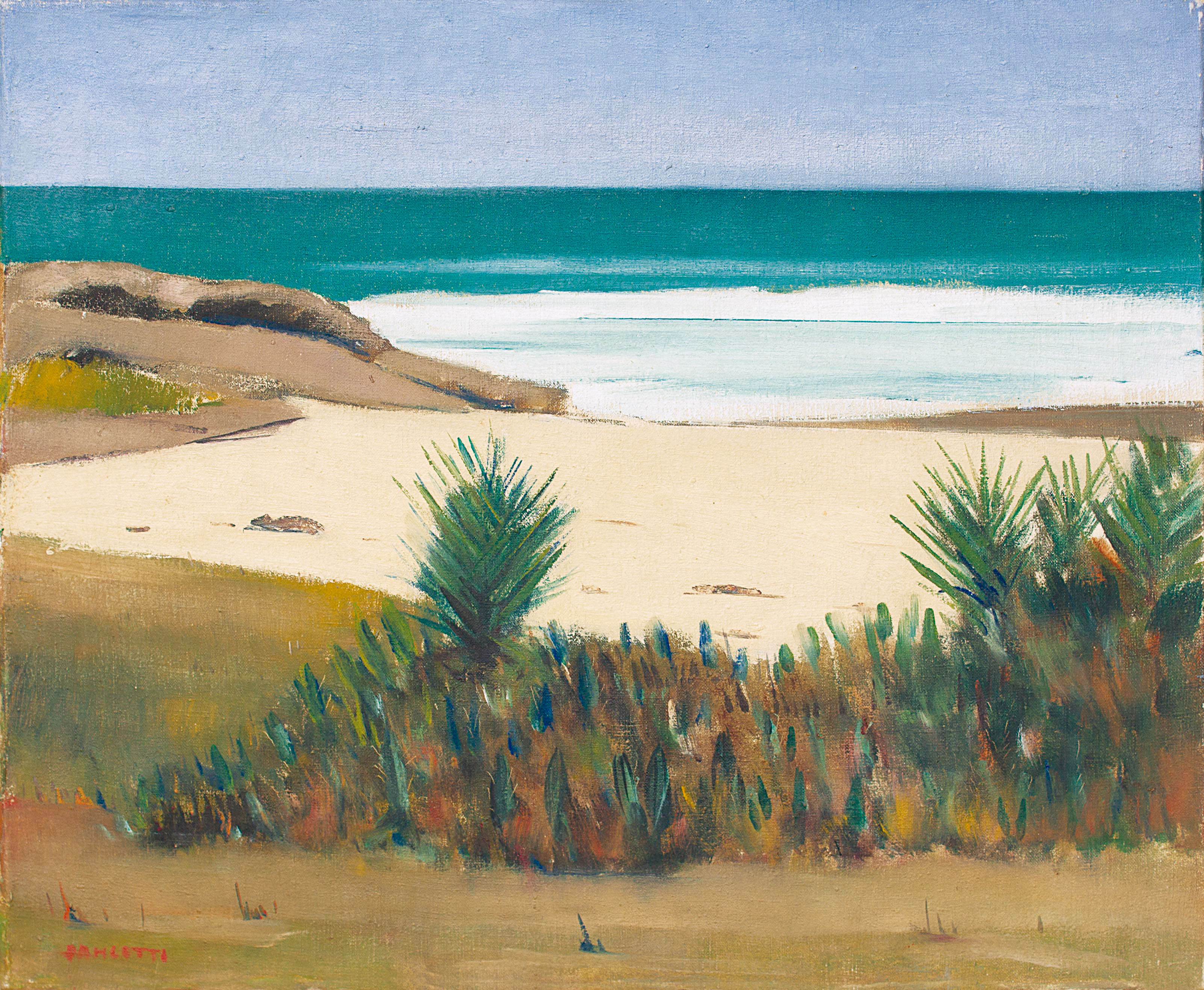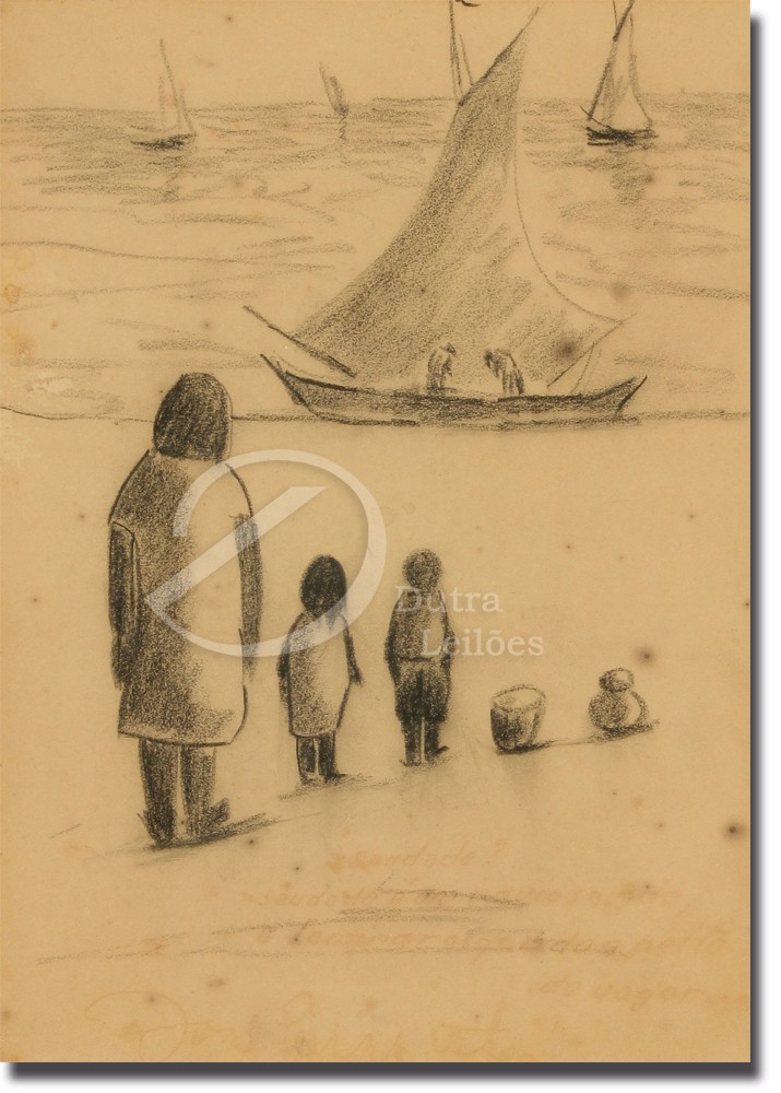 José Pancetti (1902–1958) – Marinha. Óleo sobre tela, dat. de 1945. Pintor brasileiro reconhecido sobretudo por suas marinhas, que evoluíram de uma construção analítica para soluções mais sintéticas e depuradas, aproximando-se da abstração, com forte ênfase na relação entre areia, luz e mar; integrou o Núcleo Bernardelli e consolidou-se como um dos principais nomes da pintura moderna brasileira. Ass. CIE. Dimensões: 32 × 49 cm.