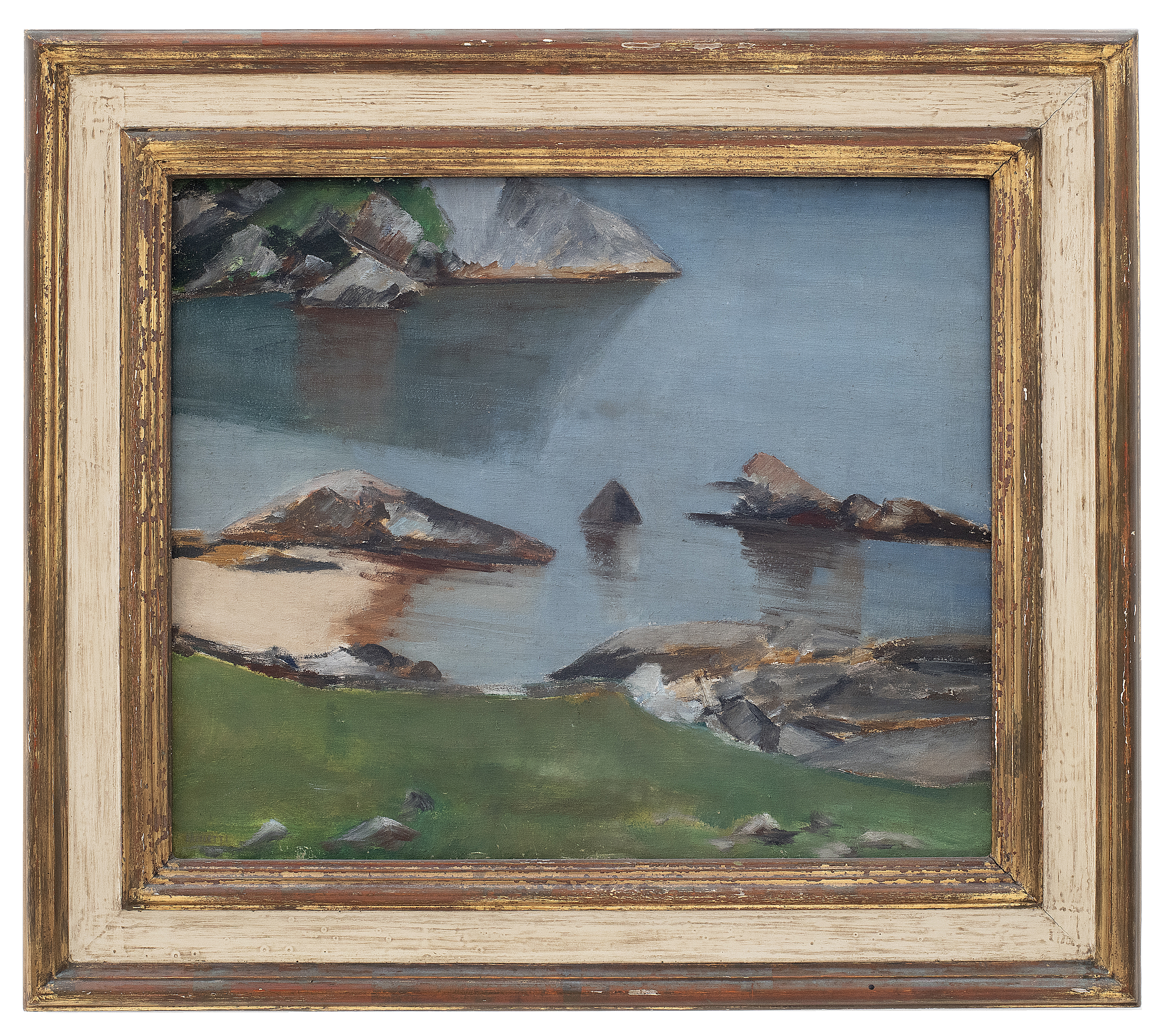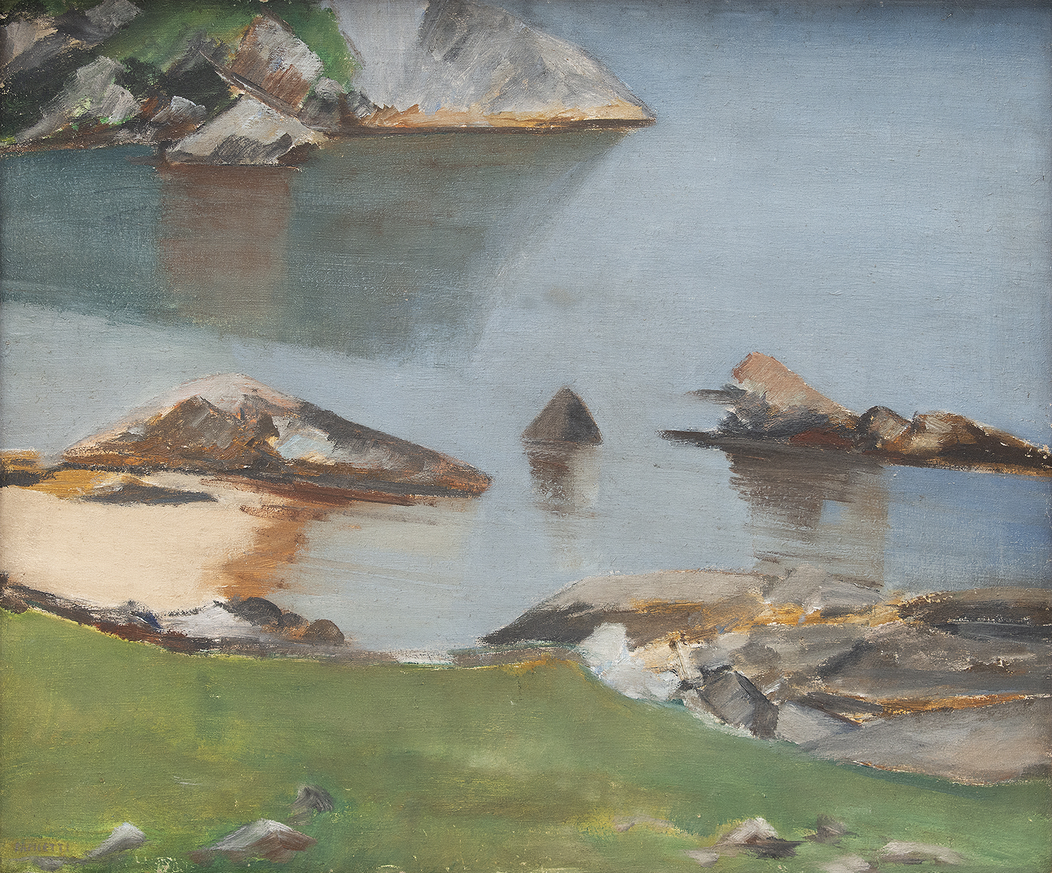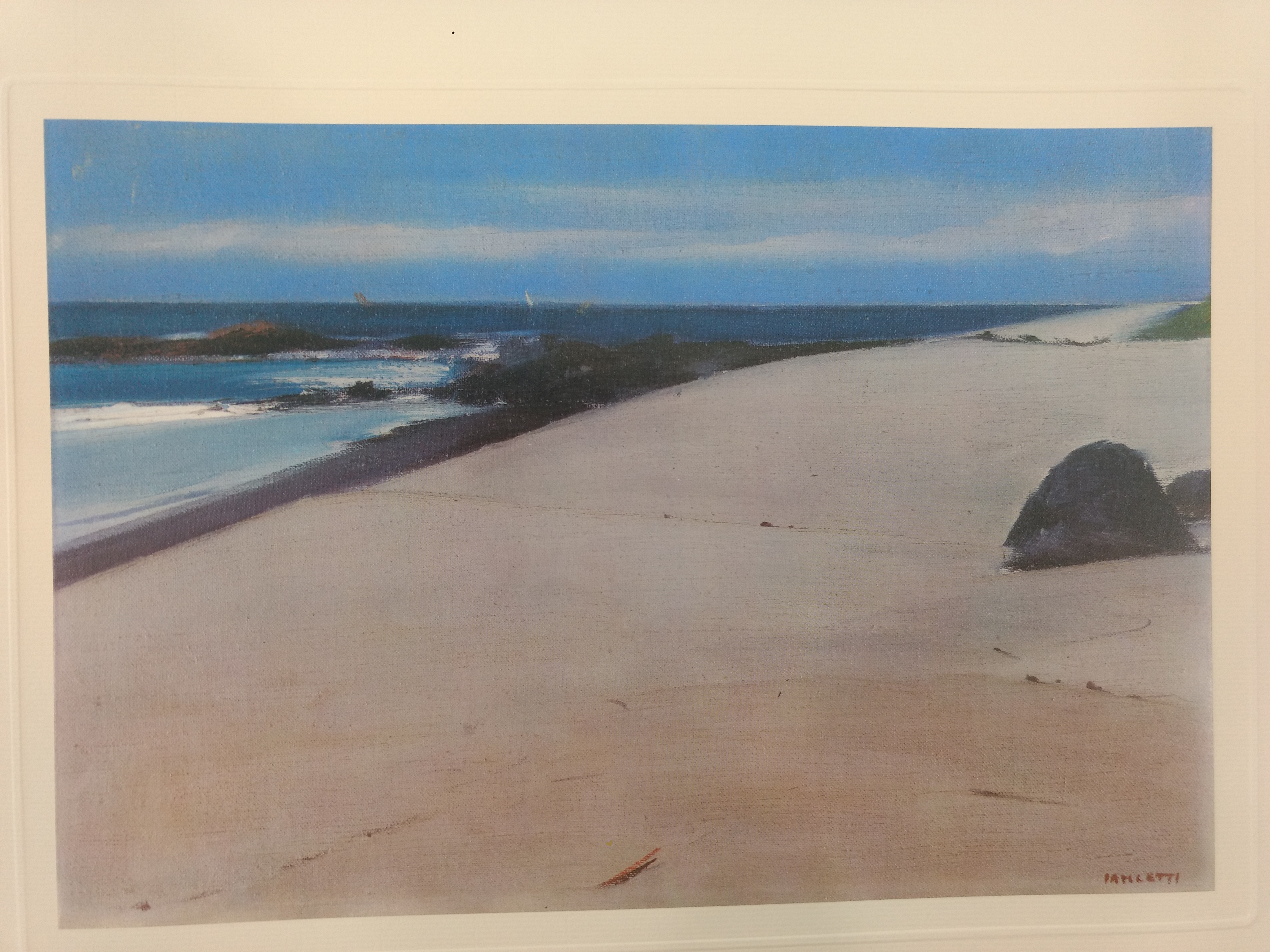José Pancetti (1902–1958) – Marinha. Óleo sobre tela, dat. de 1945. Pintor brasileiro reconhecido sobretudo por suas marinhas, que evoluíram de uma construção analítica para soluções mais sintéticas e depuradas, aproximando-se da abstração, com forte ênfase na relação entre areia, luz e mar; integrou o Núcleo Bernardelli e consolidou-se como um dos principais nomes da pintura moderna brasileira. Ass. CIE. Dimensões: 32 × 49 cm.