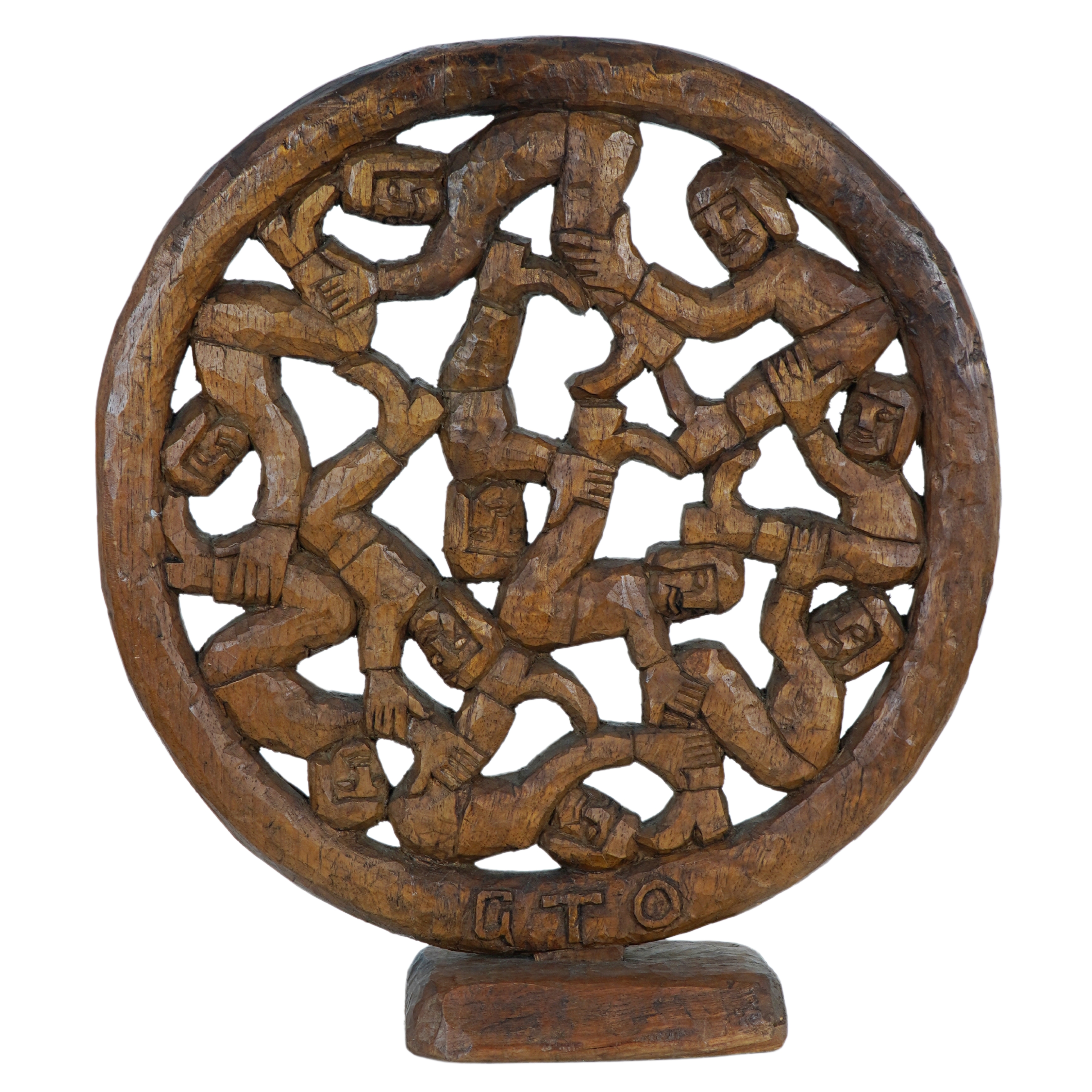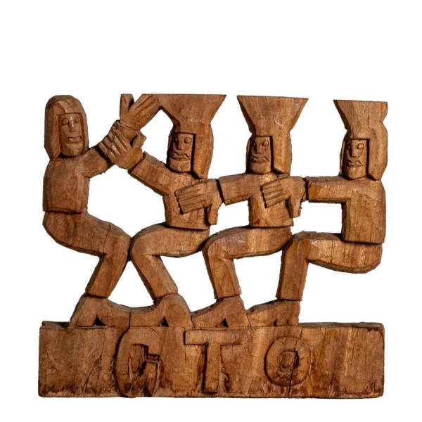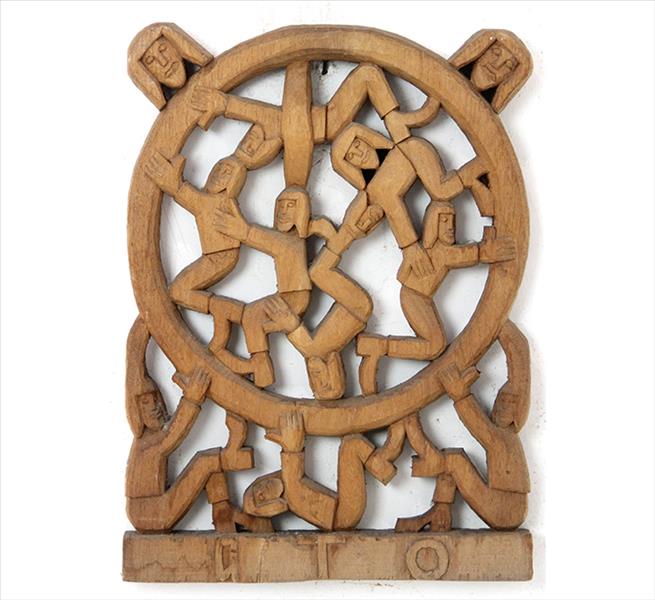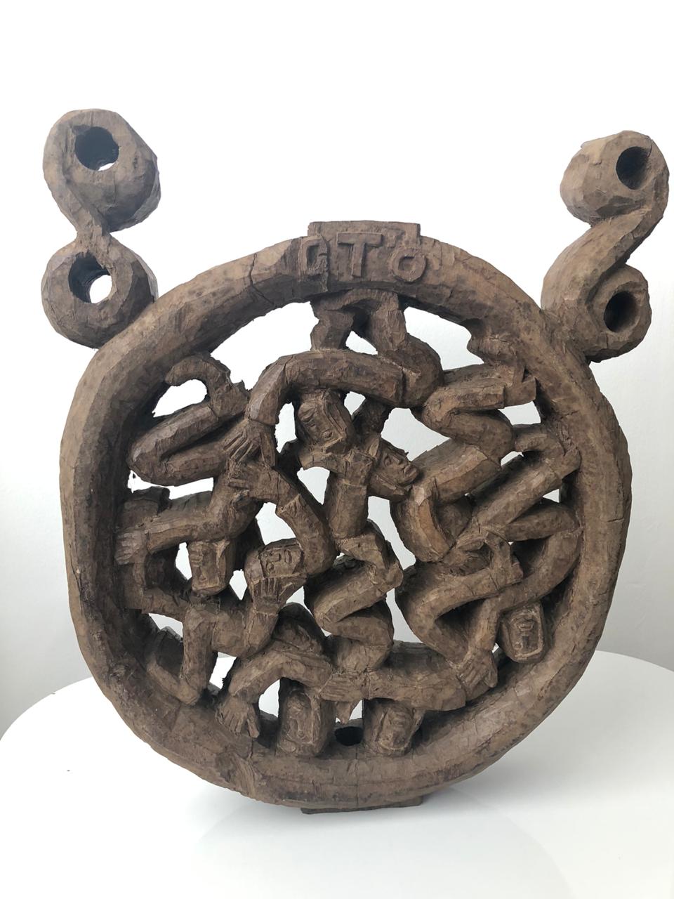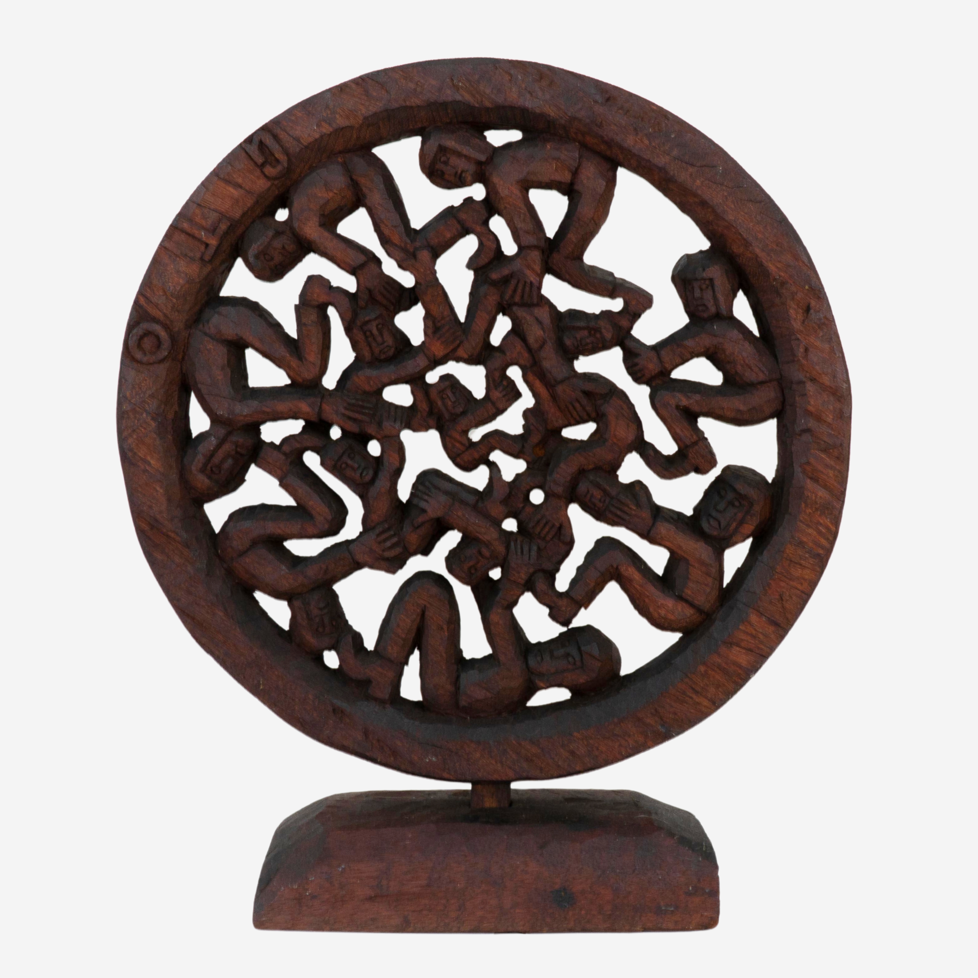 GTO - Roda Viva - Escultura em Madeira - Assinada - 25 x 18 x 7 cm.
