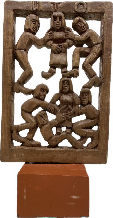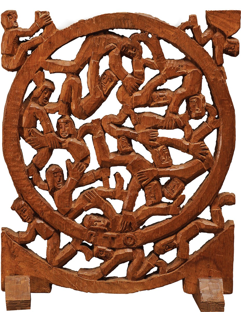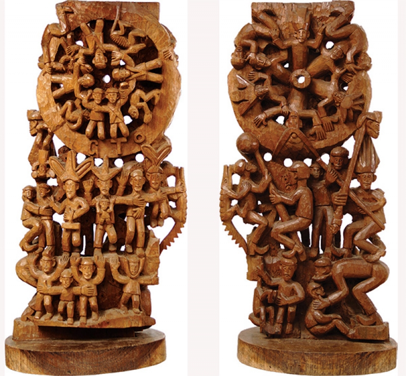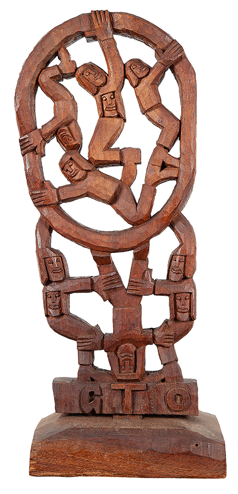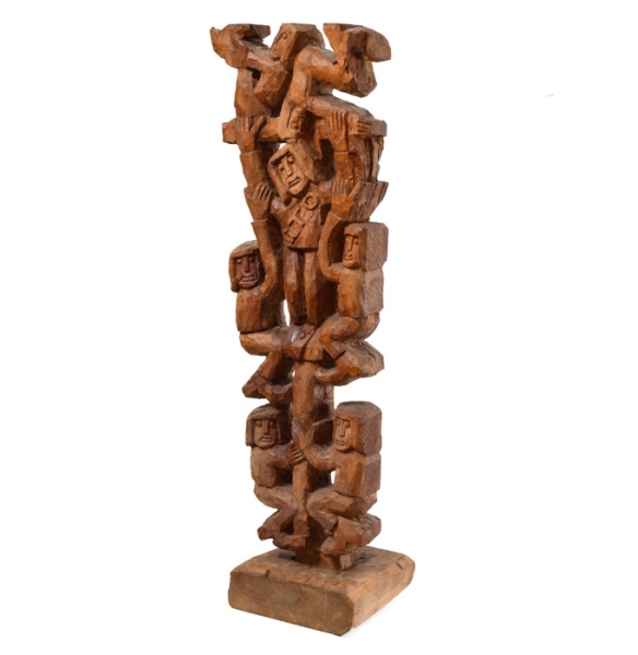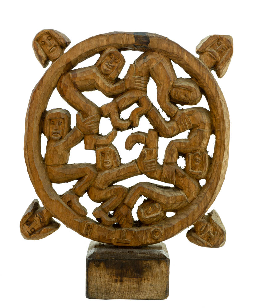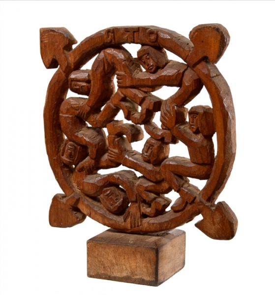 GTO - Roda Viva - Escultura em Madeira - Assinada - 25 x 18 x 7 cm.