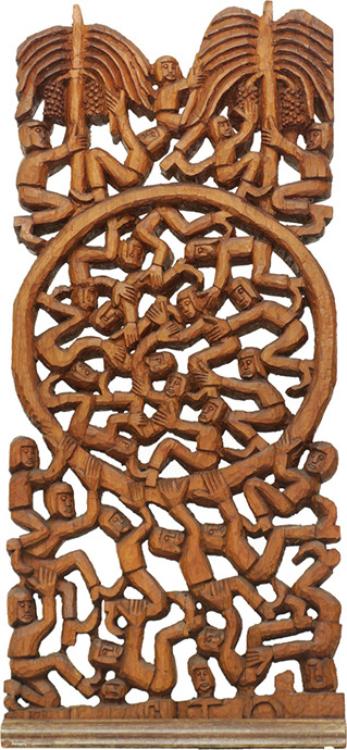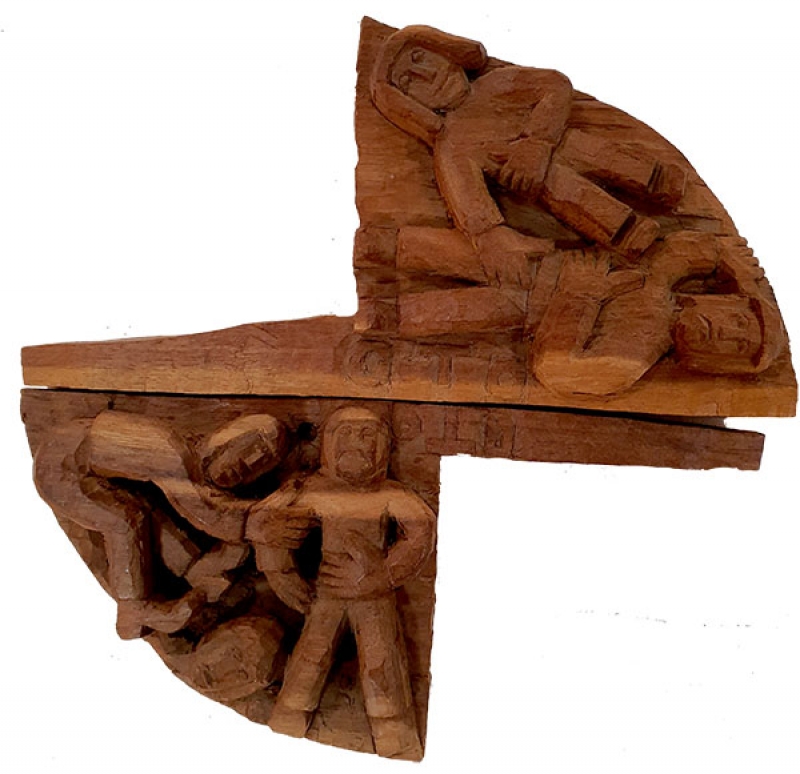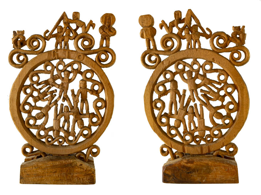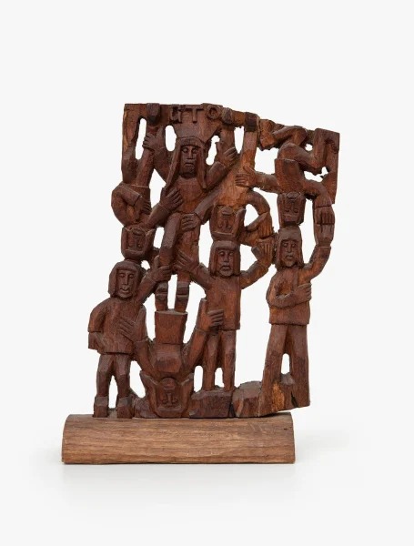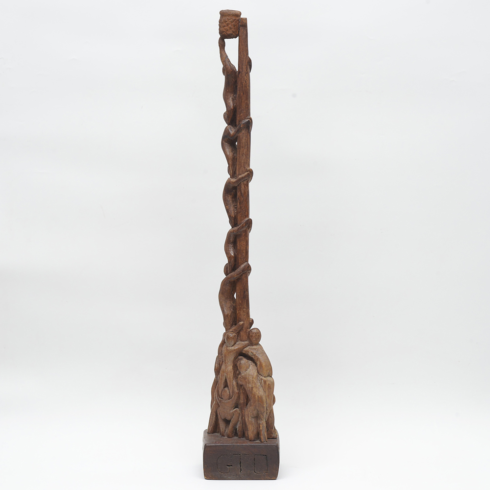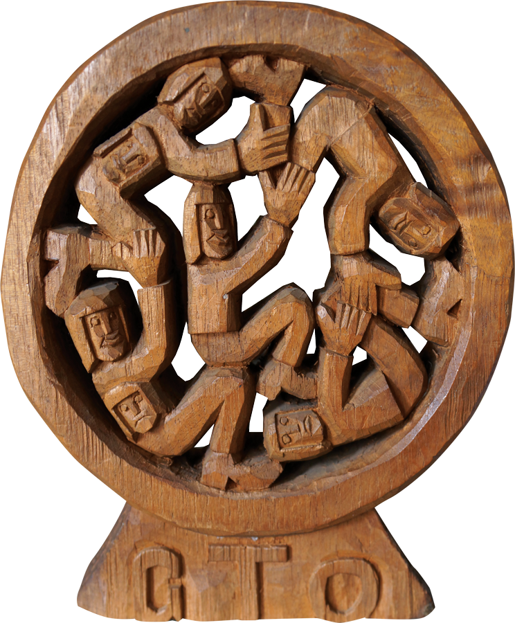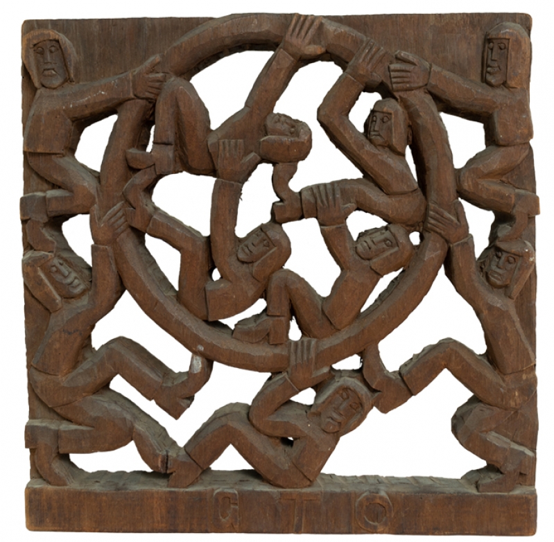 GTO - Roda Viva - Escultura em Madeira - Assinada - 25 x 18 x 7 cm.