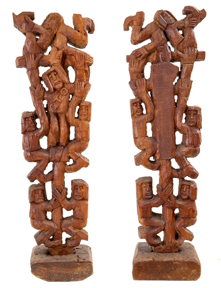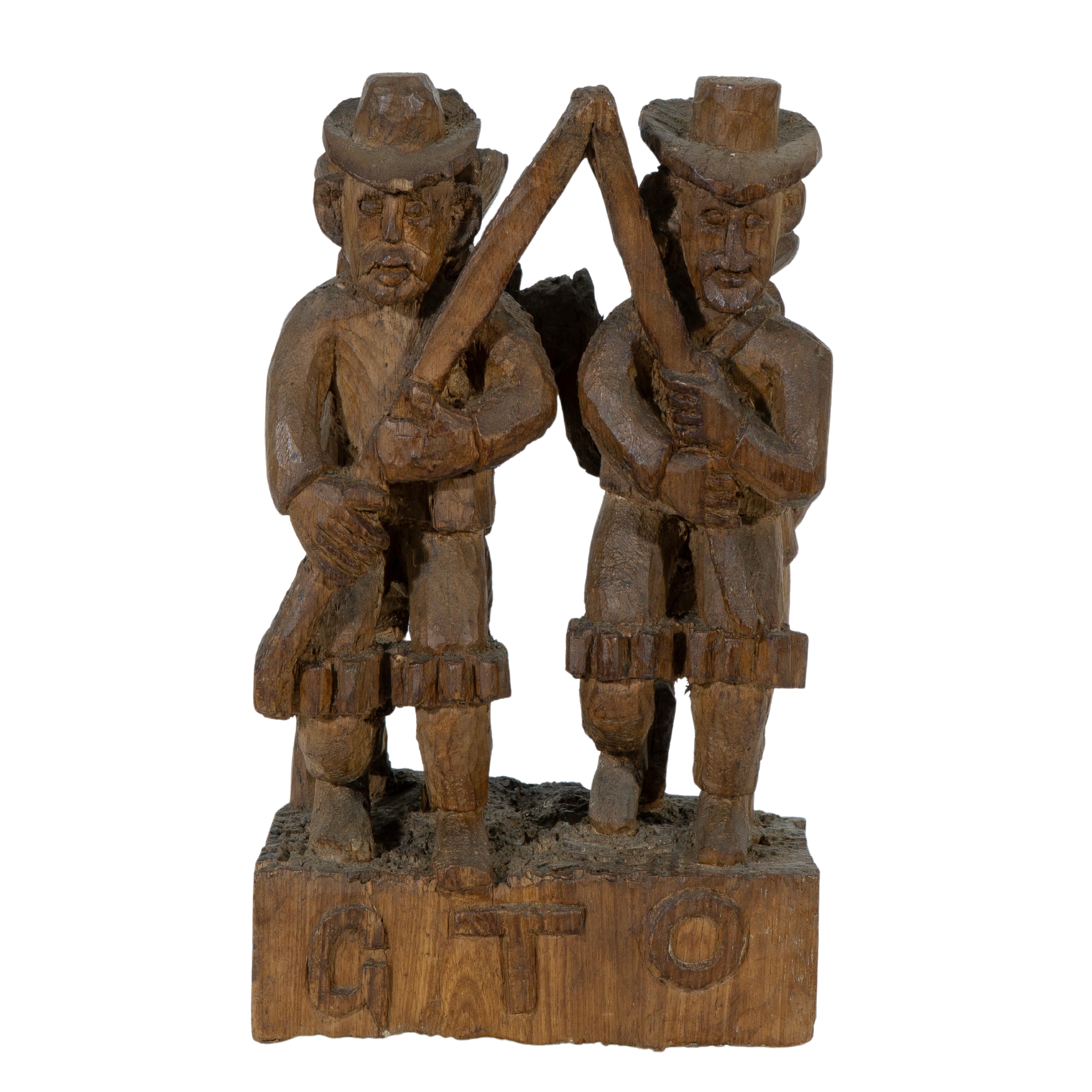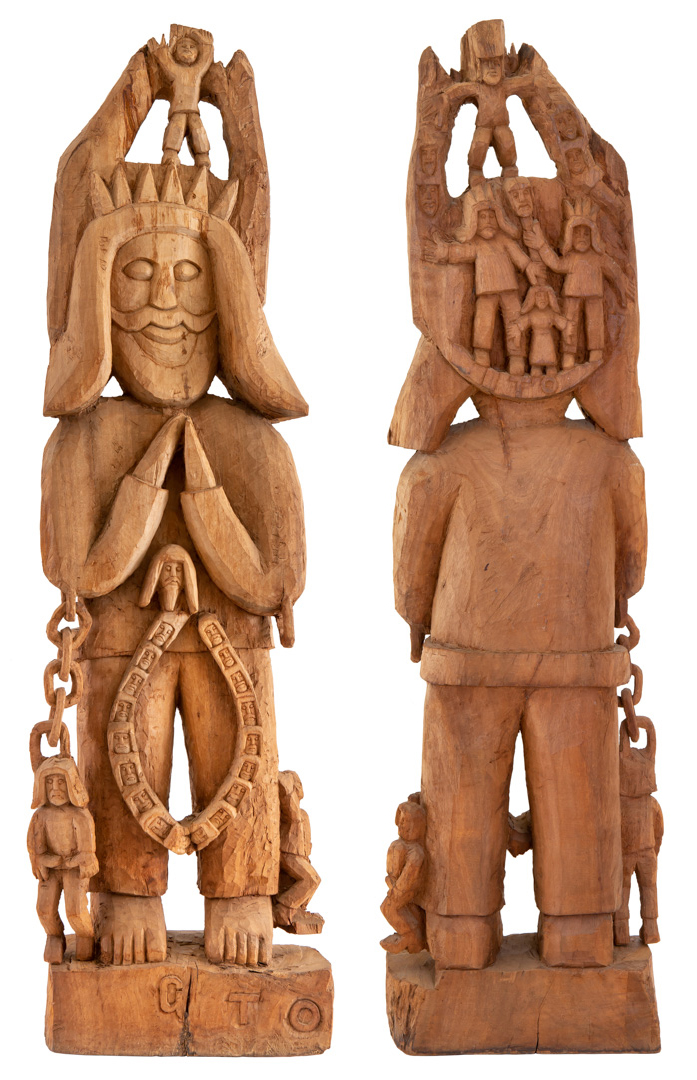 GTO, como prefere ser conhecido o escultor Geraldo Teles de Oliveira, é originário de uma família pobre. Trabalhando como guarda noturno, o artista tem visões, nas quais as esculturas que deveria realizar lhes são mostradas. Como nota o crítico Roberto Pontual, sem nunca ter feito qualquer trabalho de escultura, o artista começa, em torno de 1965, a desbastar grandes peças de madeira.