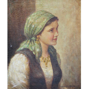 Guerino Grosso - Camponesa - Óleo sobre tela - 50 alt x 39 larg (cm) - acid - Obra necessita restauro